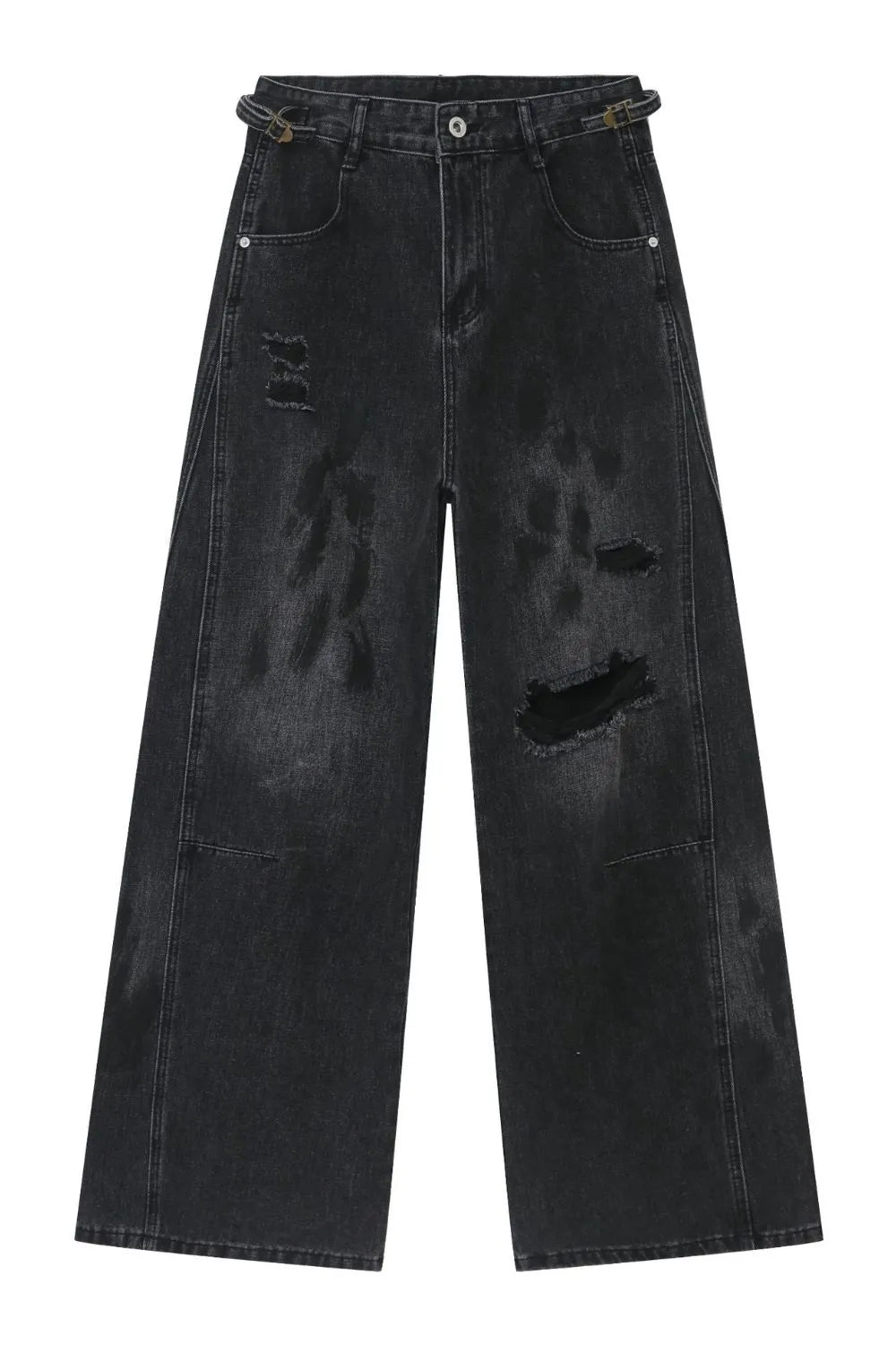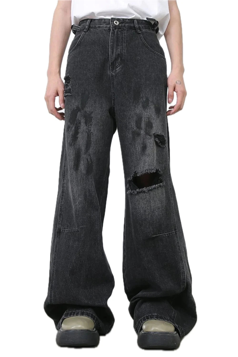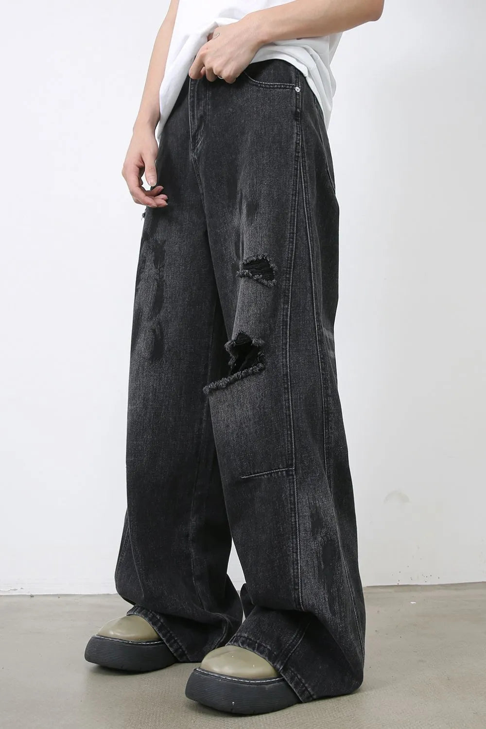 Distressed Baggy Loose Fit Denim Jeans with Raw Hem for Men Durable Everyday Casual Streetwear Fashion and Comfortable