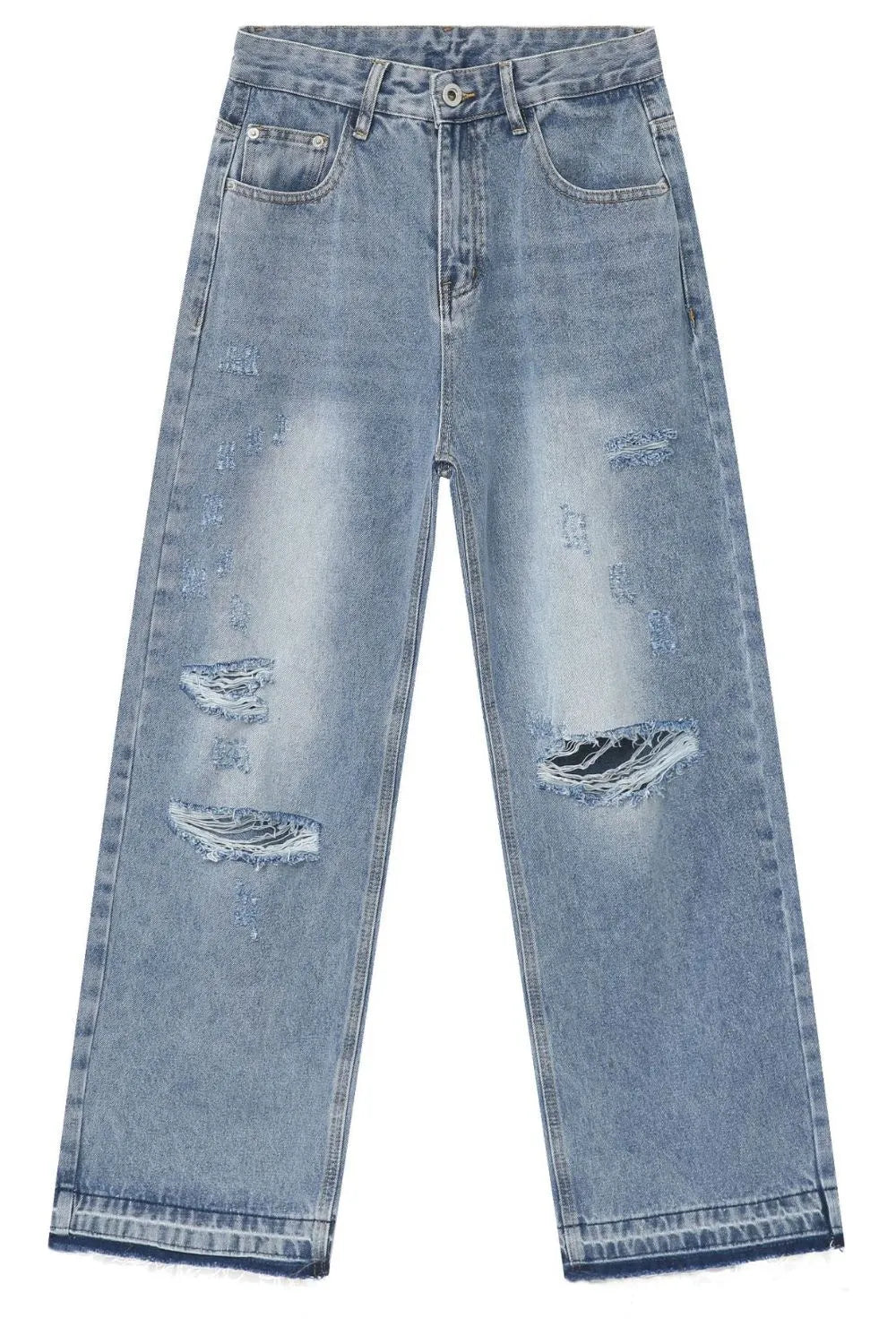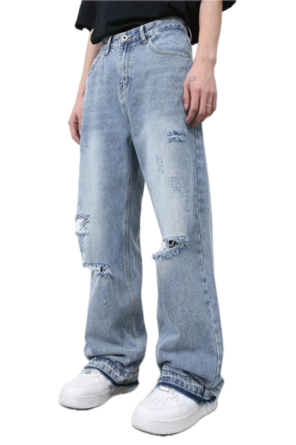 Mens Distressed Baggy Jeans with Raw Hem Loose Fit Denim Pants for Casual Streetwear Everyday Wear Durable Comfort Fit