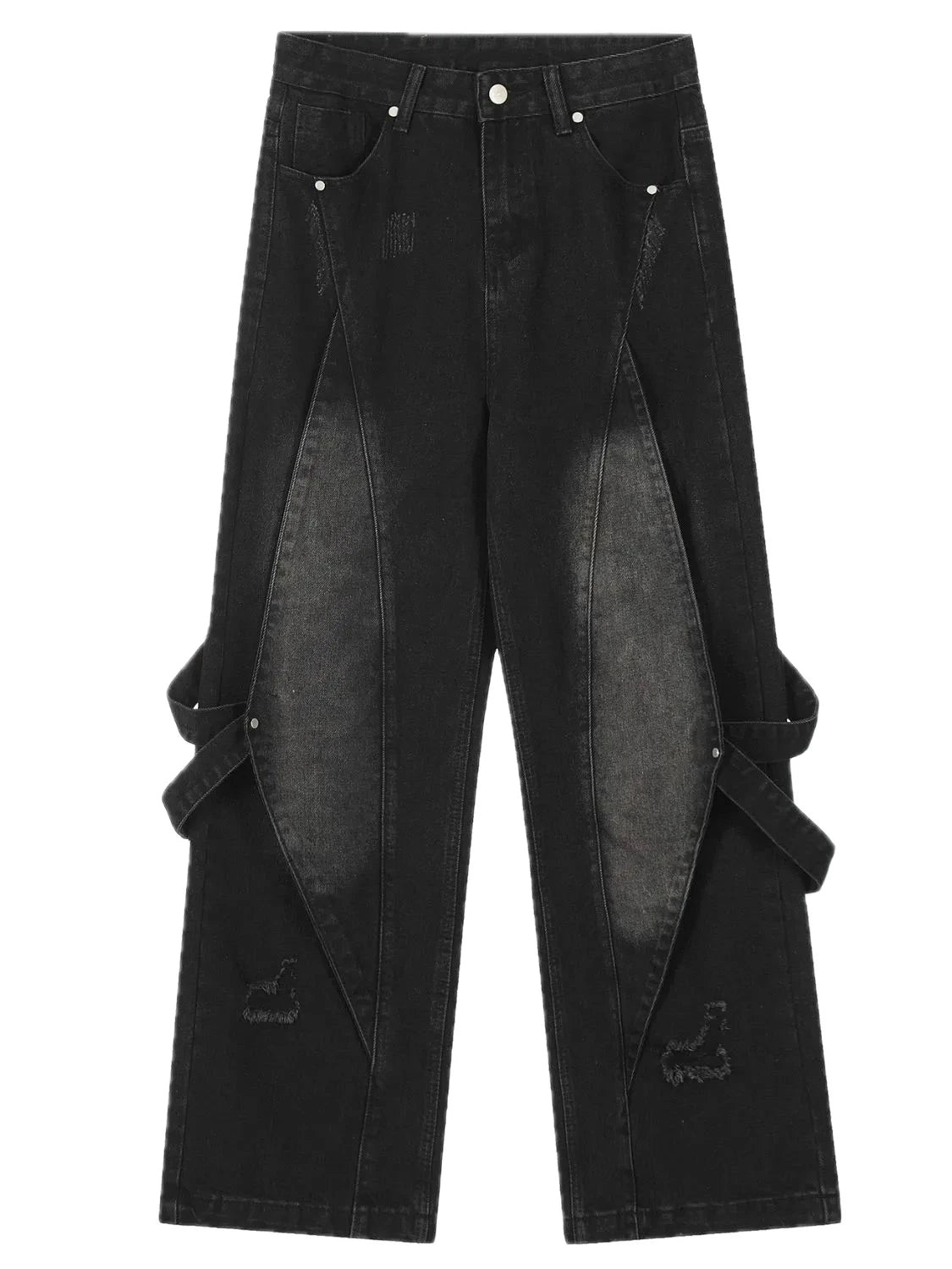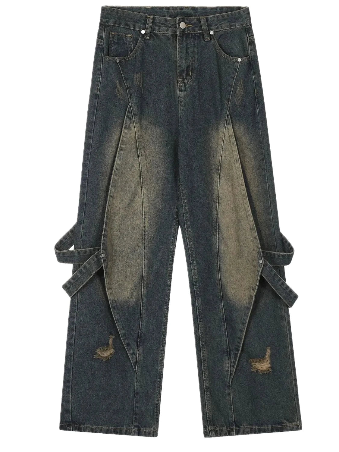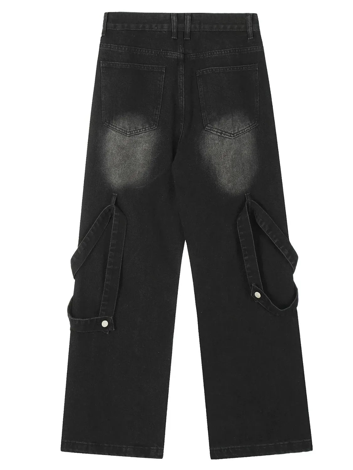 Mens Distressed Cargo Wide Leg Jeans Durable Casual Relaxed Fit Work Pants For Everyday Wear Trendy Streetwear