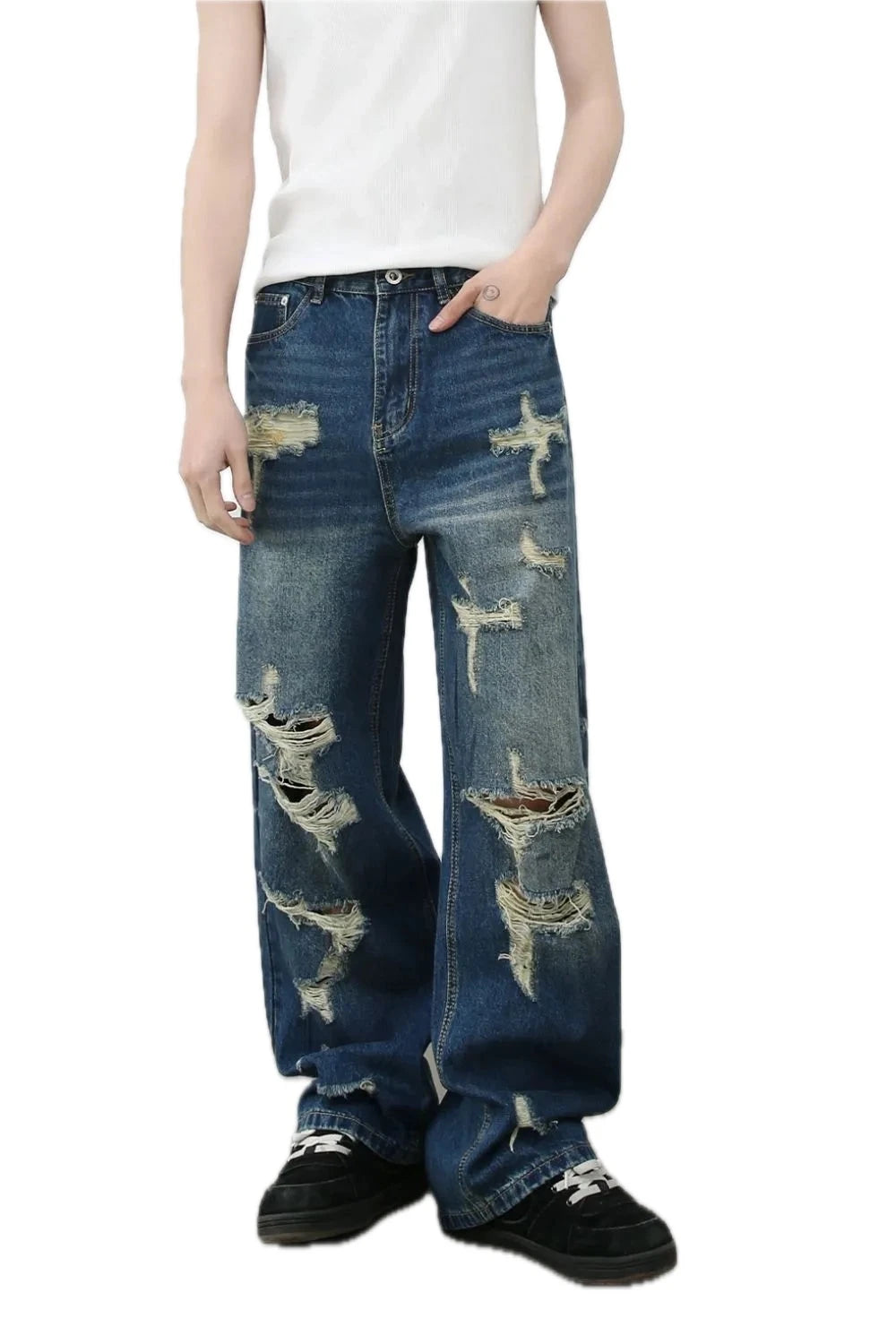 Mens Distressed Jeans with Pockets Durable Classic Fit Versatile Everyday Casual Denim Pants 5 Pocket Style Comfortable