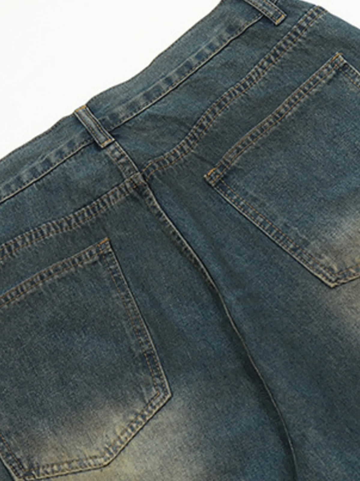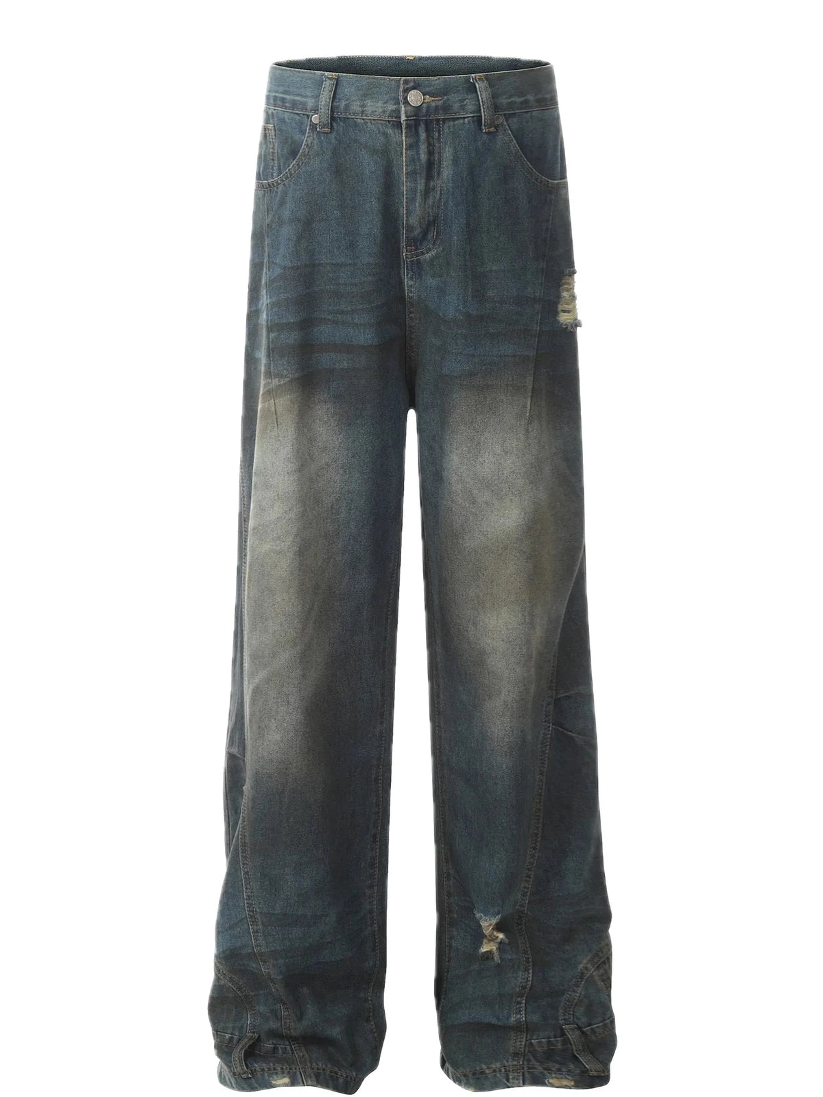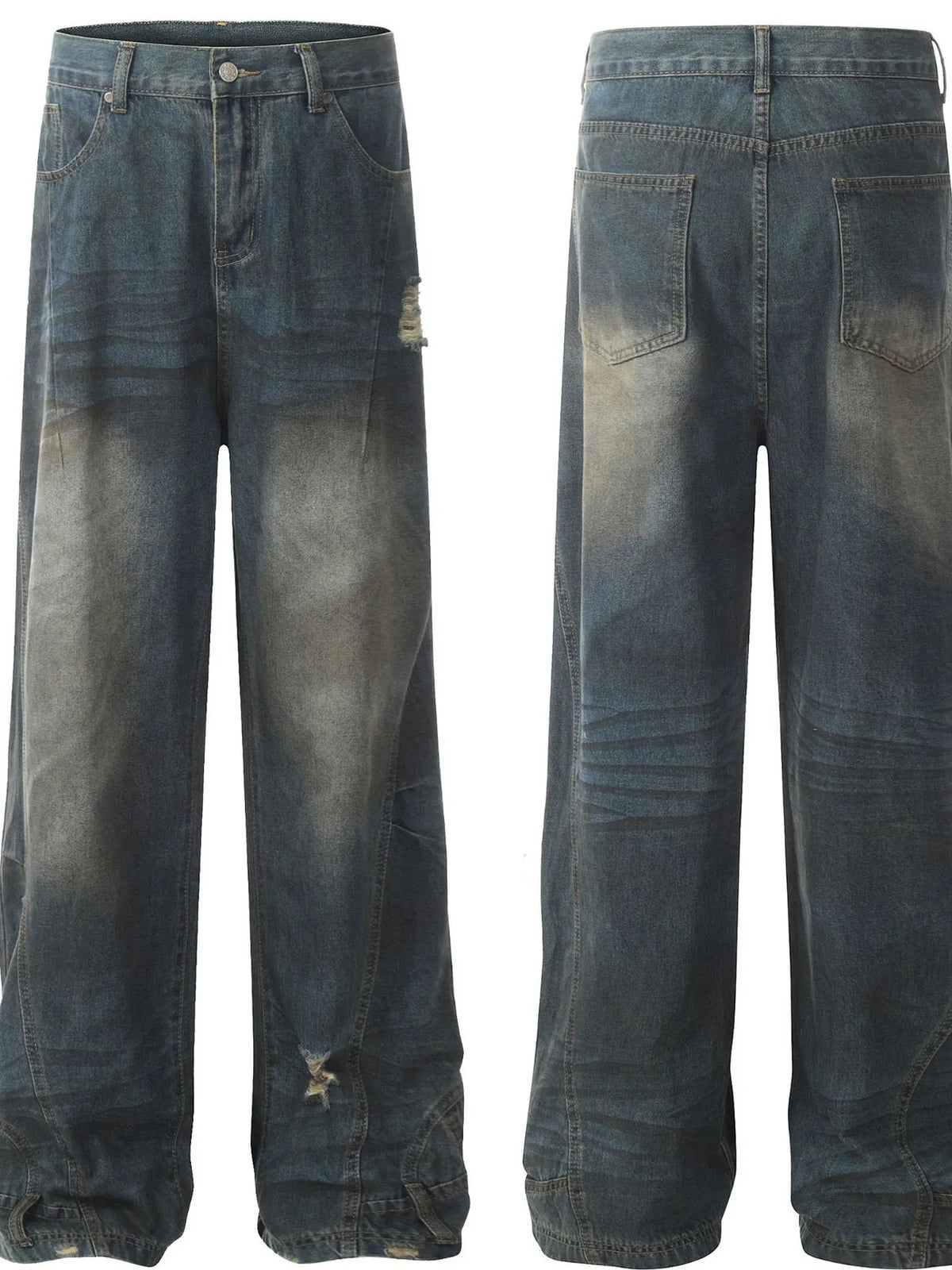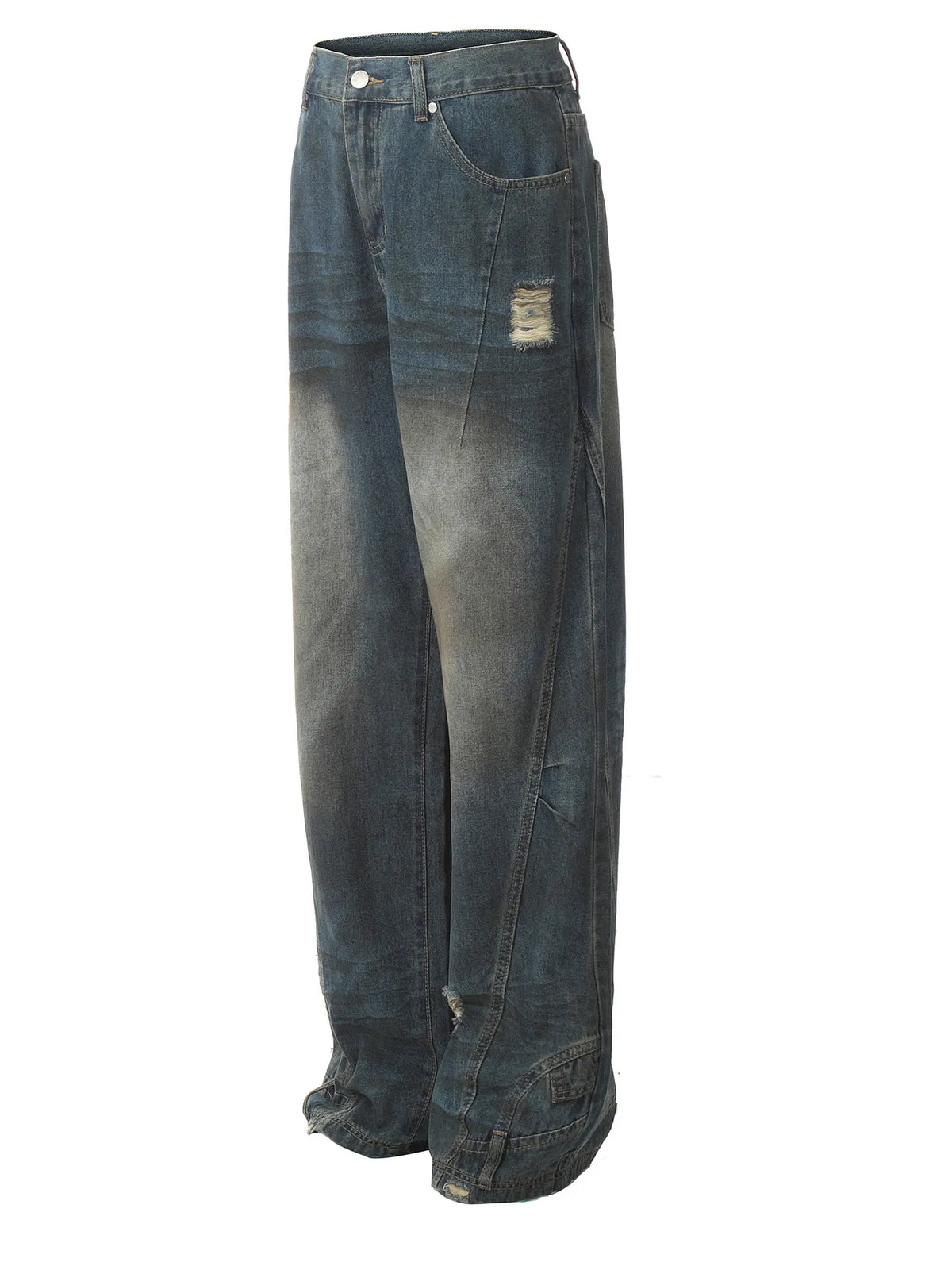 Mens Distressed Wide Leg Jeans Baggy Fit Casual Denim Trousers Streetwear Style With Pockets Durable Modern Look