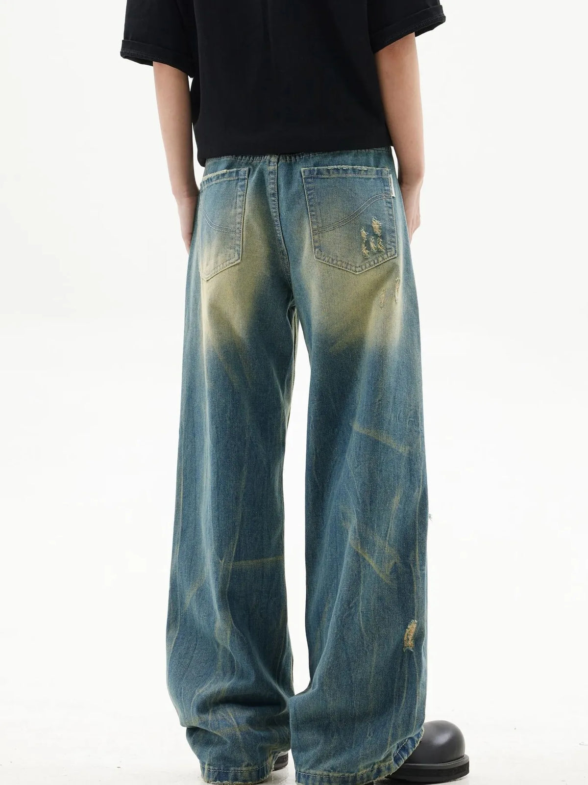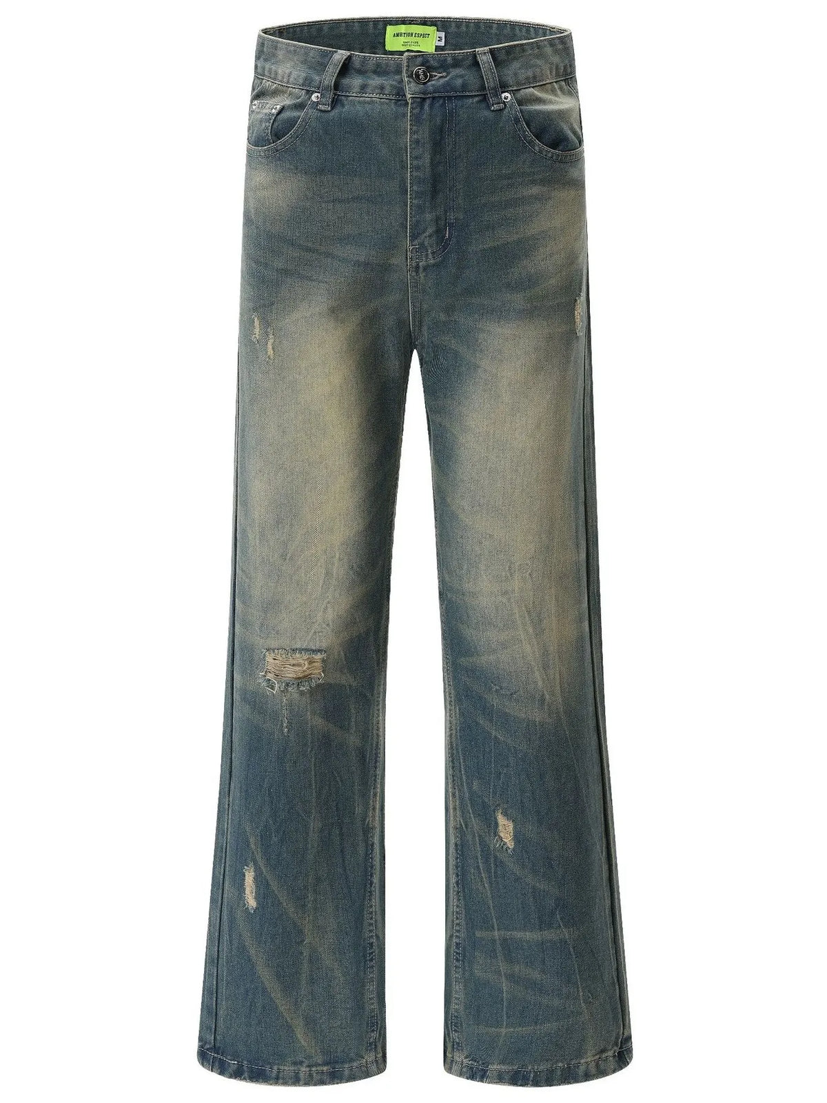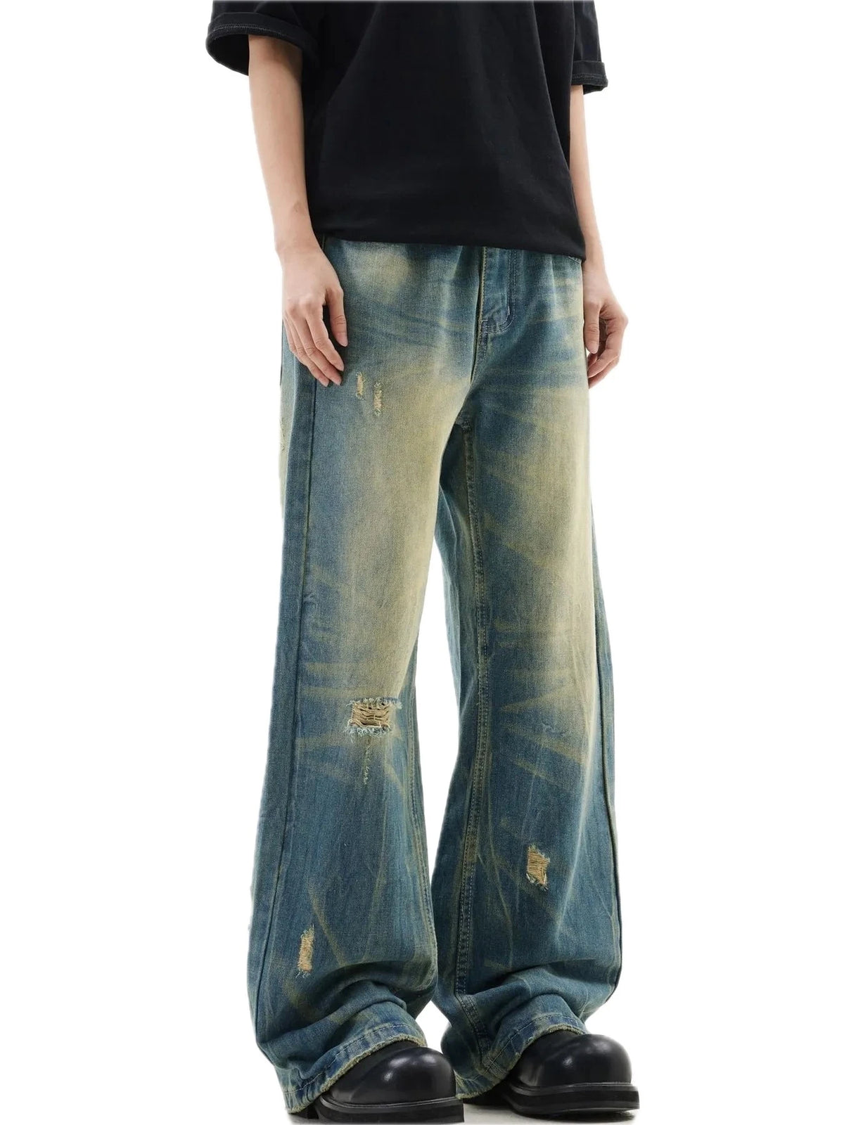 Mens Distressed Wide Leg Jeans Washed Casual Streetwear Durable Versatile Everyday Wear Wardrobe Essential Daily