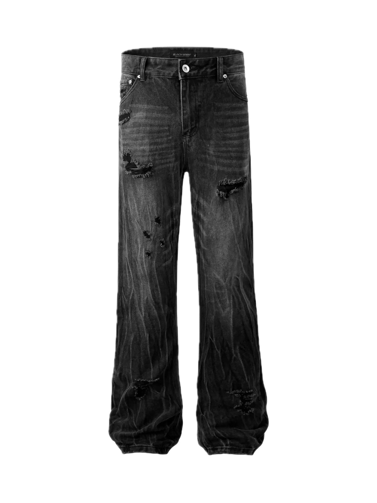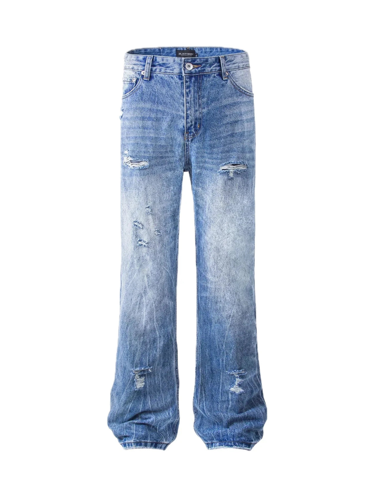 Mens Wide Leg Distressed Denim Jeans with Slightly Stretchy Fabric Relaxed Fit Durable Casual Everyday Wear Fashion