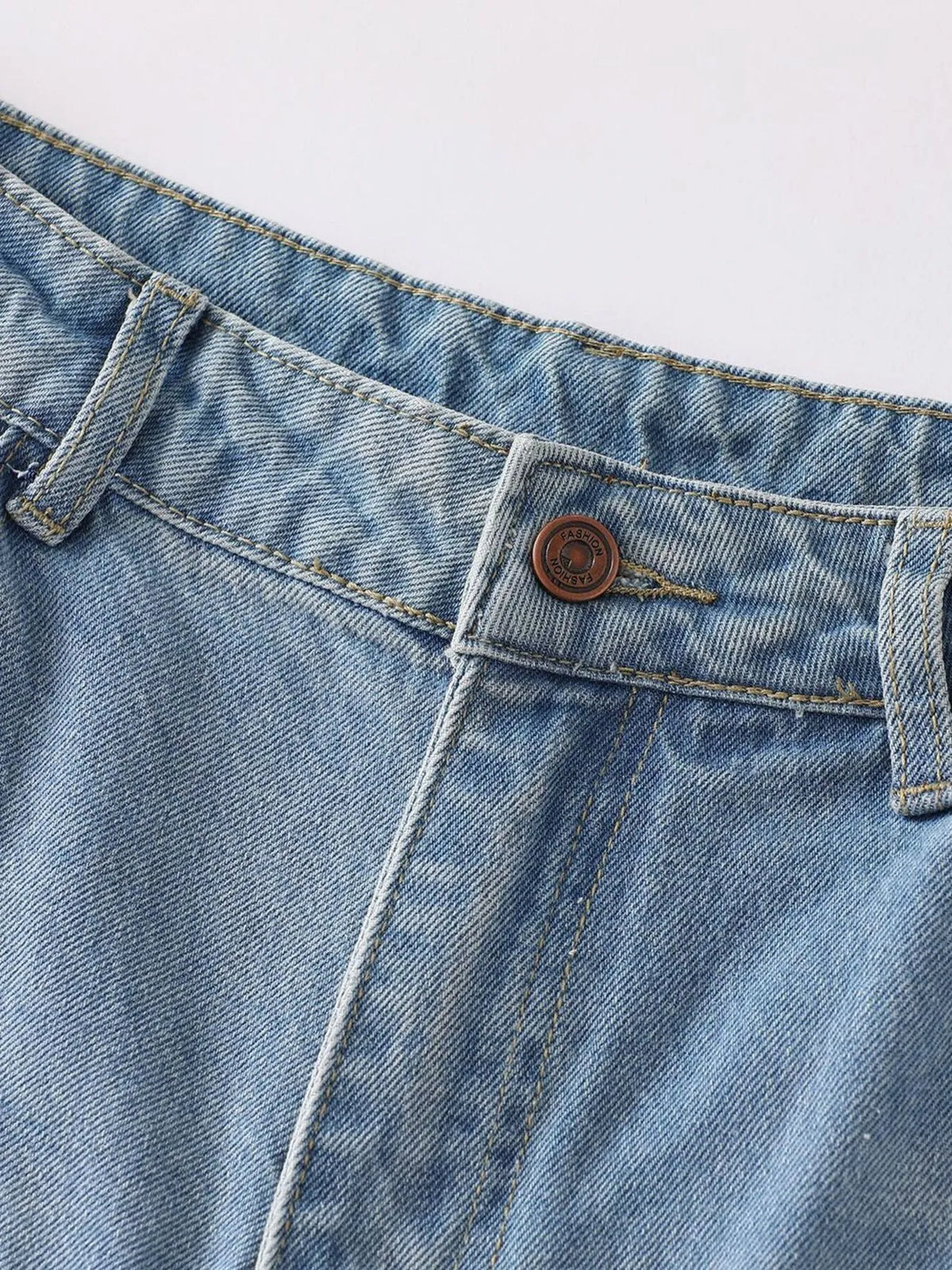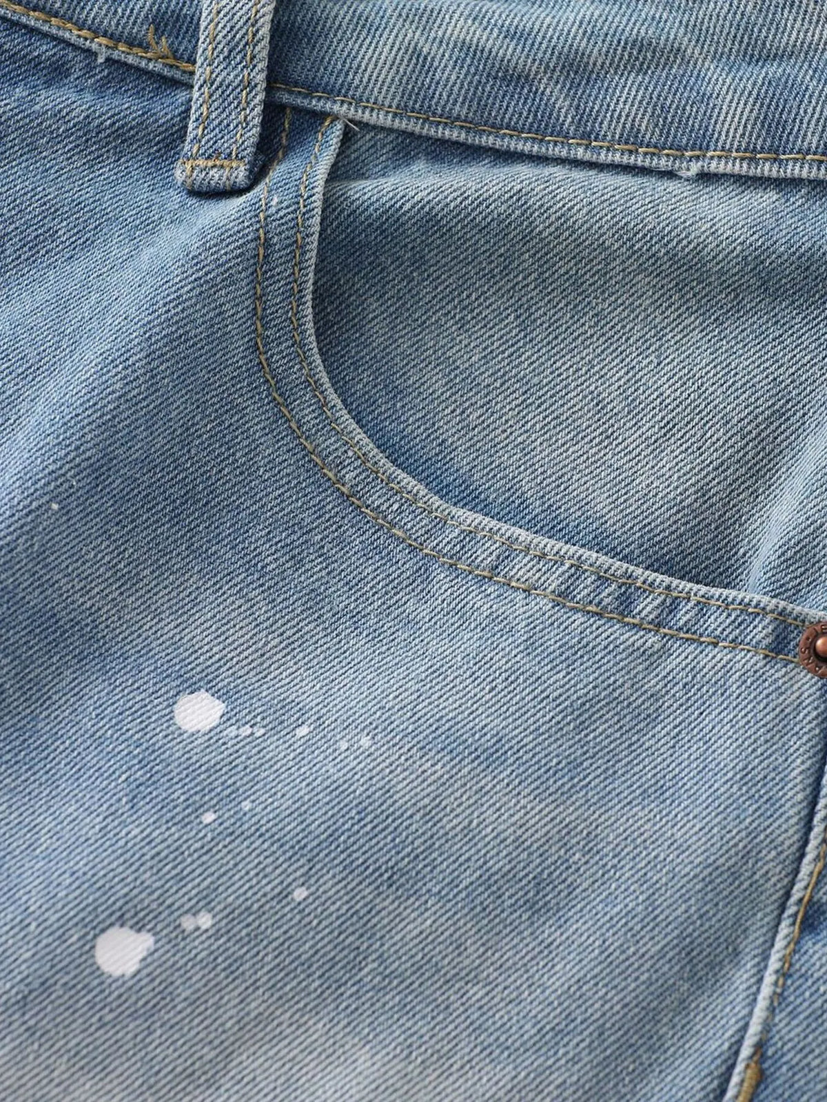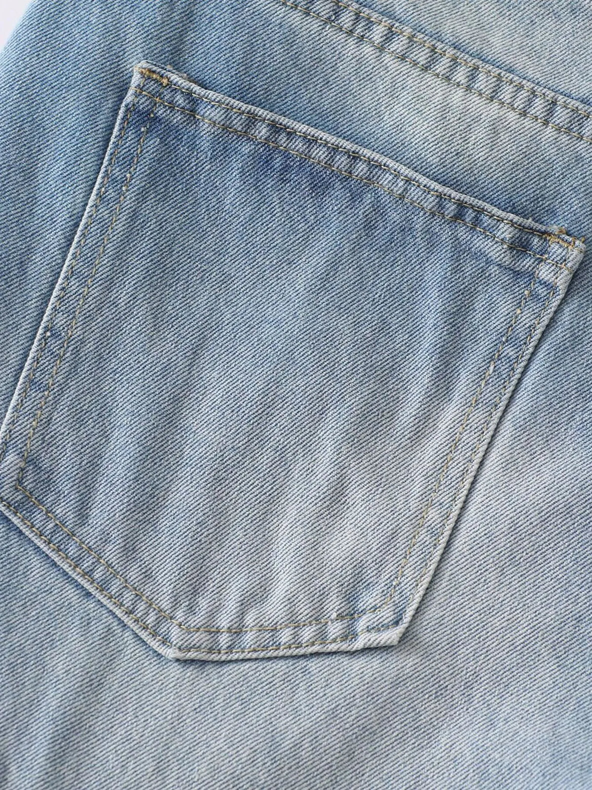 Mens Distressed Wide Leg Jeans With Washed Finish Slightly Stretchy Denim Pants For Casual Daily Wear Durable Versatile