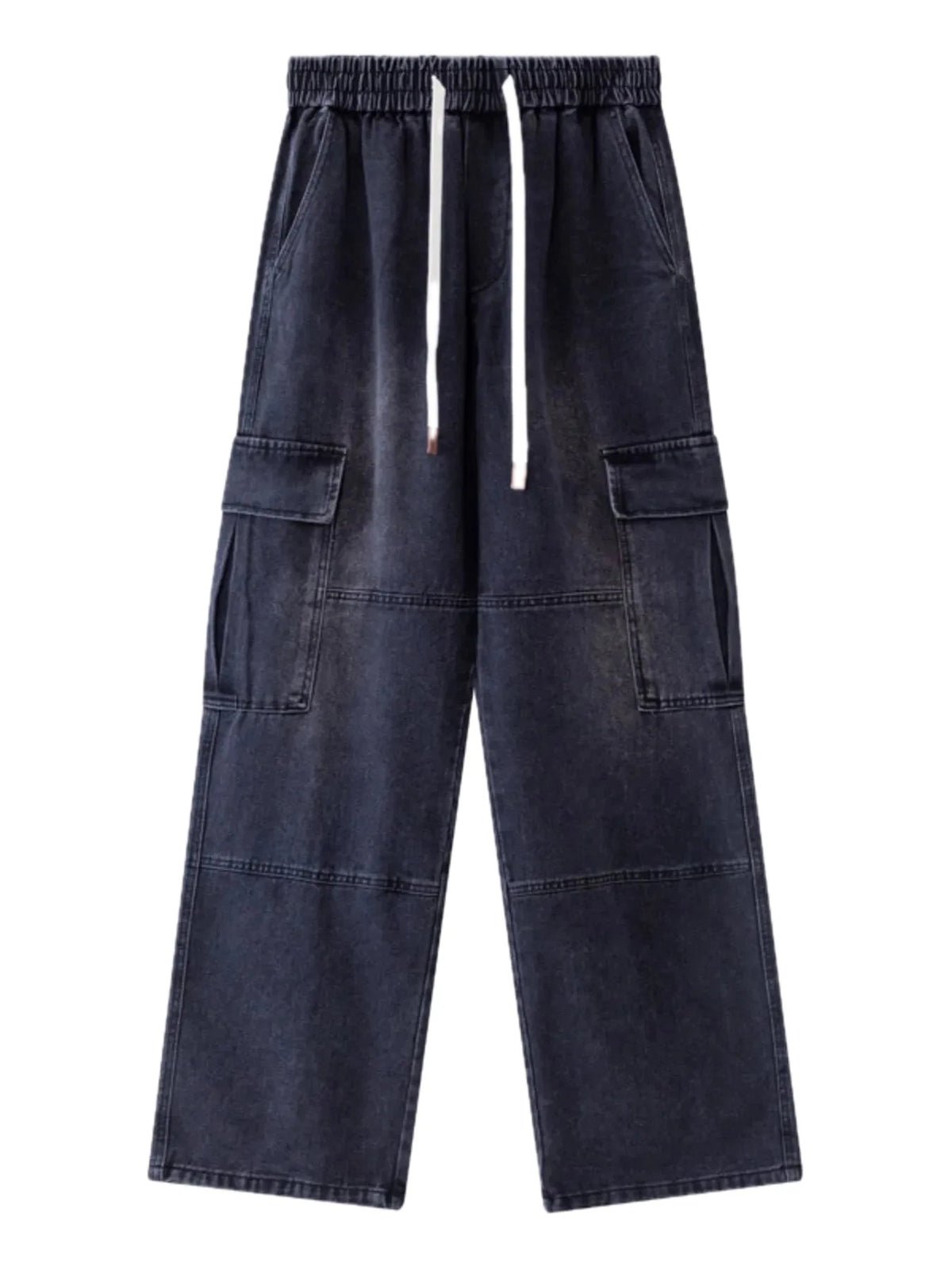 Mens Drawstring Wide Leg Cargo Jeans Relaxed Fit Pocketed Durable Versatile Everyday Casual Streetwear Ideal City Living