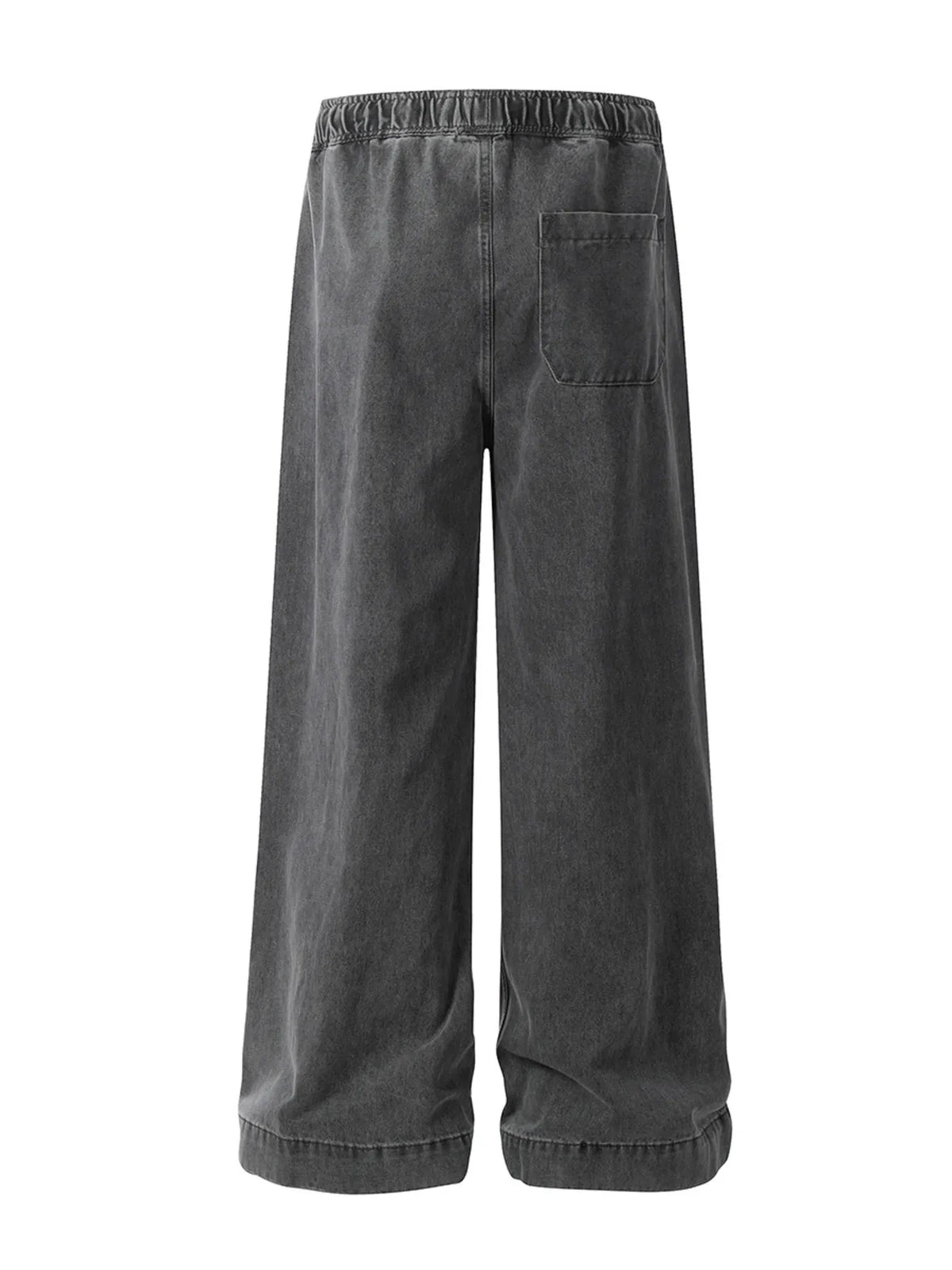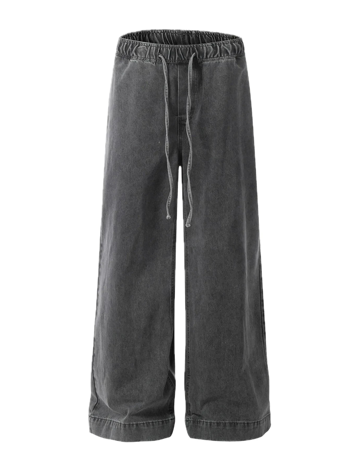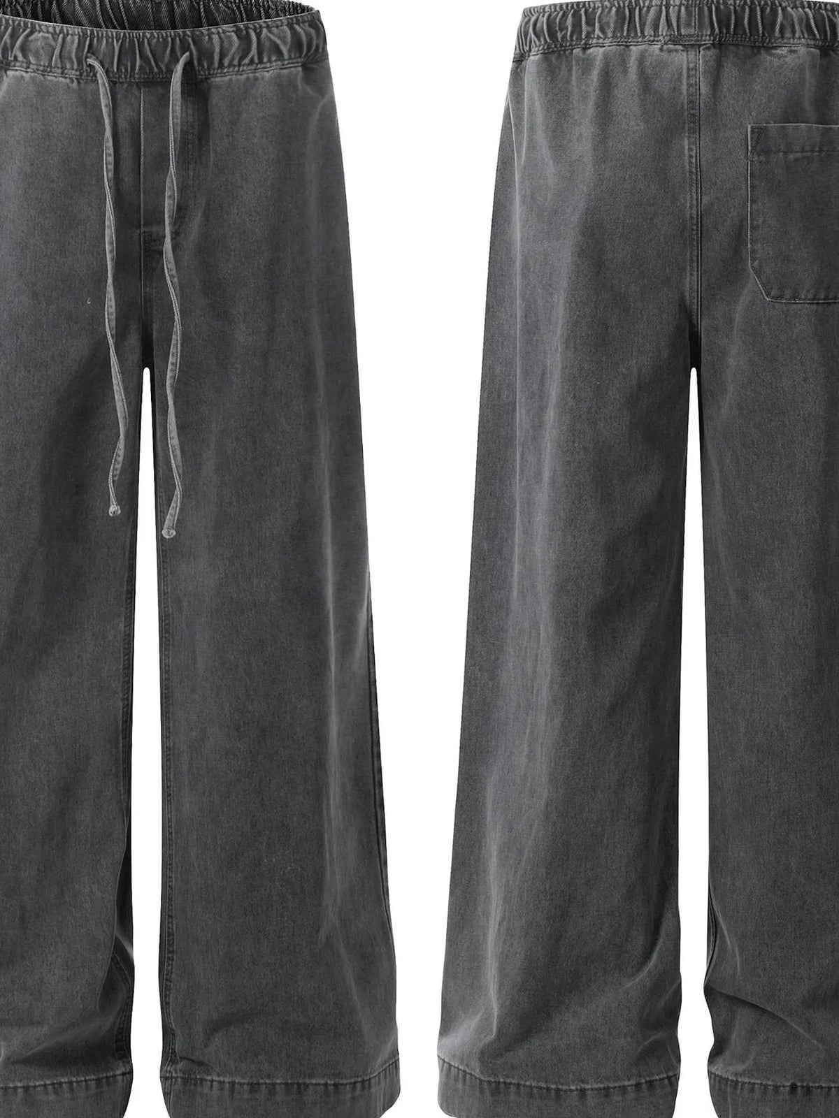 Mens Wide Leg Jeans with Pockets Drawstring Waist Casual Relaxed Fit Versatile Everyday Trousers For Daily Wear