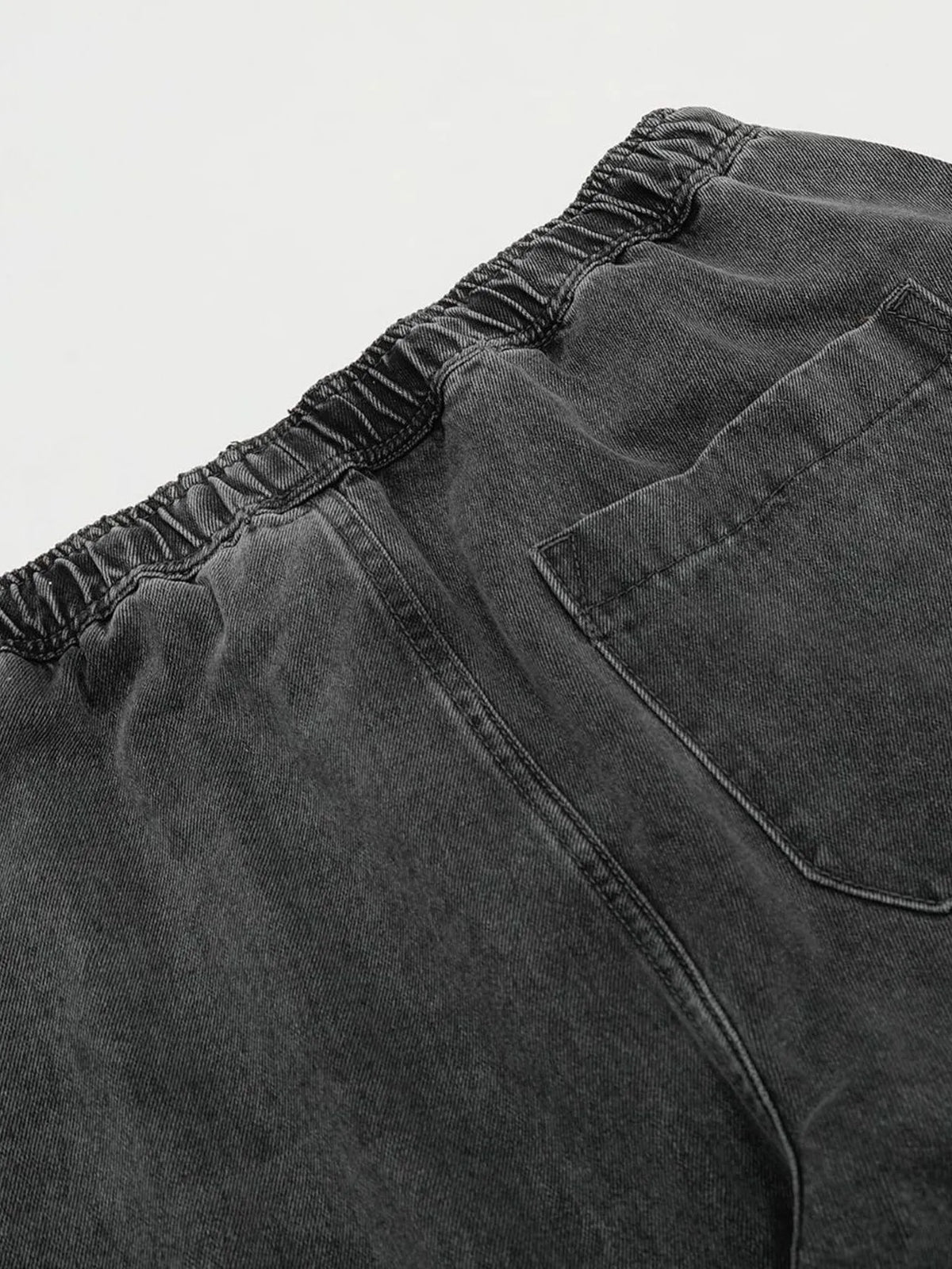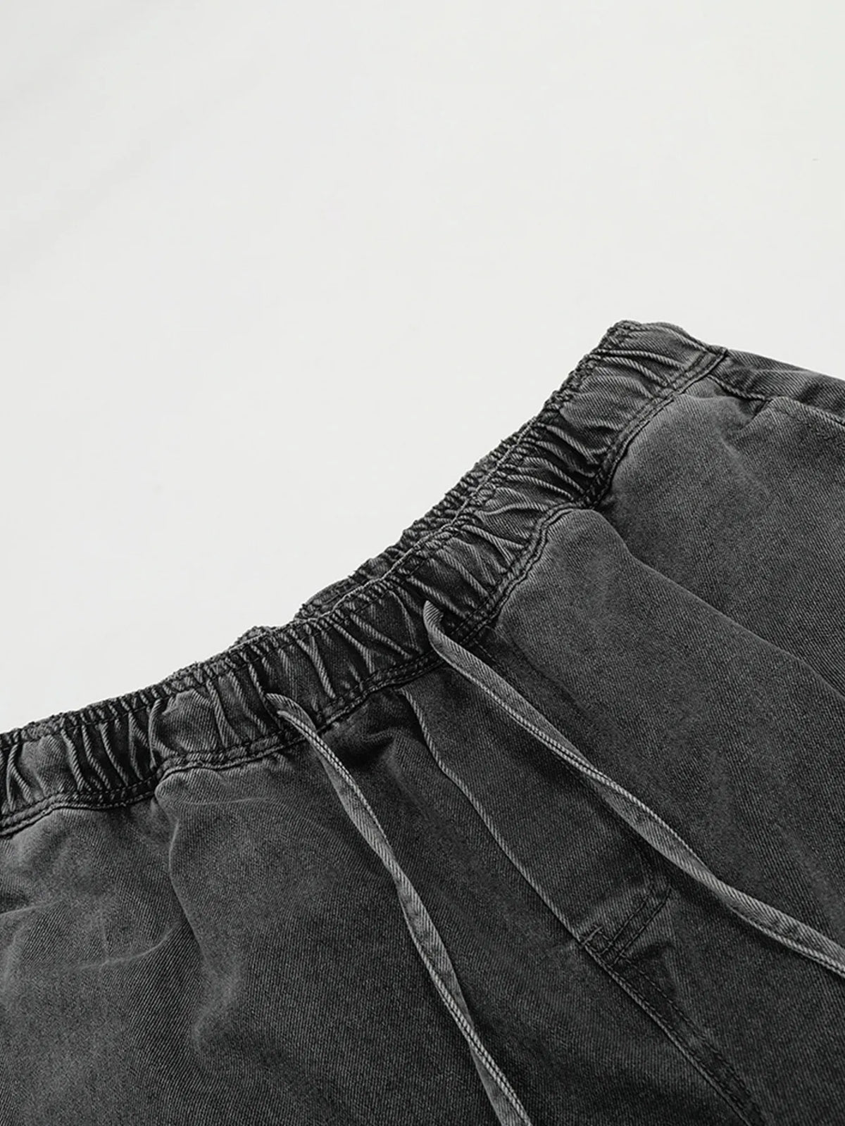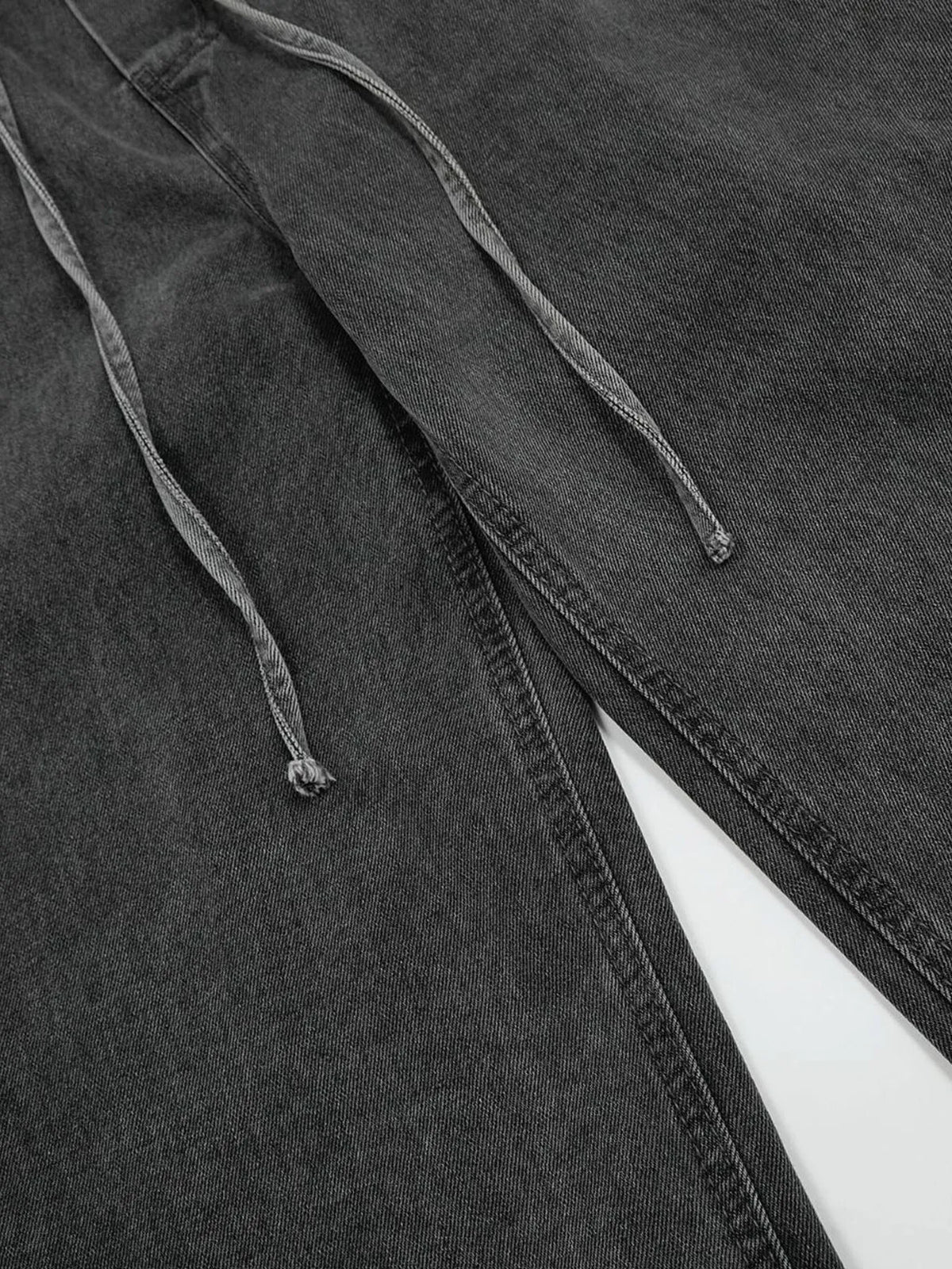 Mens Wide Leg Jeans with Pockets Drawstring Waist Casual Relaxed Fit Versatile Everyday Trousers For Daily Wear
