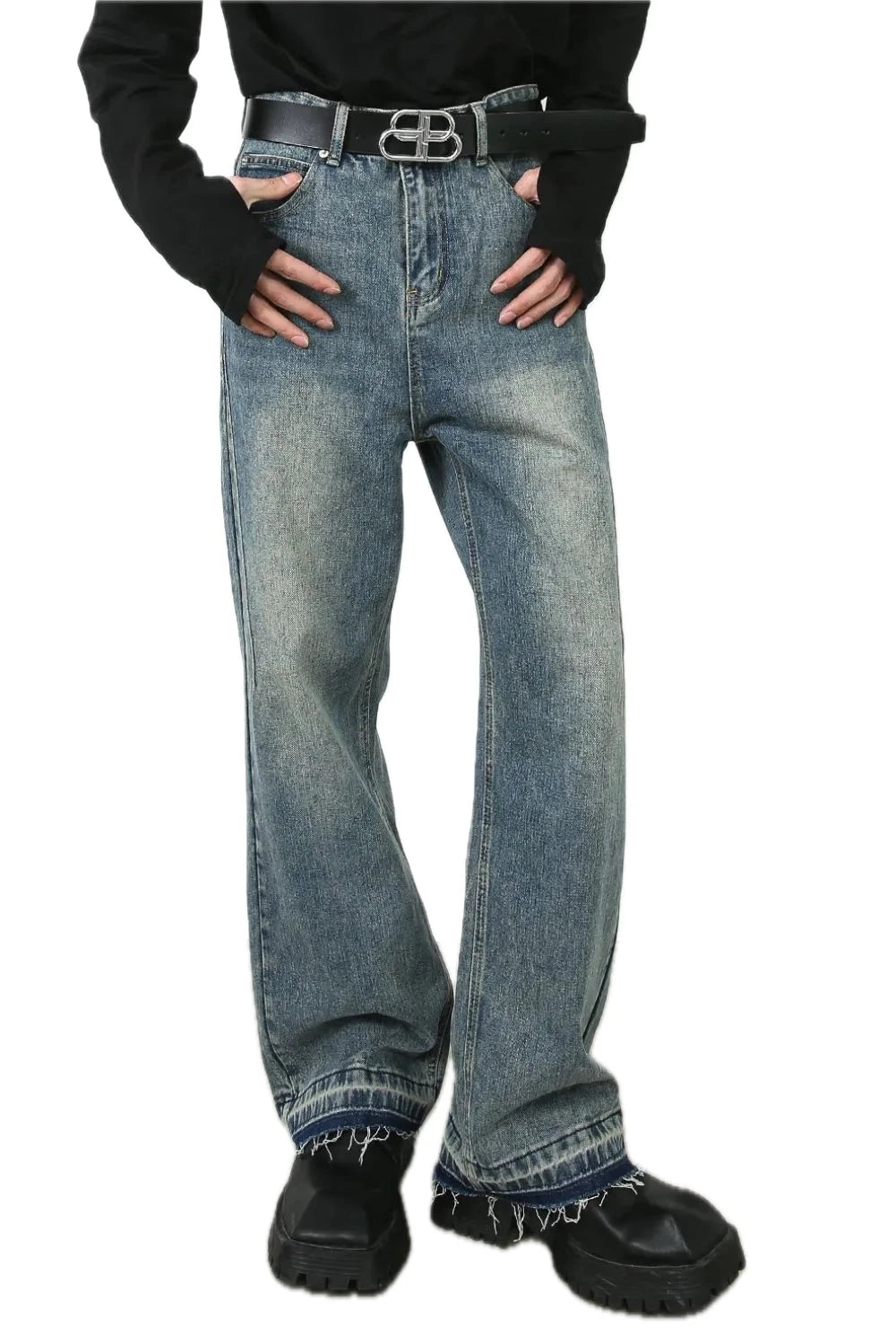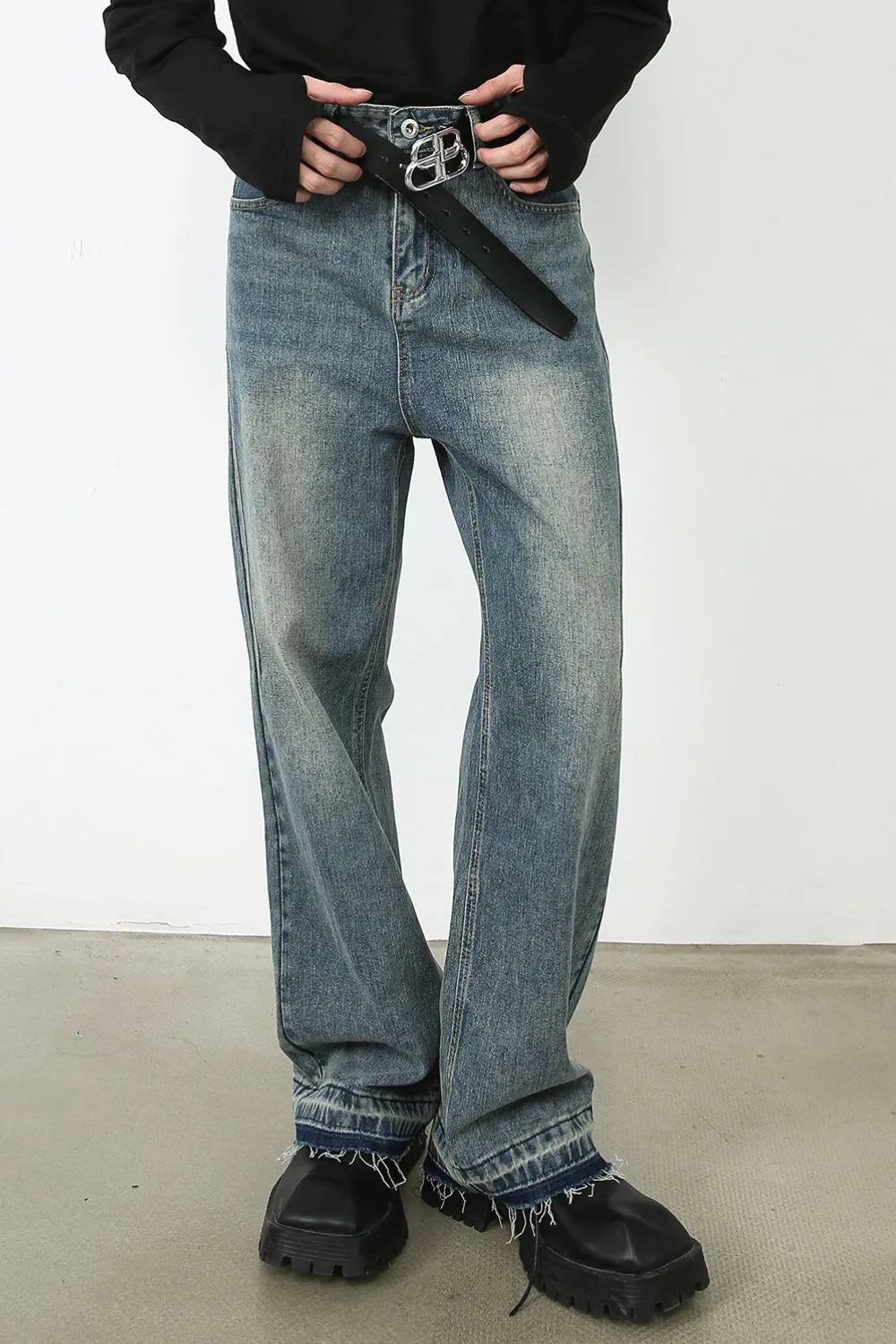 Mens Frayed Hem Jeans with Pockets Durable Classic Fit Denim Pants for Everyday Casual Wear Made with Cotton Blend