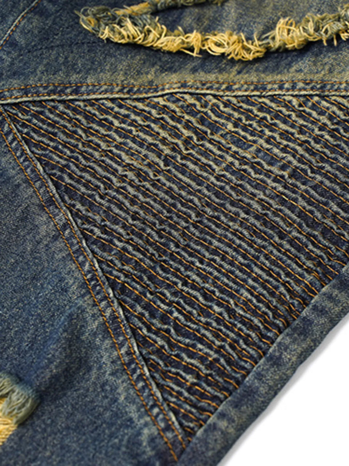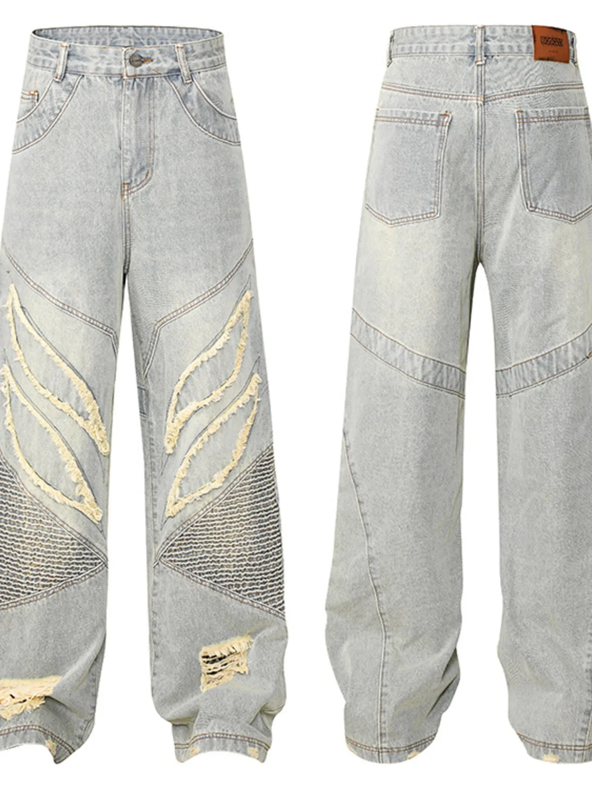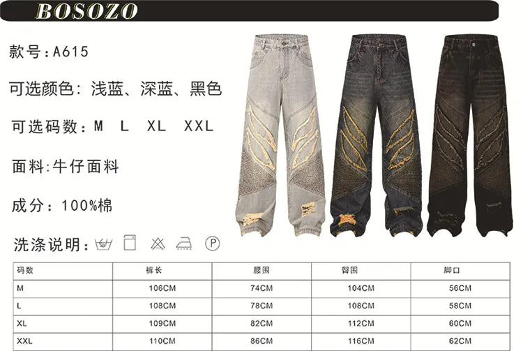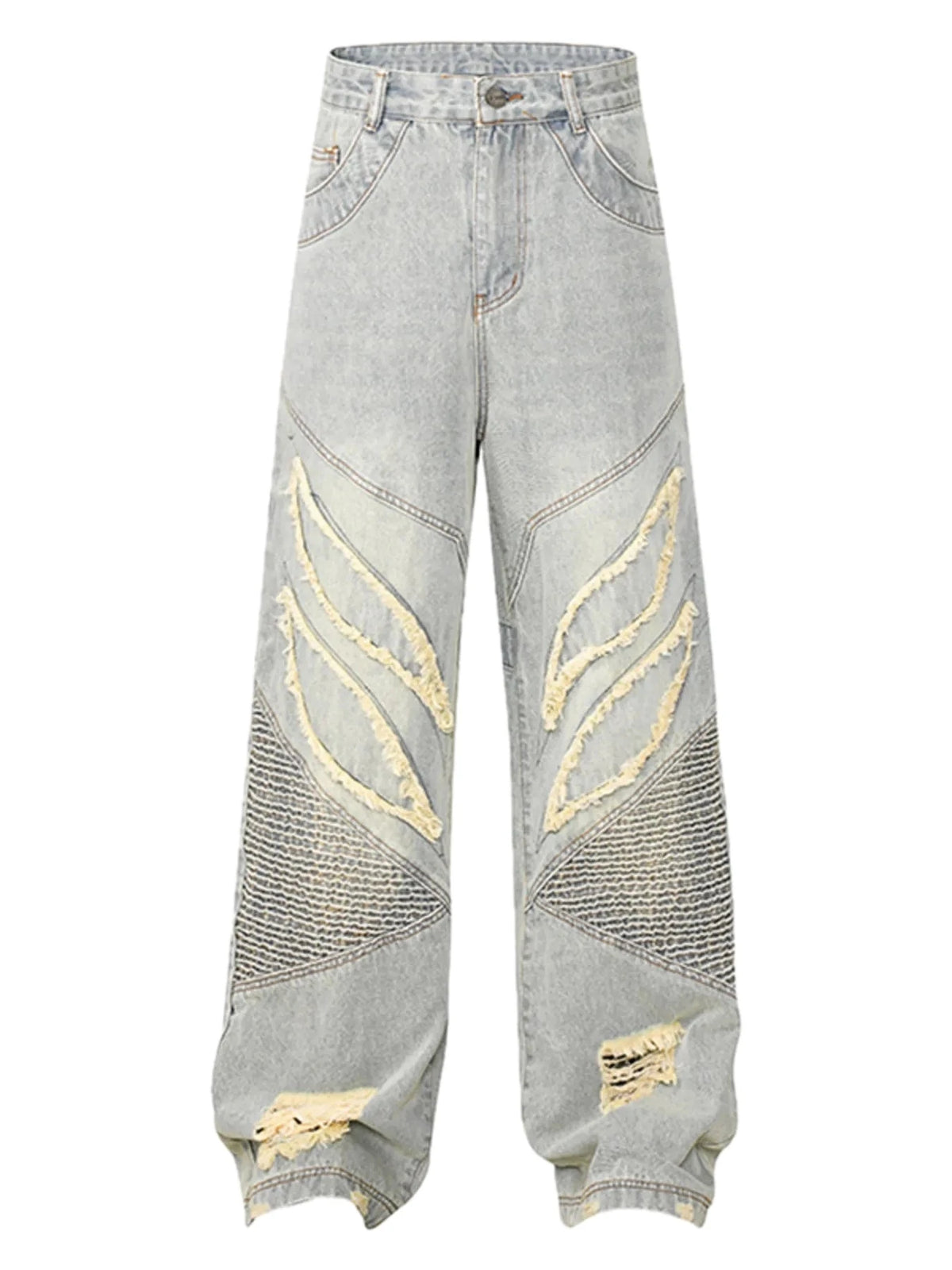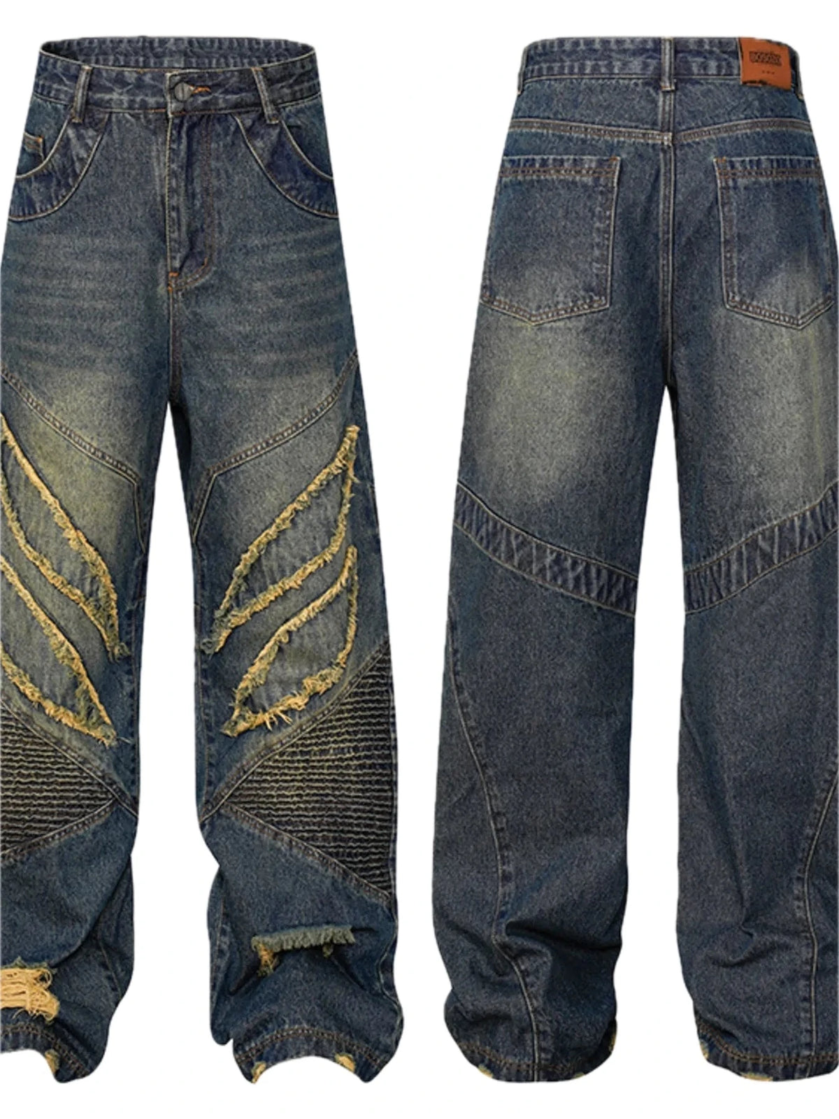 Men Loose Fit Jeans with Frayed Hem Washed Finish Slight Stretch for Casual Everyday Wear Durable Denim Pants Style