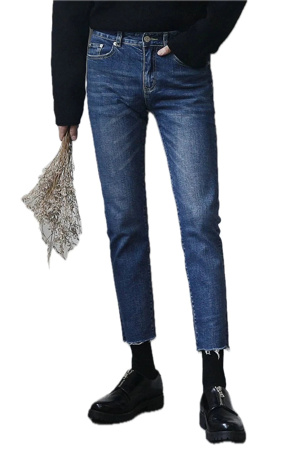 Mens Frayed Hem Skinny Fit Jeans Stretch Denim with Distressed Look for Modern Casual Everyday Wear and Slim Leg