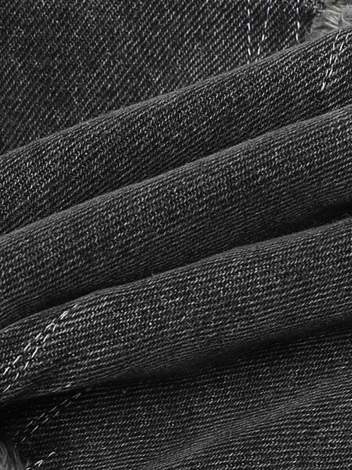 Men Distressed Denim Jeans with Camo Patchwork and Pocketed Design Washed Slightly Stretchy Plus Size Casual Wear