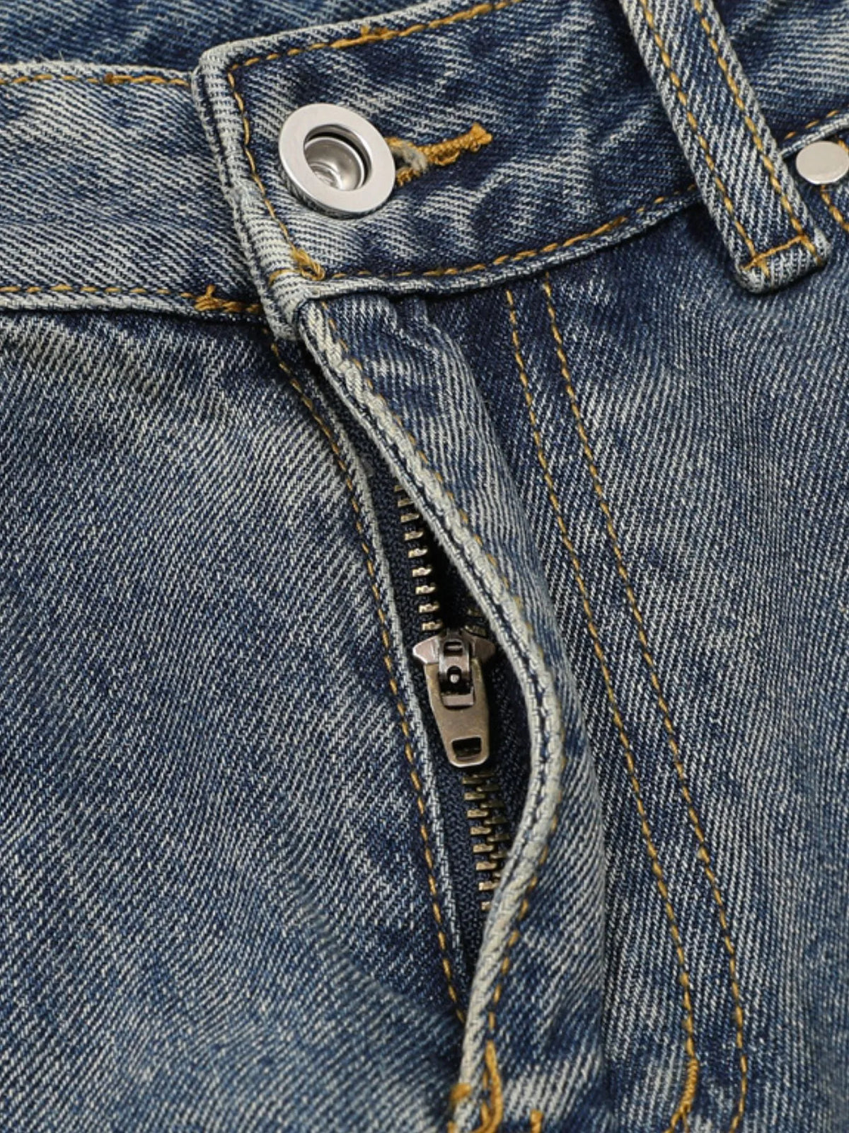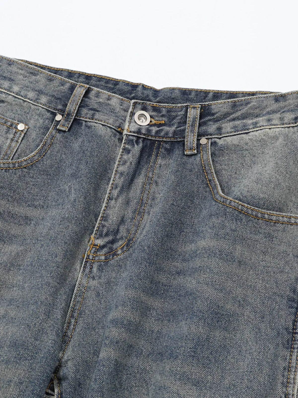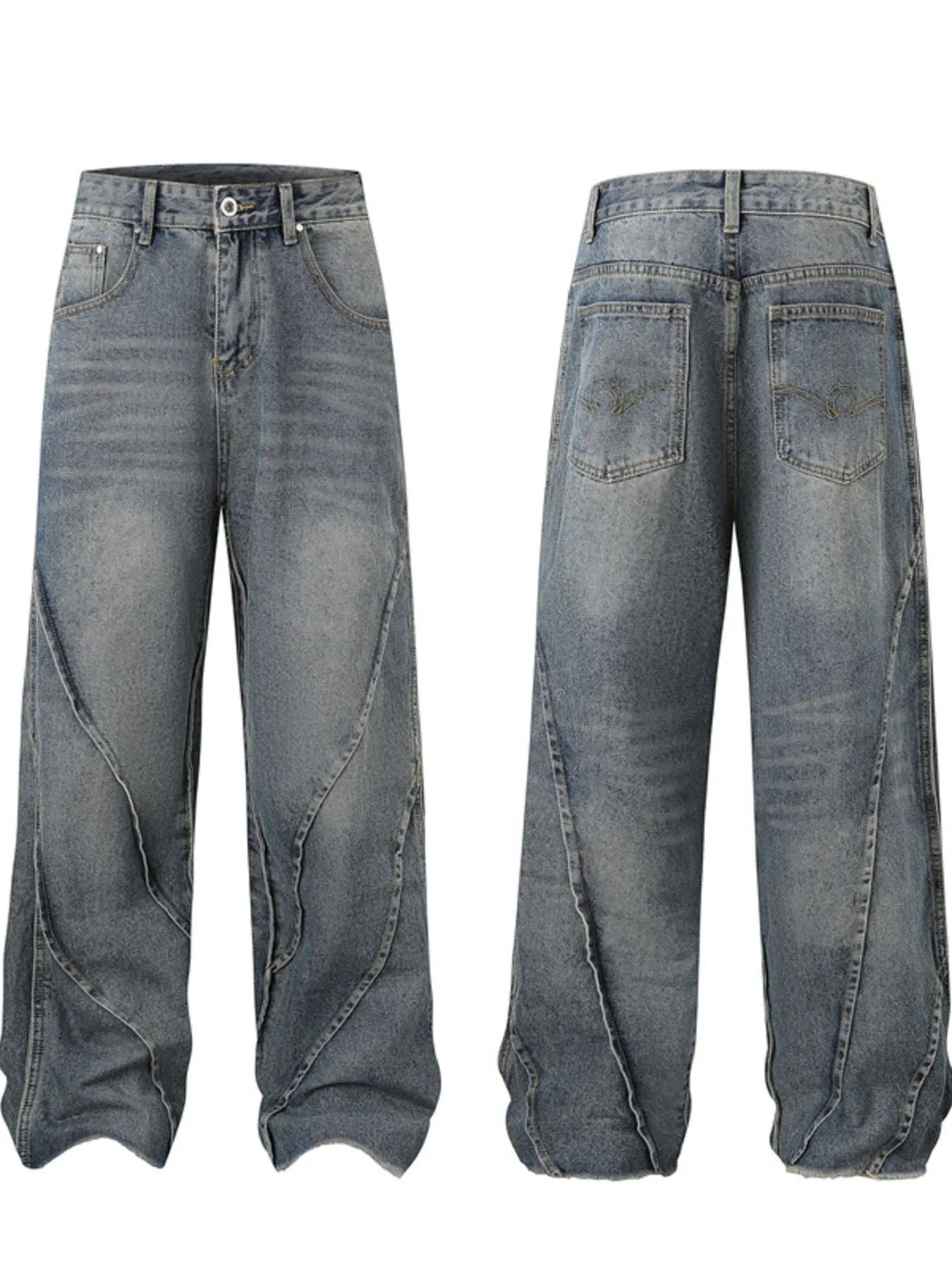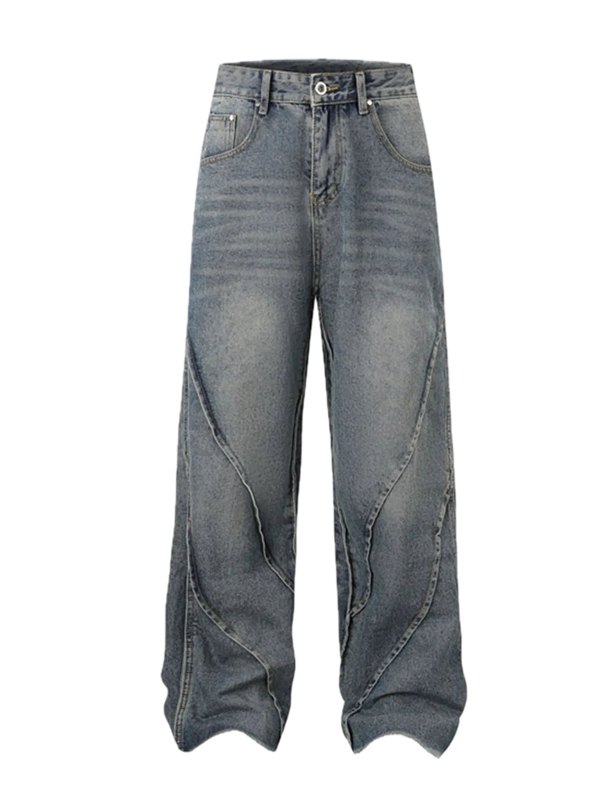 Mens Wide Leg Jeans Washed Denim with Seam Detail Durable Relaxed Fit for Everyday Casual Wear Plus Size Versatile