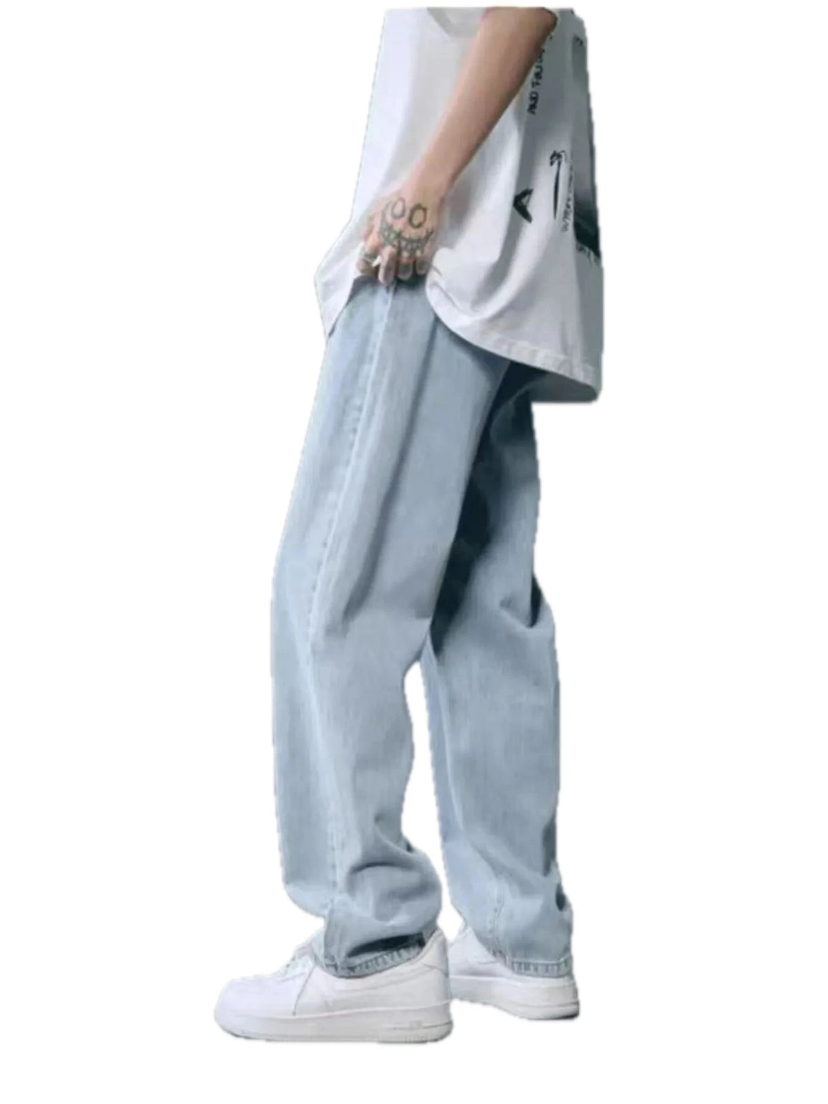 Mens Wide Leg Jeans Relaxed Fit Plus Size Oversized Washed Denim Pants Durable Casual Everyday Wear Soft Stretch