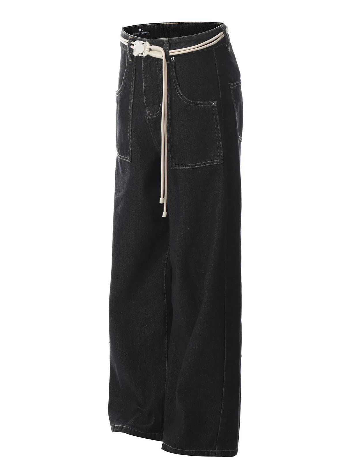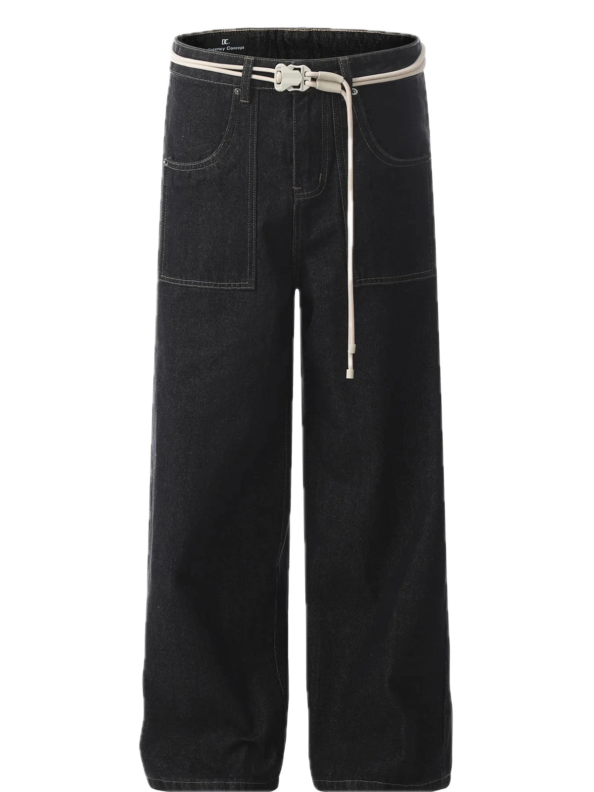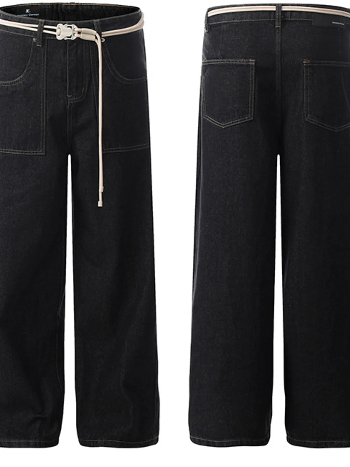 Mens High Waist Wide Leg Denim Jeans Durable Casual Pants with Front and Back Pockets and Belt Loops for Everyday Wear