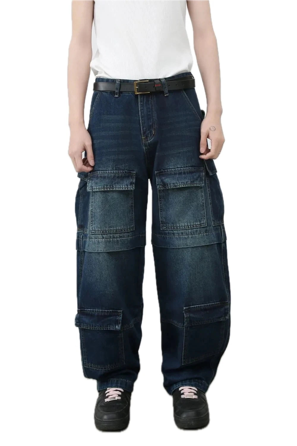 Mens Mid Rise Cargo Pocket Jeans Durable Work Pants for Everyday Casual Wear and Versatile Outdoor Use All Season
