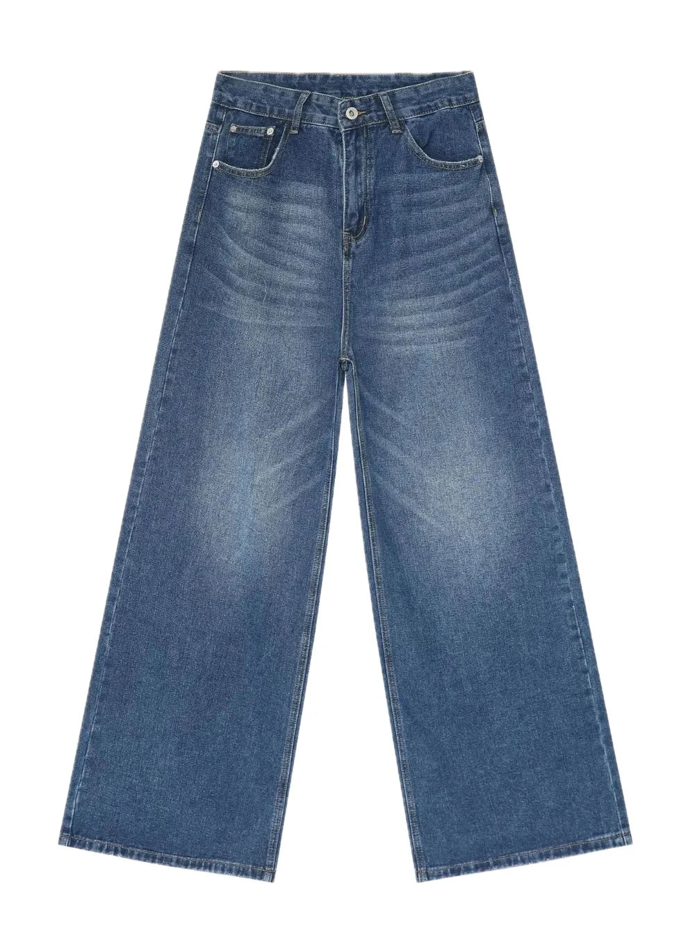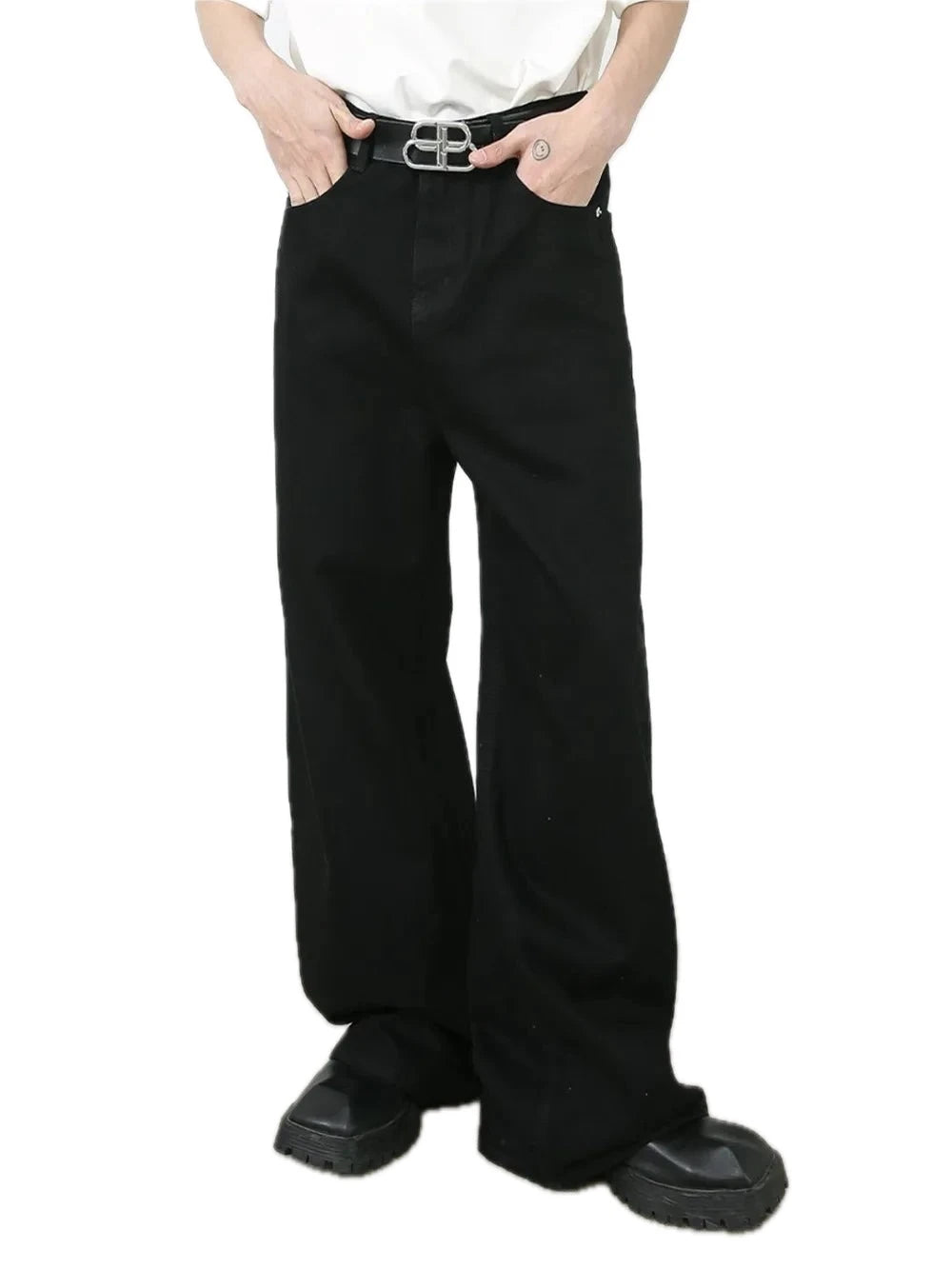 Mens Wide Leg Jeans Mid Rise With Buttoned Pockets Durable Classic Fit Trousers For Everyday Wear Made From Cotton Denim
