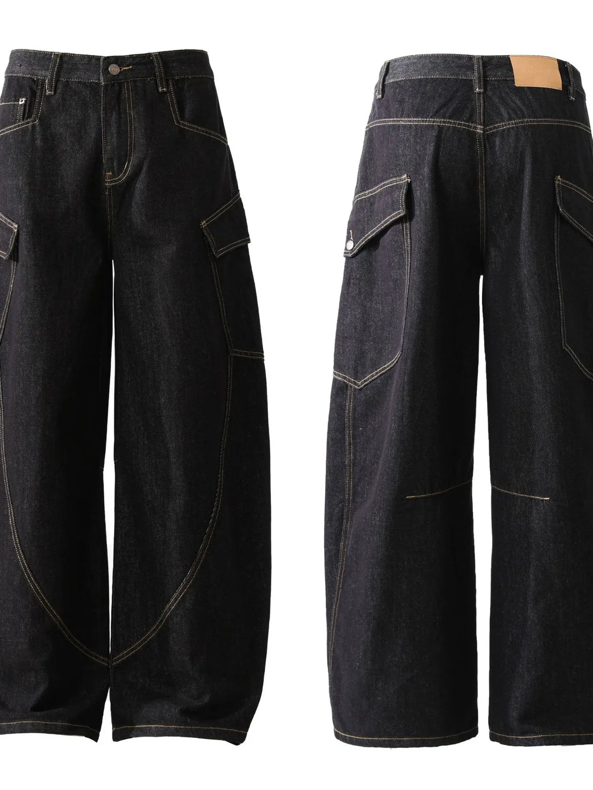 Mens Oversized Cargo Barrel Jeans with Pocketed Design Loose Fit Durable Denim Pants for Everyday Wear for Daily Use