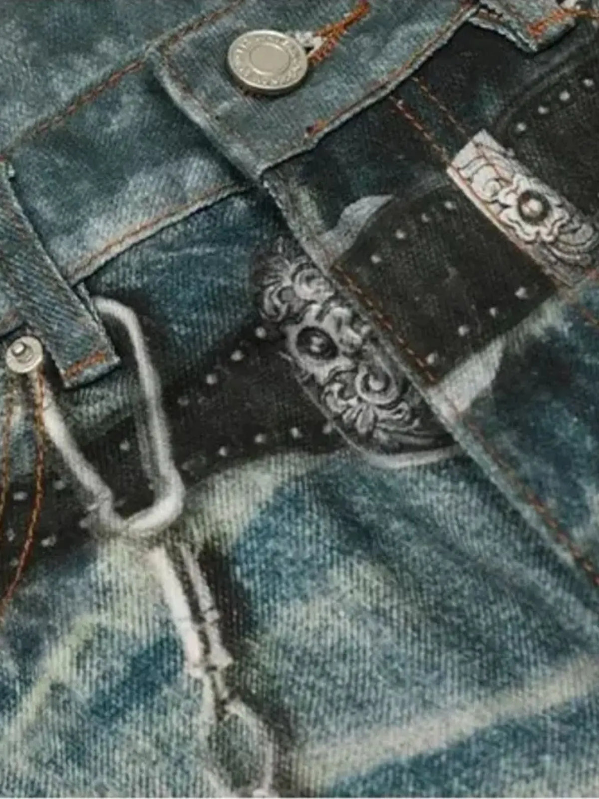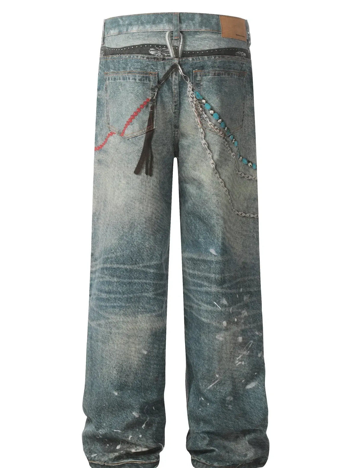 Mens Paint Splatter Wide Leg Jeans Distressed Denim with Pockets Washed Slightly Stretchy Casual Streetwear Pants