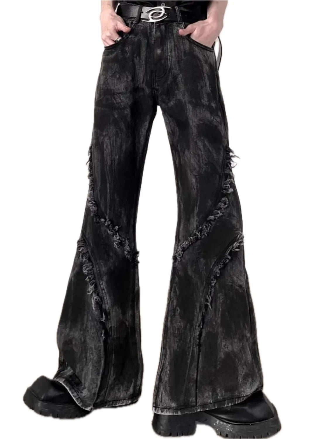 Mens Plus Size Flare Jeans with Raw Hem Denim Bootcut Leg Washed 100 Percent Cotton Everyday Casual Durable Fit