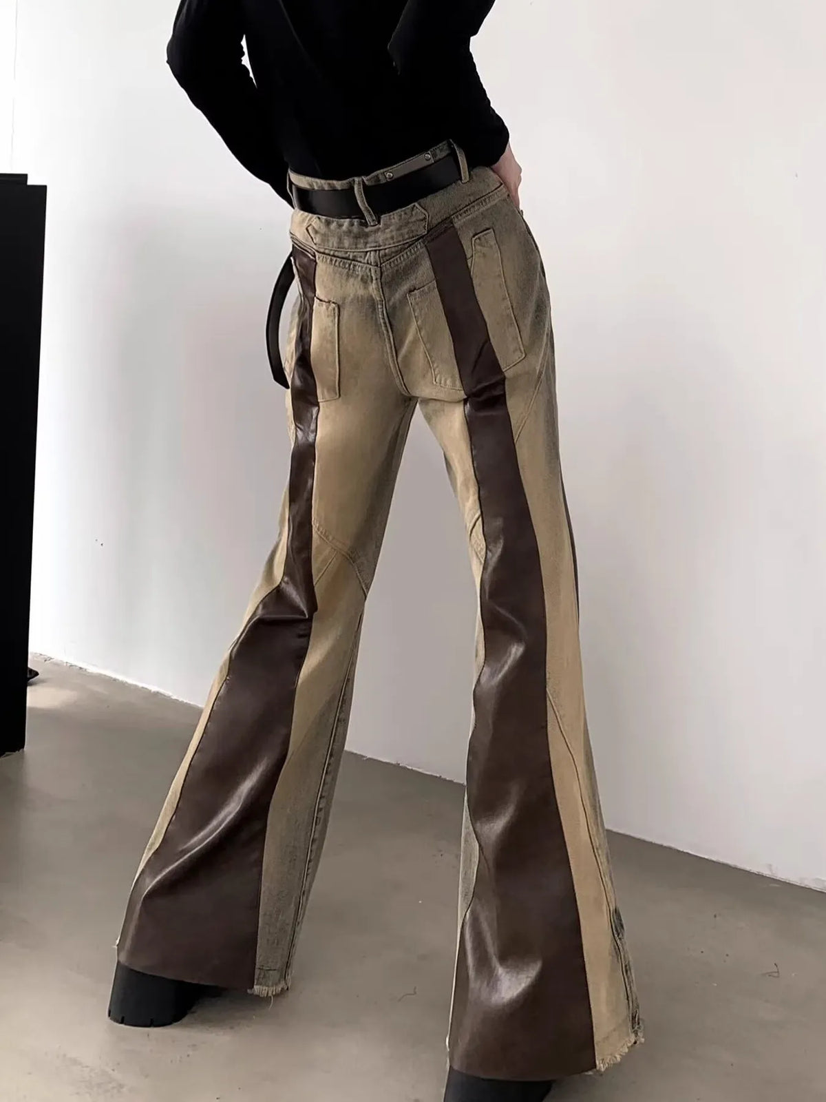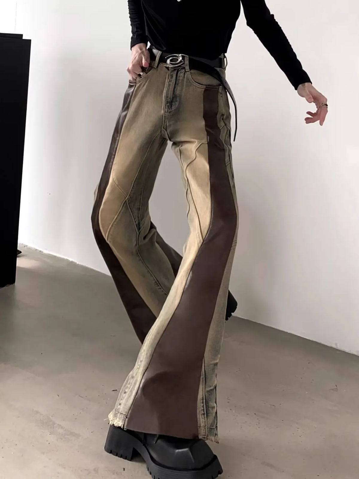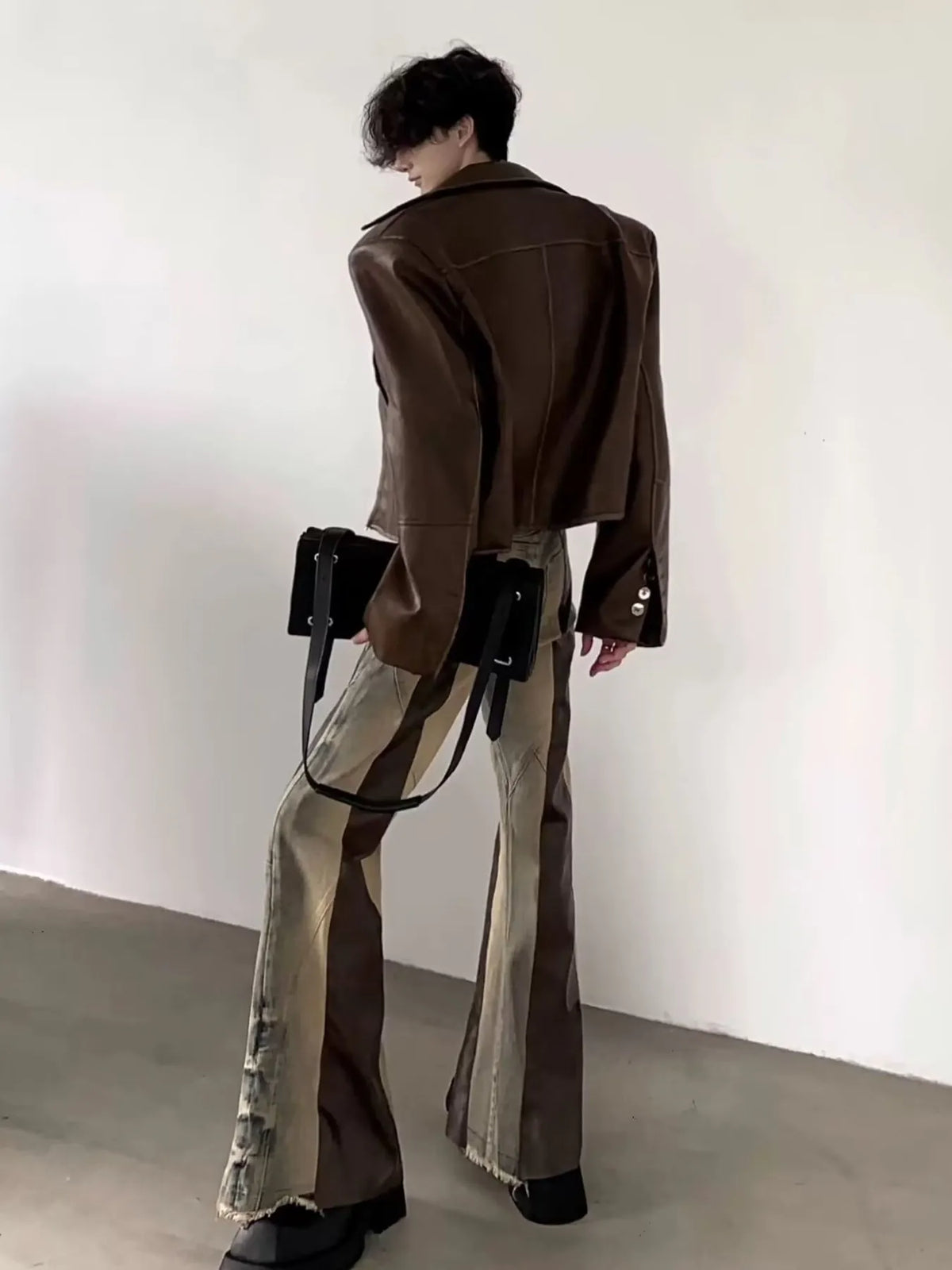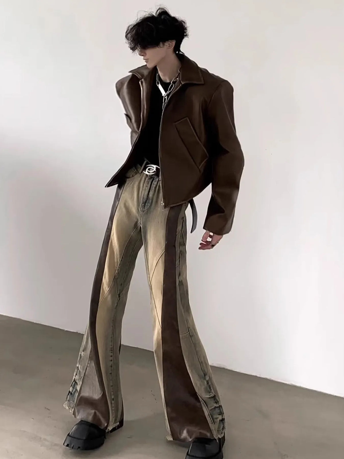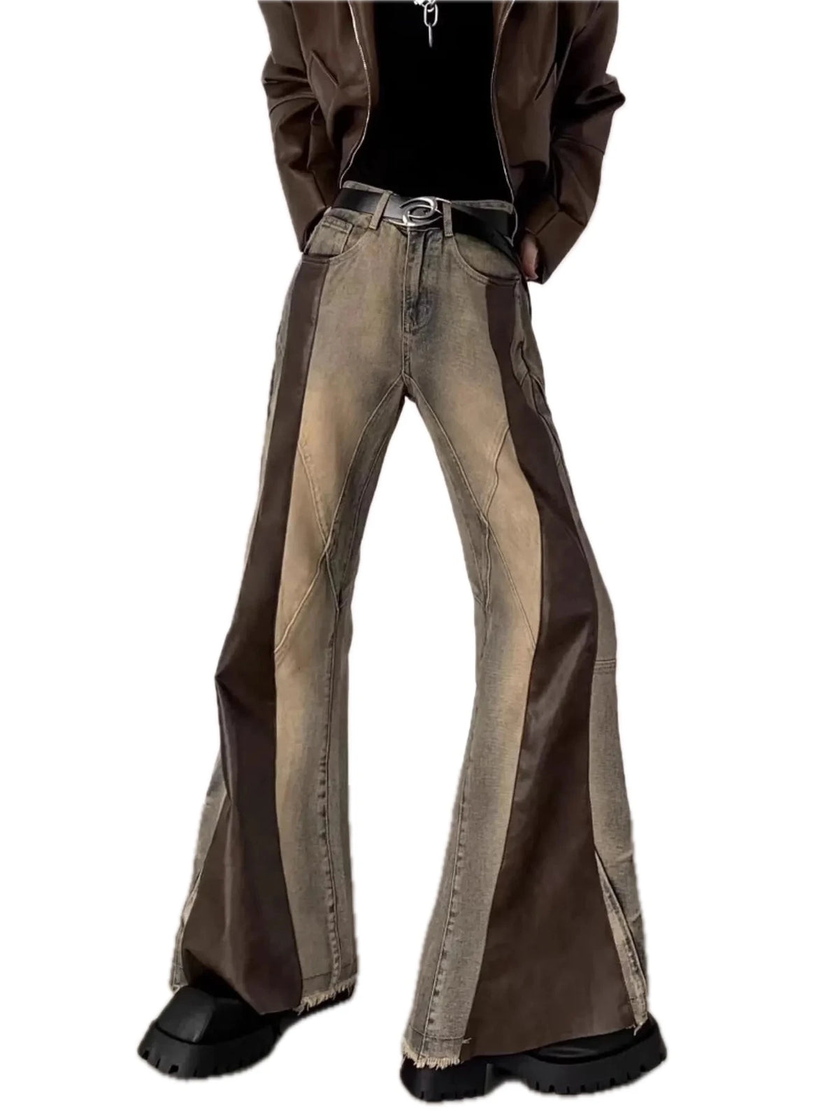 Mens Vintage Washed Two Tone Flare Jeans With Pockets Slightly Stretchy Durable Casual Everyday Wear Denim Quality