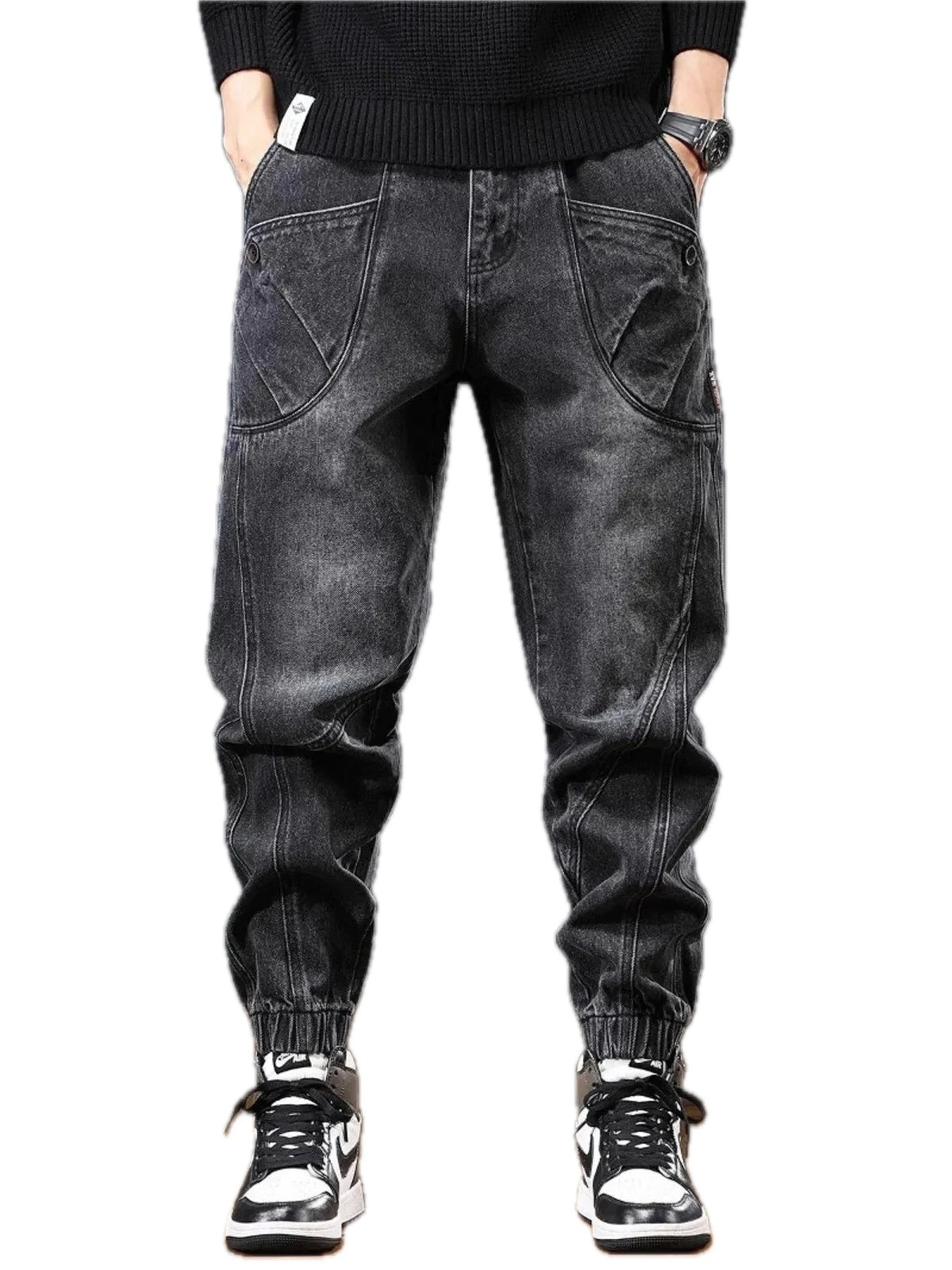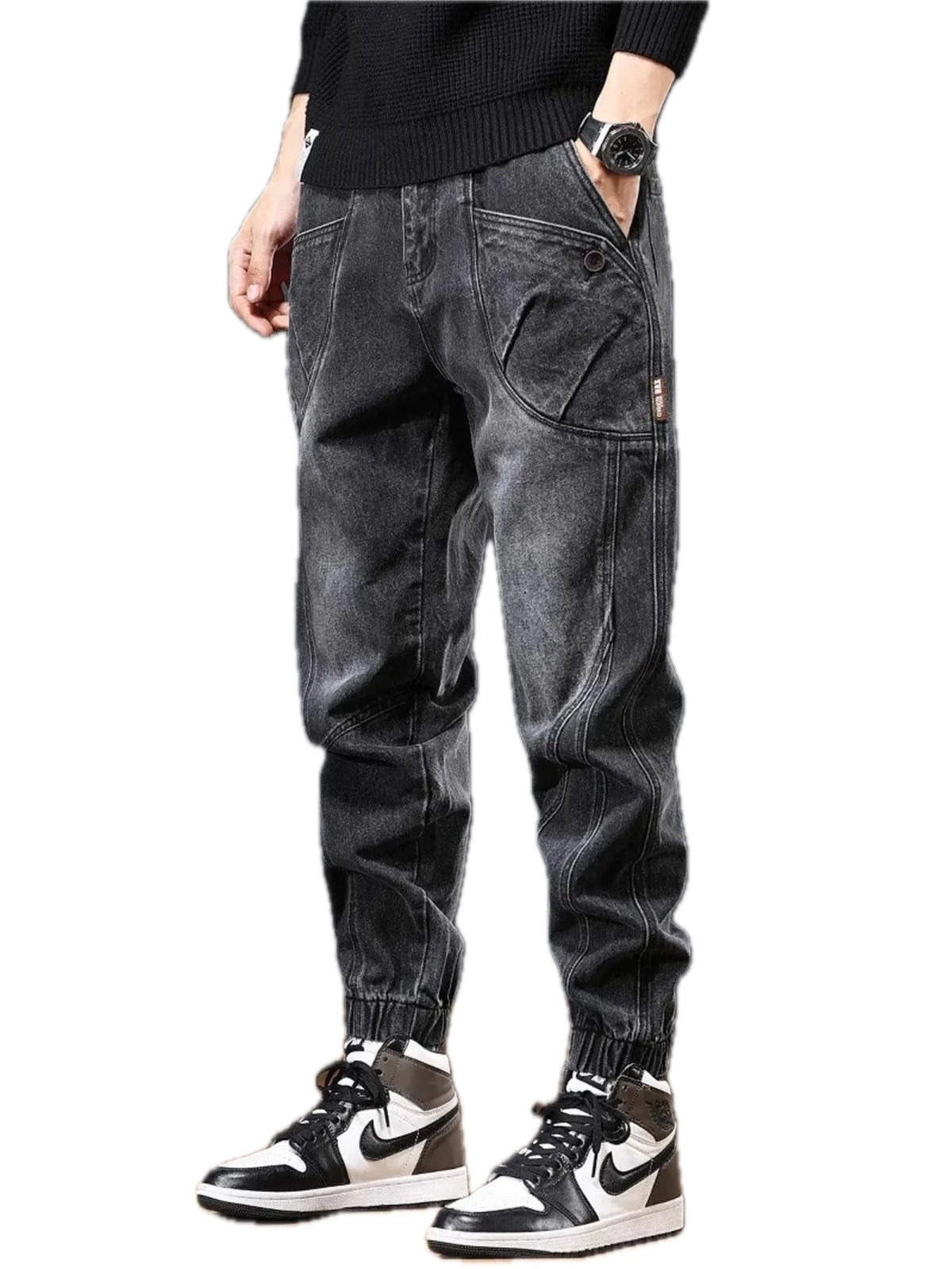 Mens Plus Size Washed Cargo Jogger Jeans with Large Pockets Oversized Relaxed Fit Durable Everyday Casual Trousers