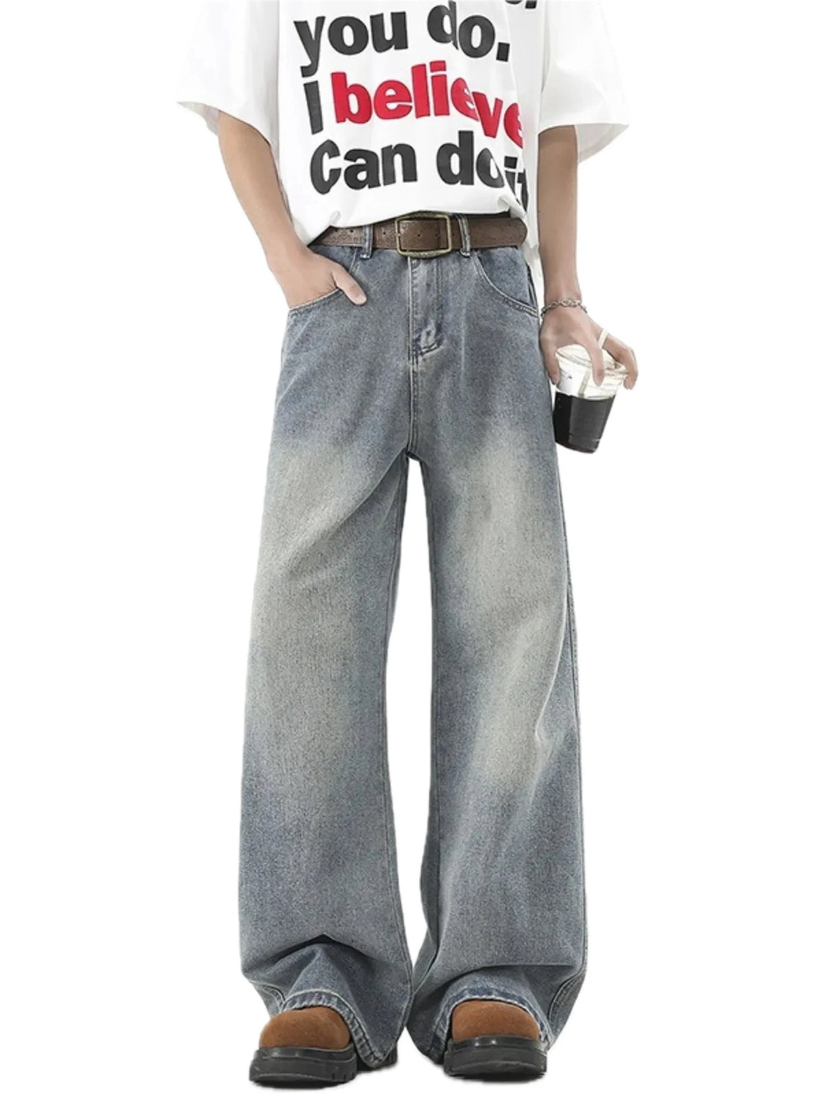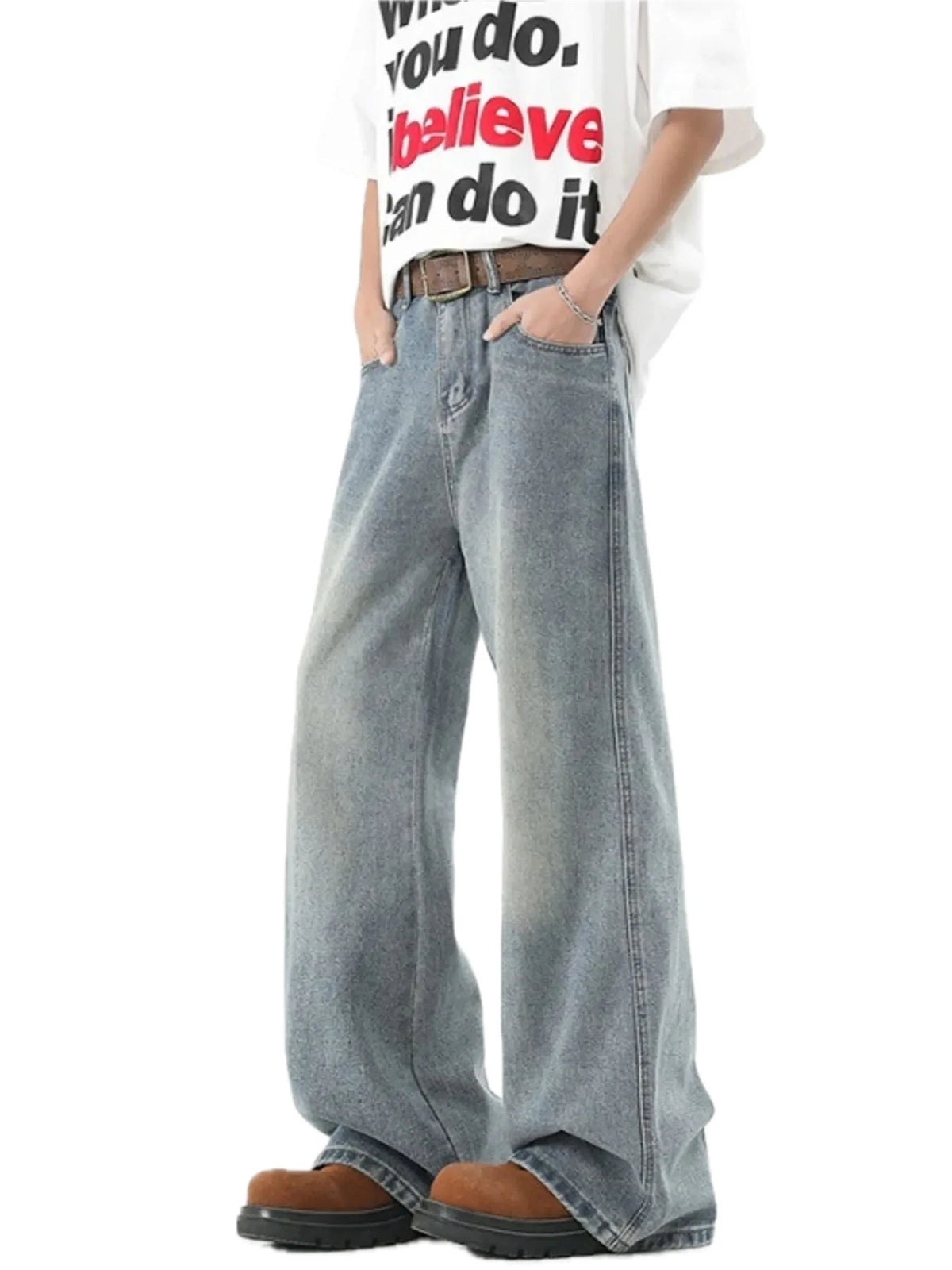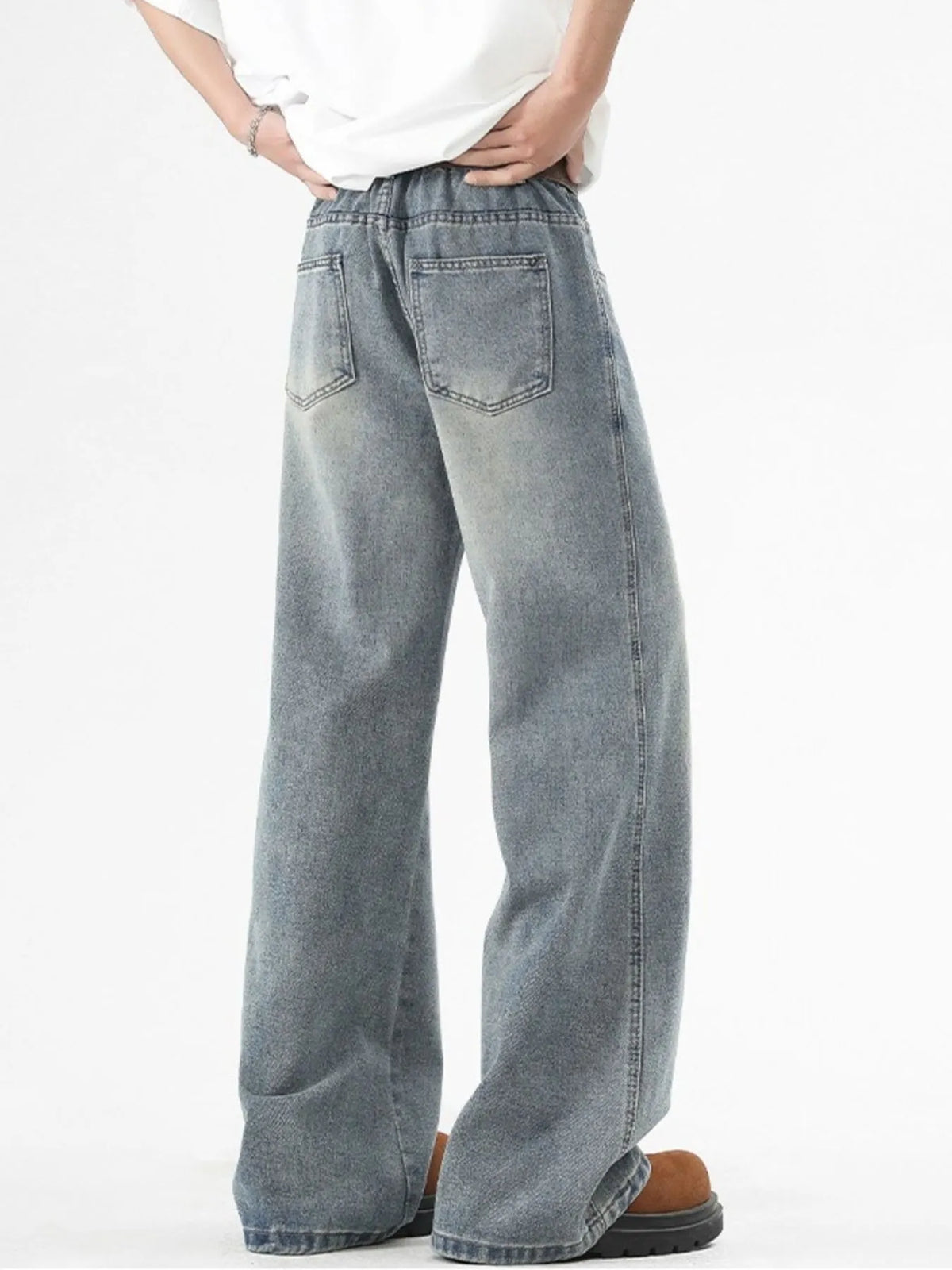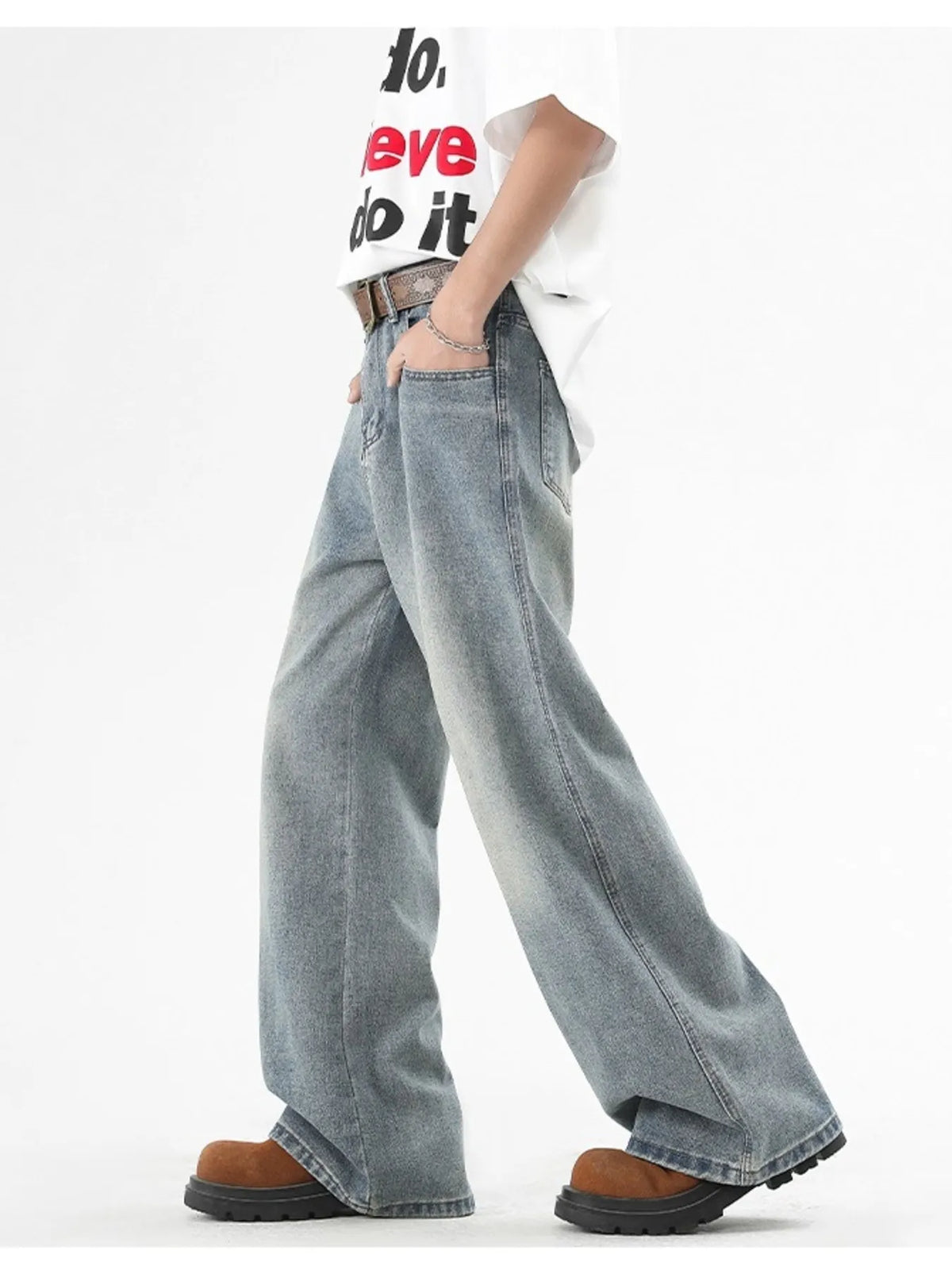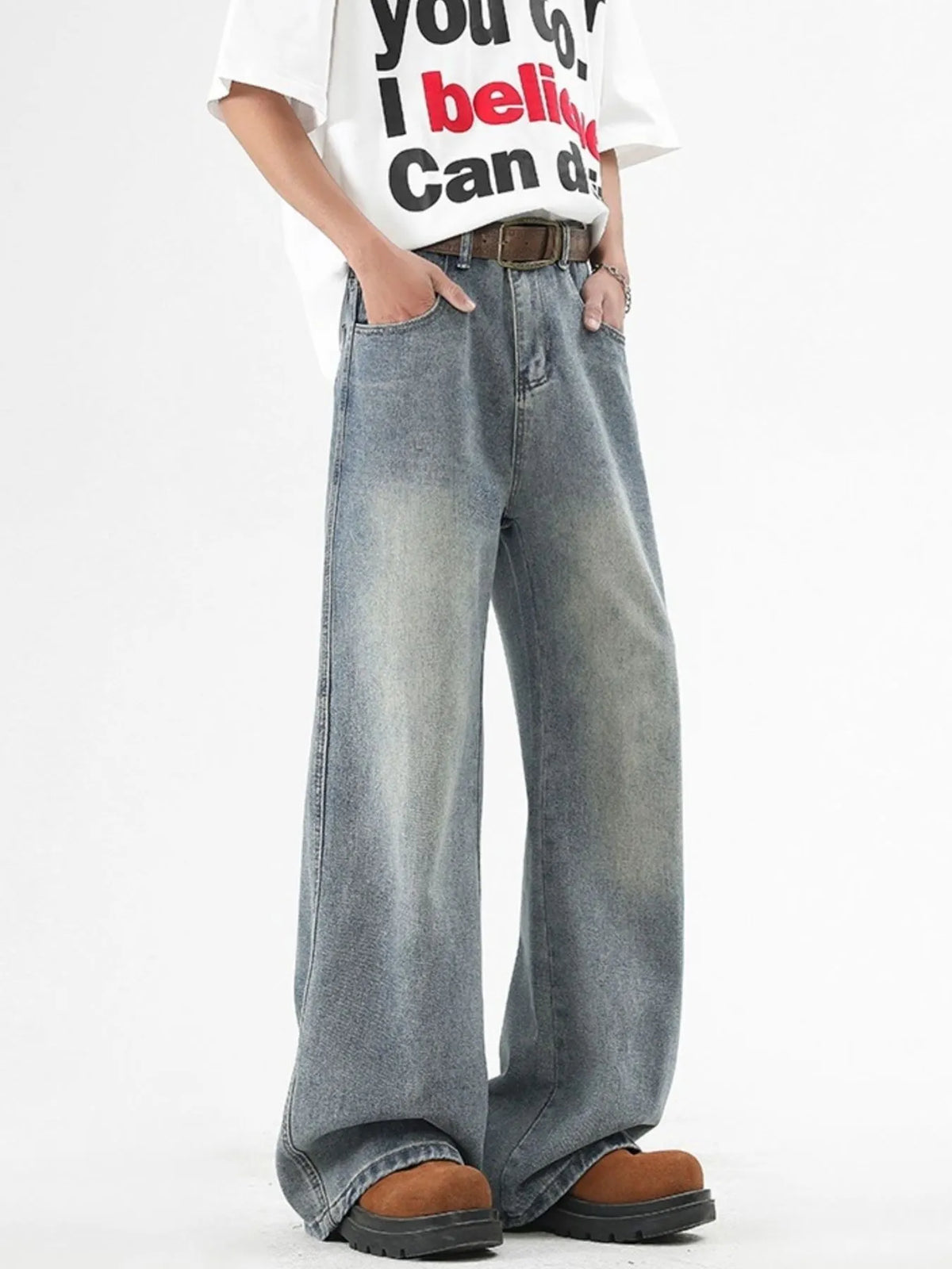 Mens Plus Size Wide Leg Washed Denim Jeans Loose Fit Casual Everyday Durable Versatile Relaxed Fit Pants for all seasons