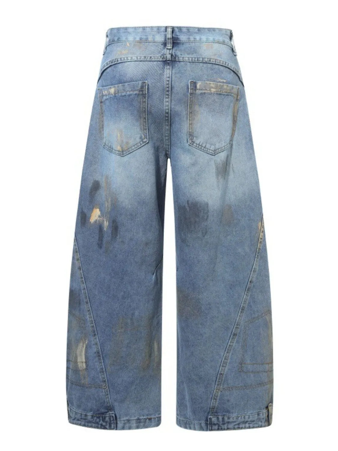 Men Plus Size Wide Leg Jeans Distressed Washed Loose Fit Denim Pants Durable Casual Everyday Versatile Comfortable Wear