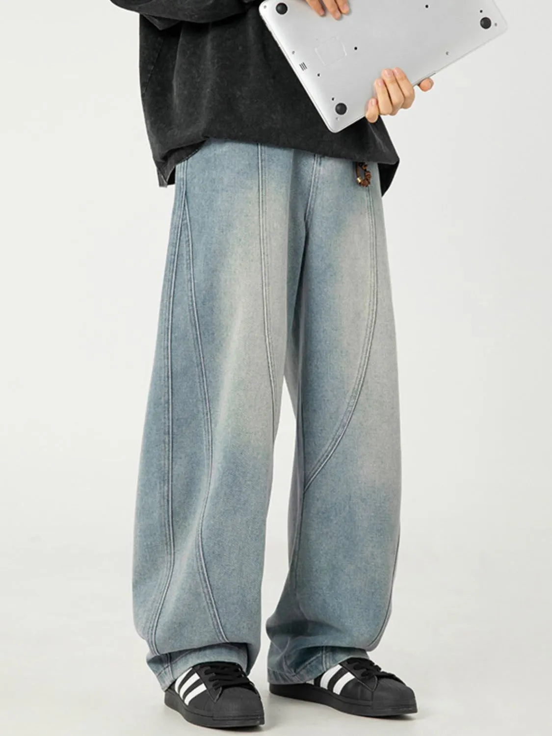 Plus Size Wide Leg Jeans Relaxed Fit Casual Trousers for Men Durable Cotton Blend Comfortable Everyday Wear Daily