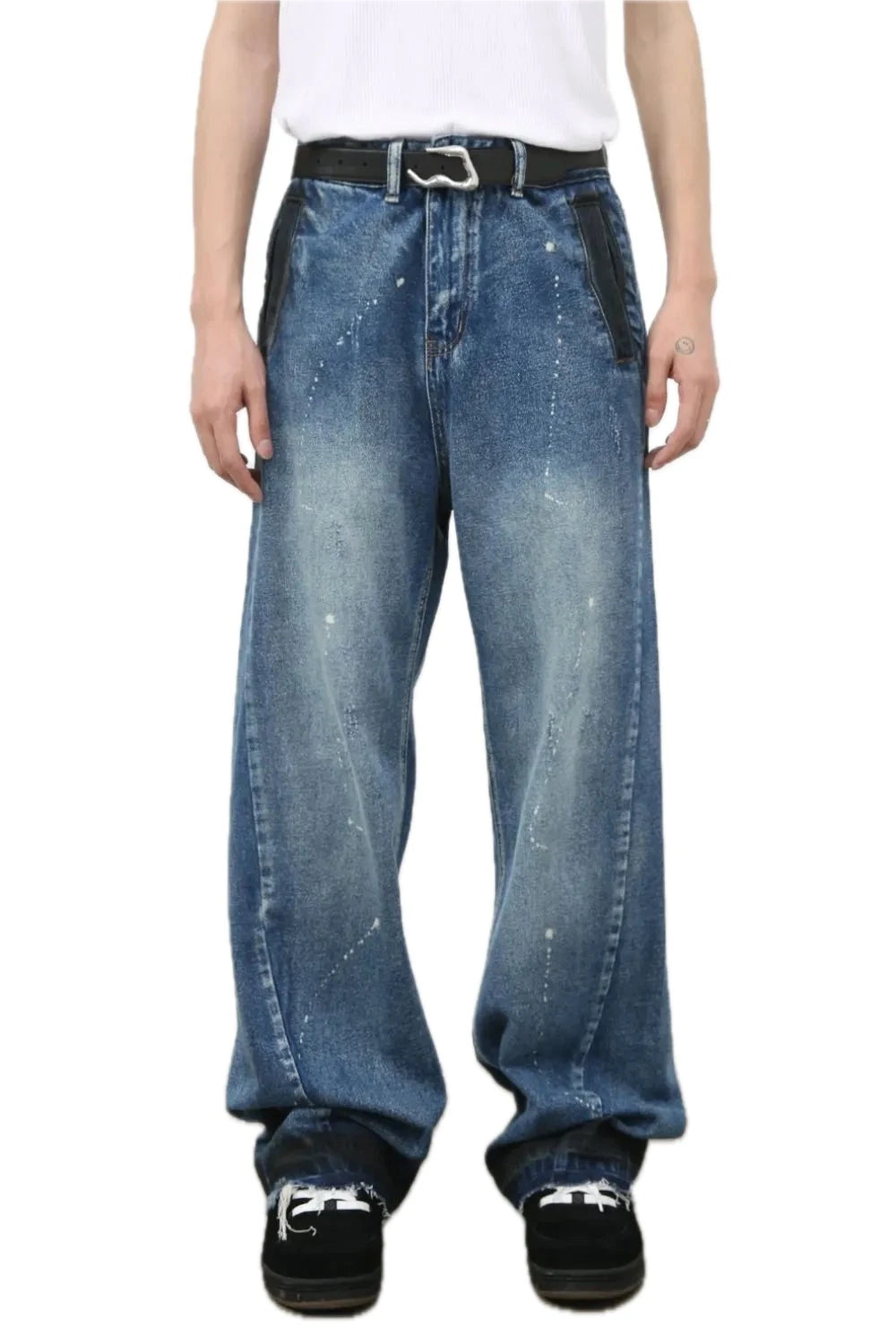 Baggy fit denim jeans for men with raw hem loose fit pocketed durable casual everyday wear trousers with roomy pockets