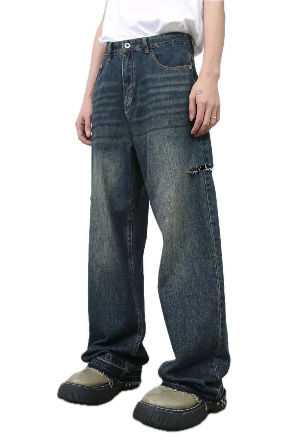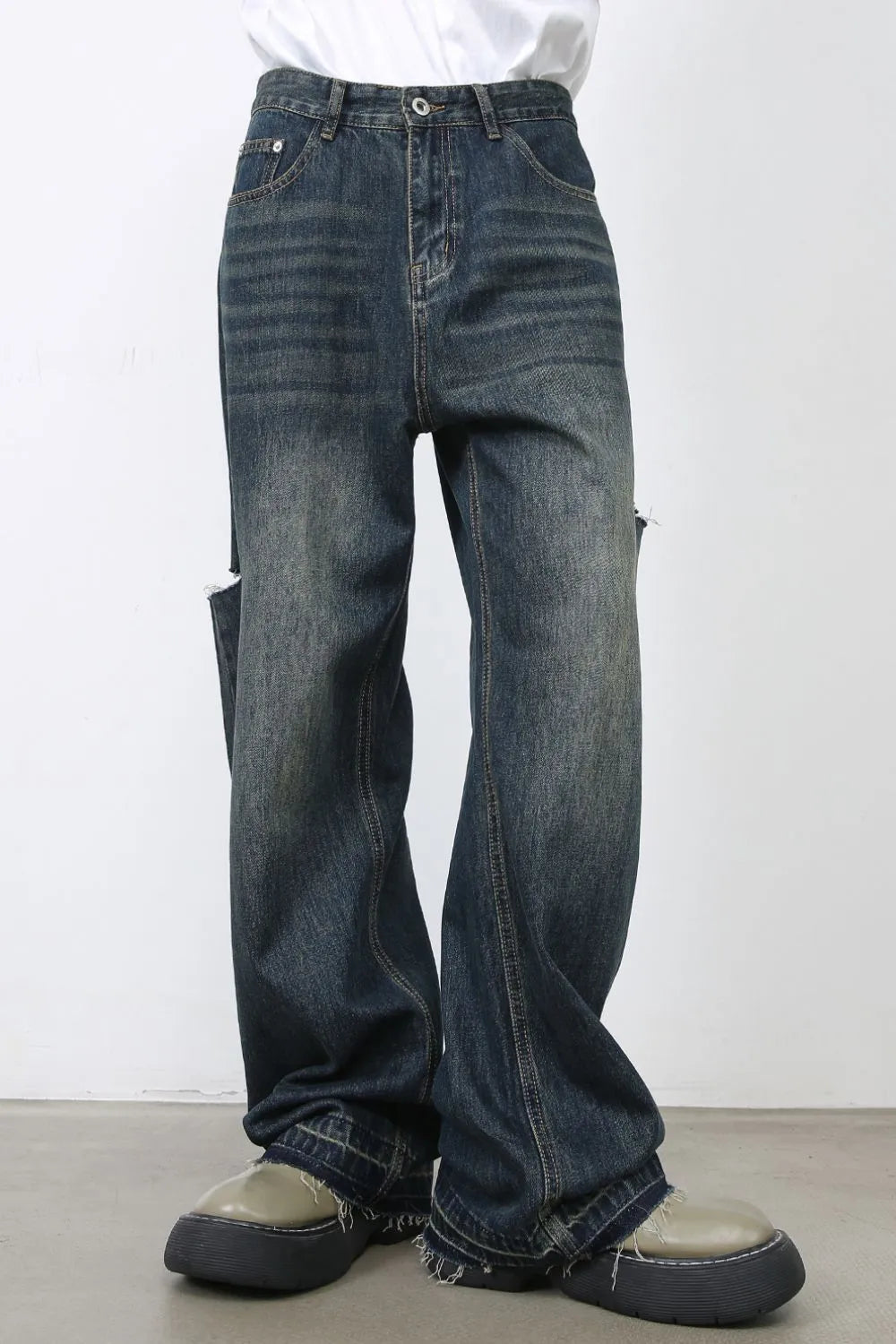 Mens Raw Hem Distressed Jeans with Pockets Modern Fit Casual Everyday Wear Durable Quality Cotton Blend Classic Denim
