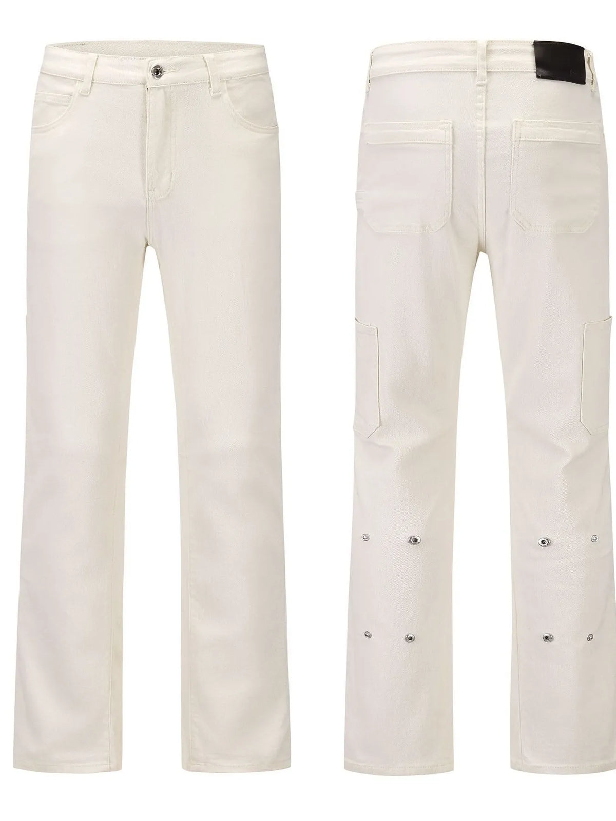 Mens Slim Straight Jeans with Snap Detail and Studded Pockets Durable Denim for Casual Everyday Classic Fit Versatile