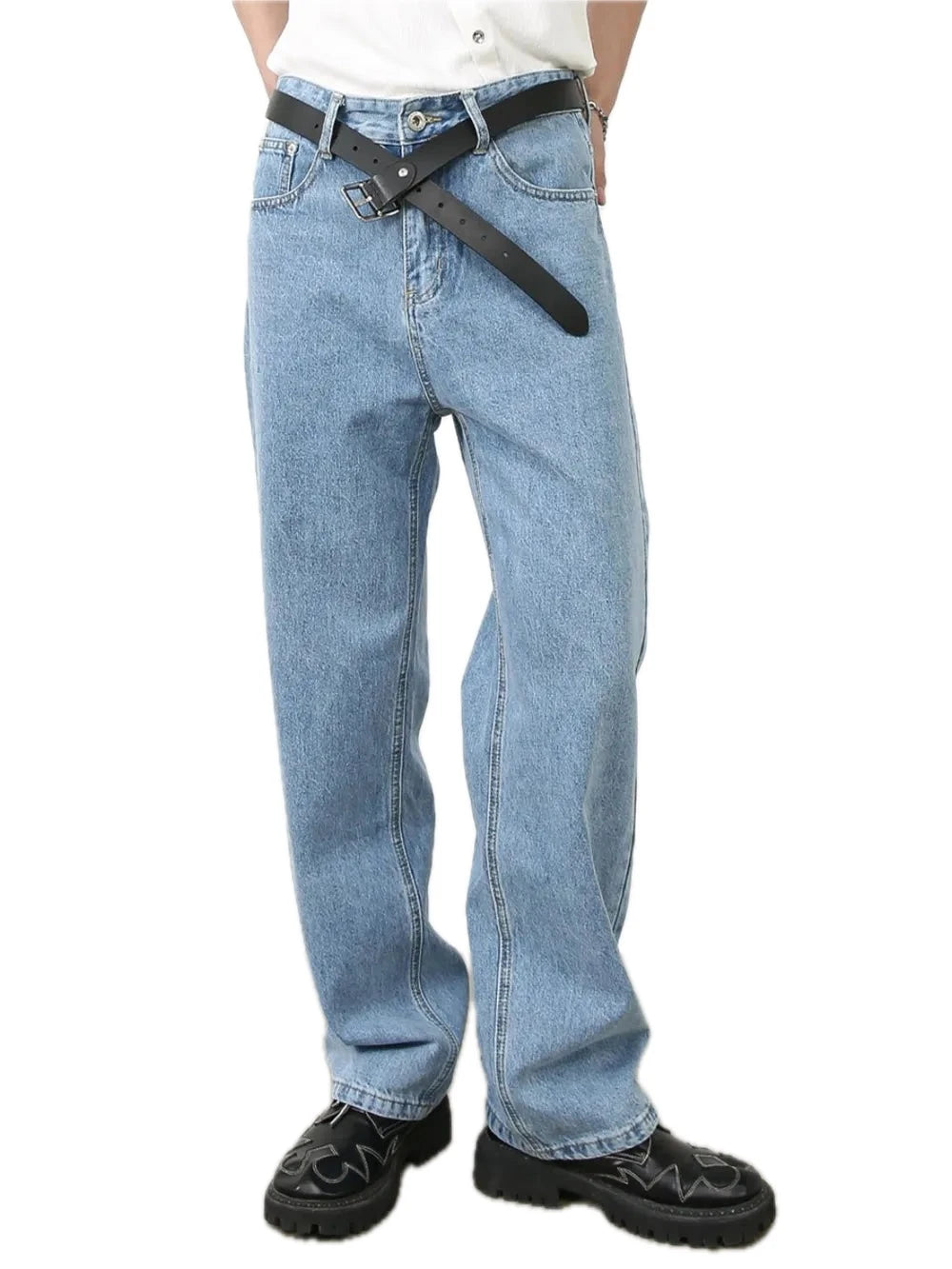 Mens Straight Leg Jeans With Pockets Classic Fit Durable Denim Casual Trousers For Everyday Wear All Day Comfort