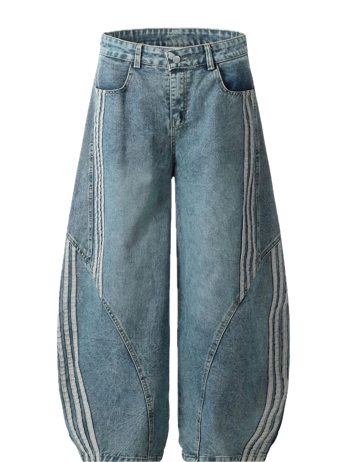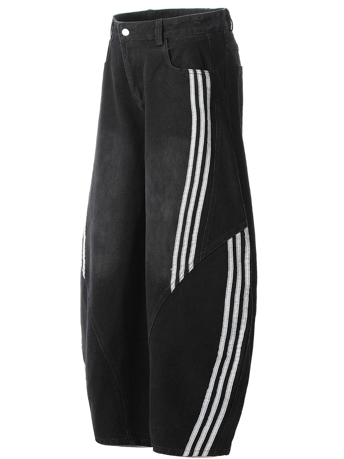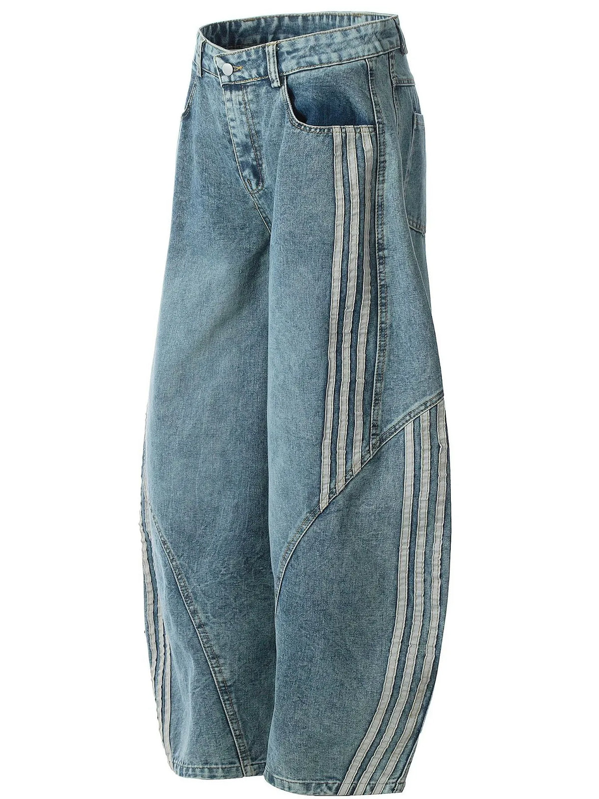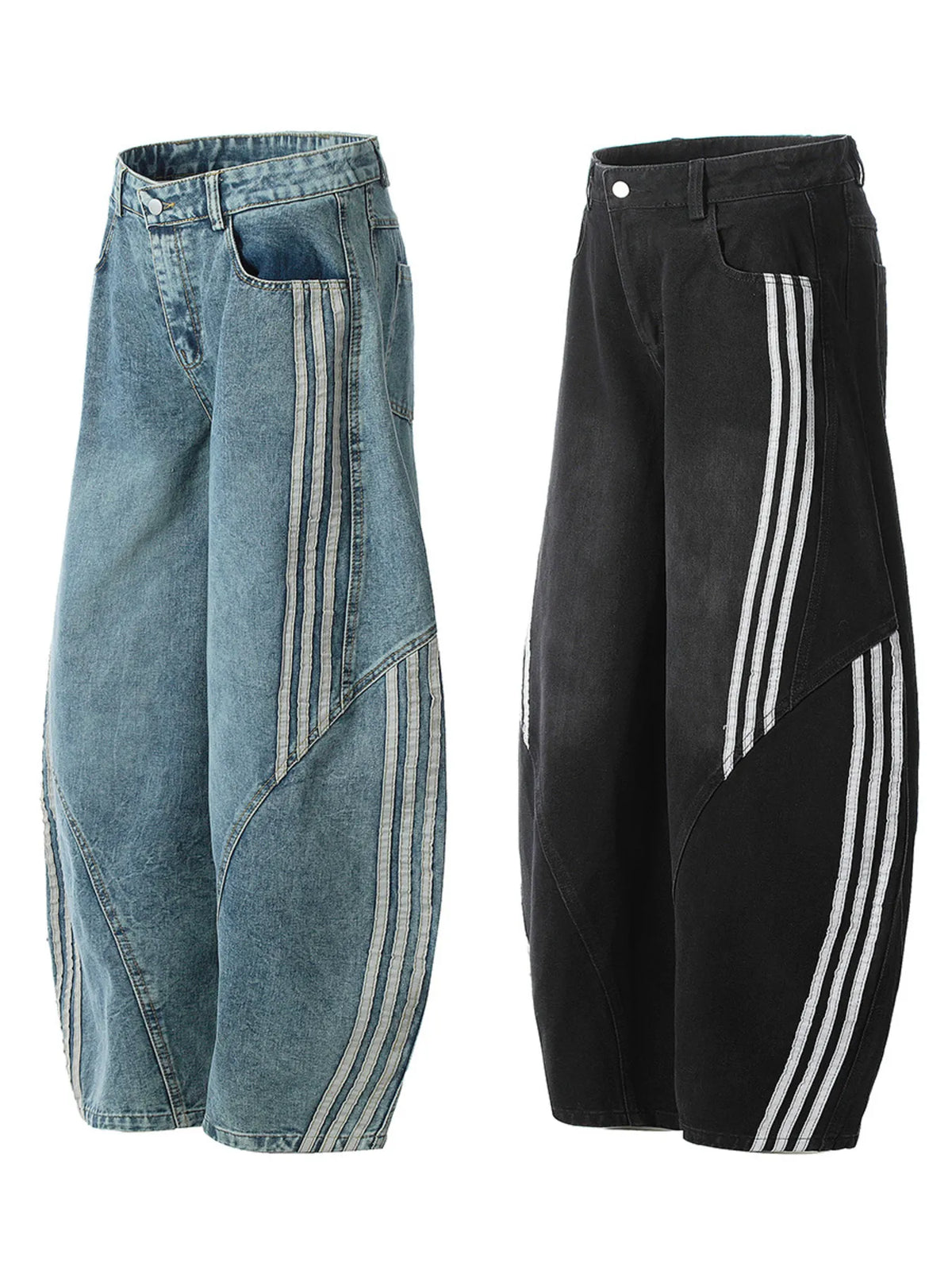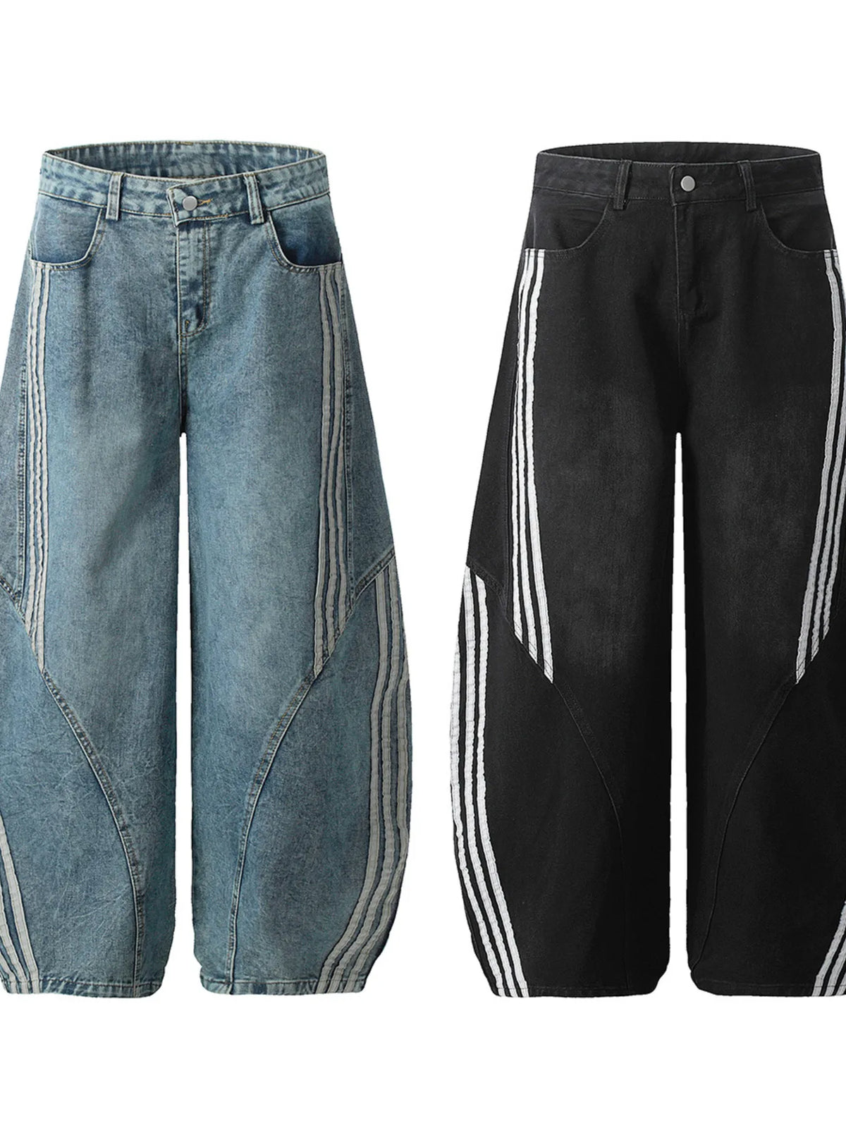 Mens Stripe Wide Leg Jeans Loose Fit Pocketed Casual Denim Pants Oversized Style for Modern Streetwear Everyday Wear