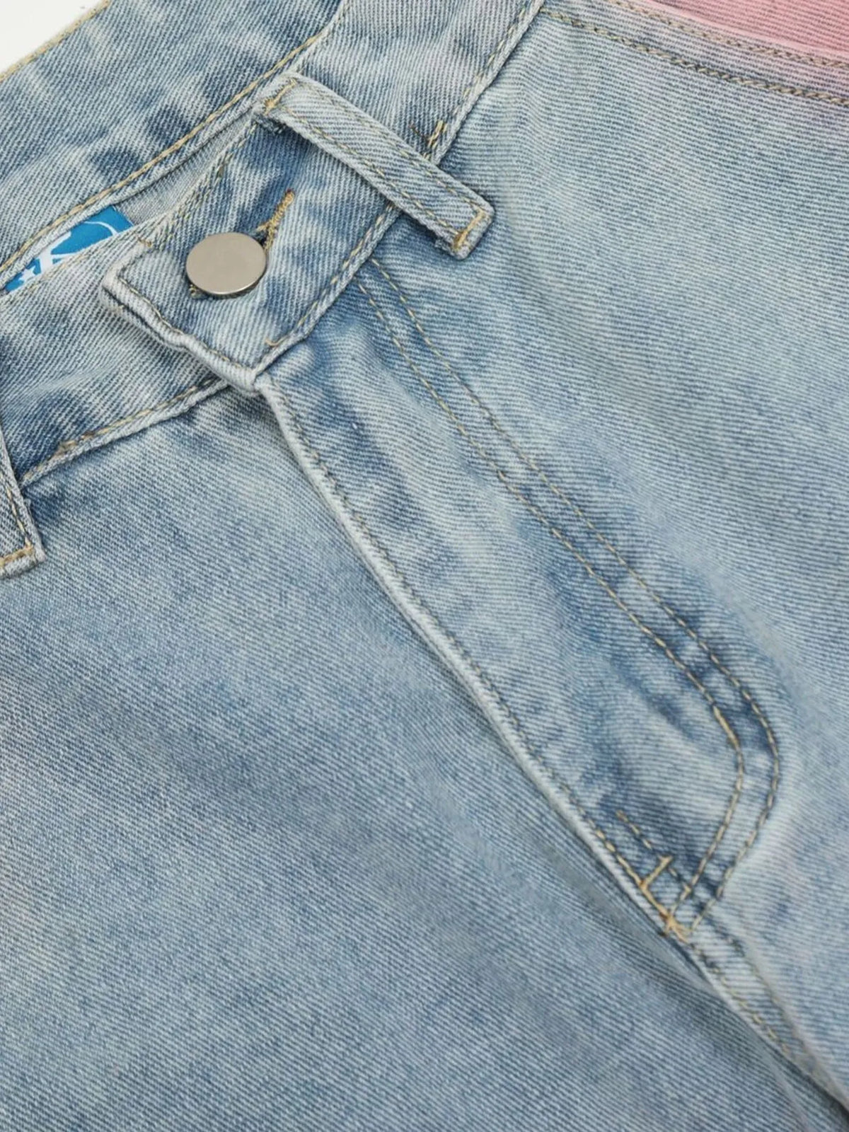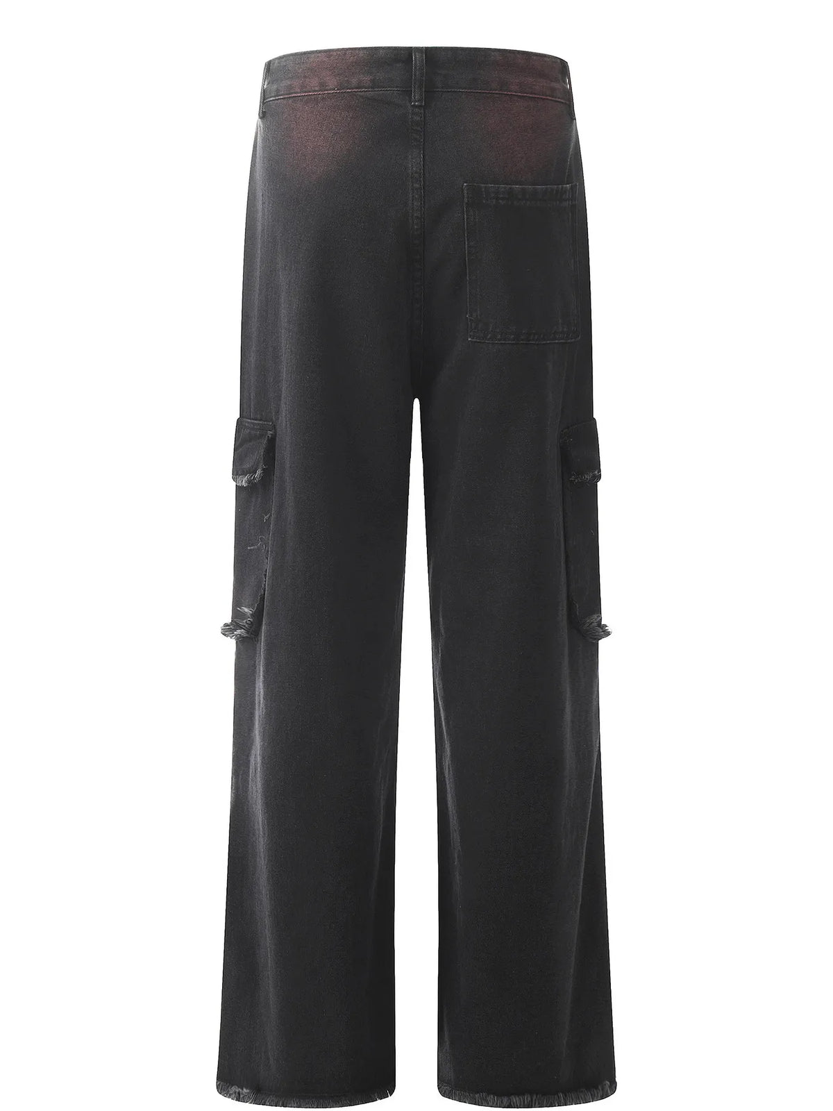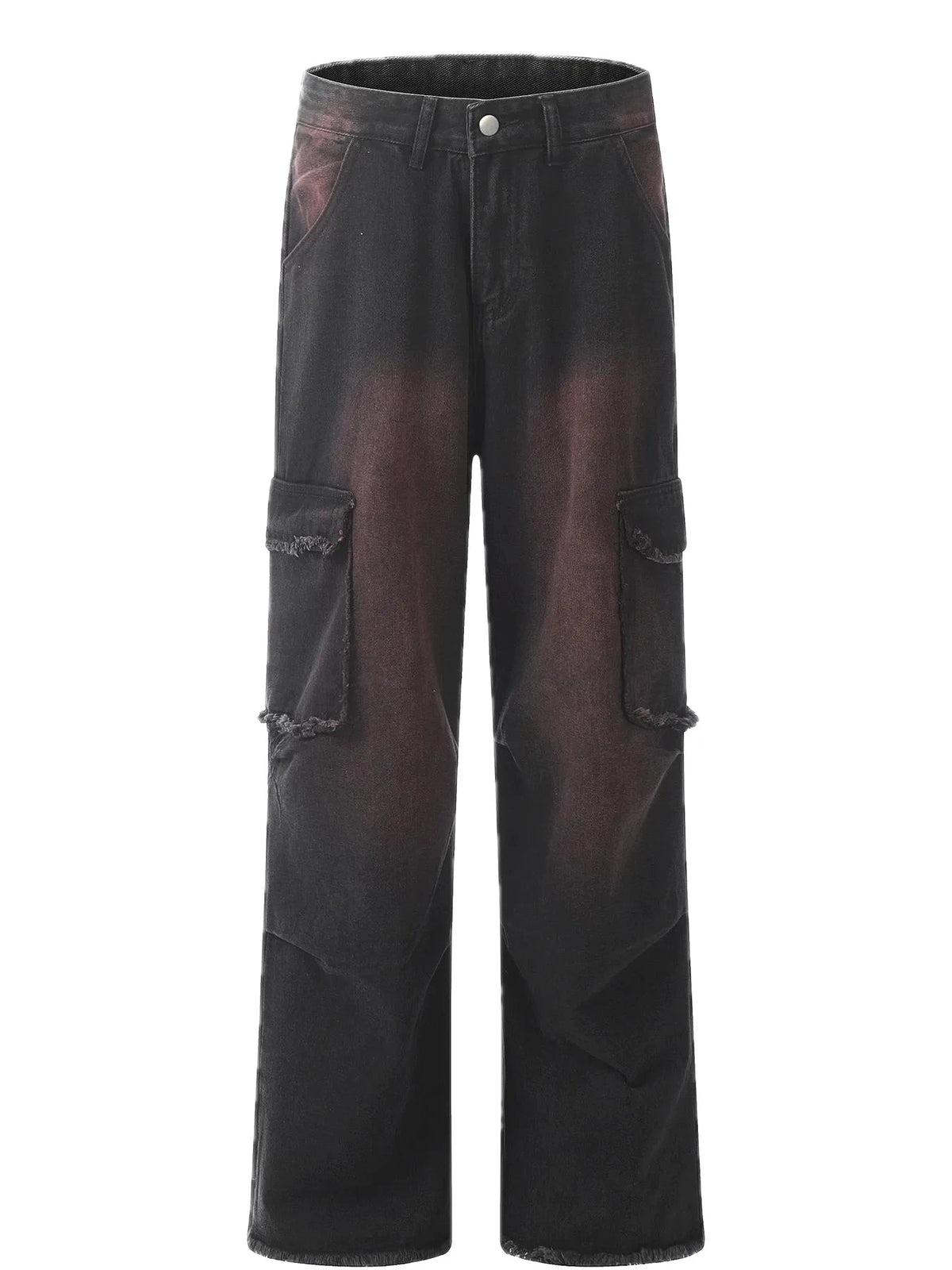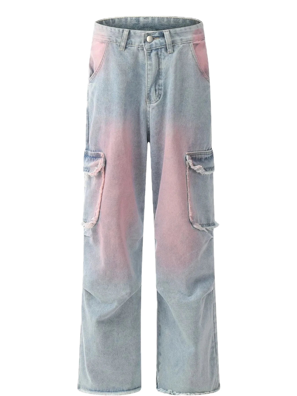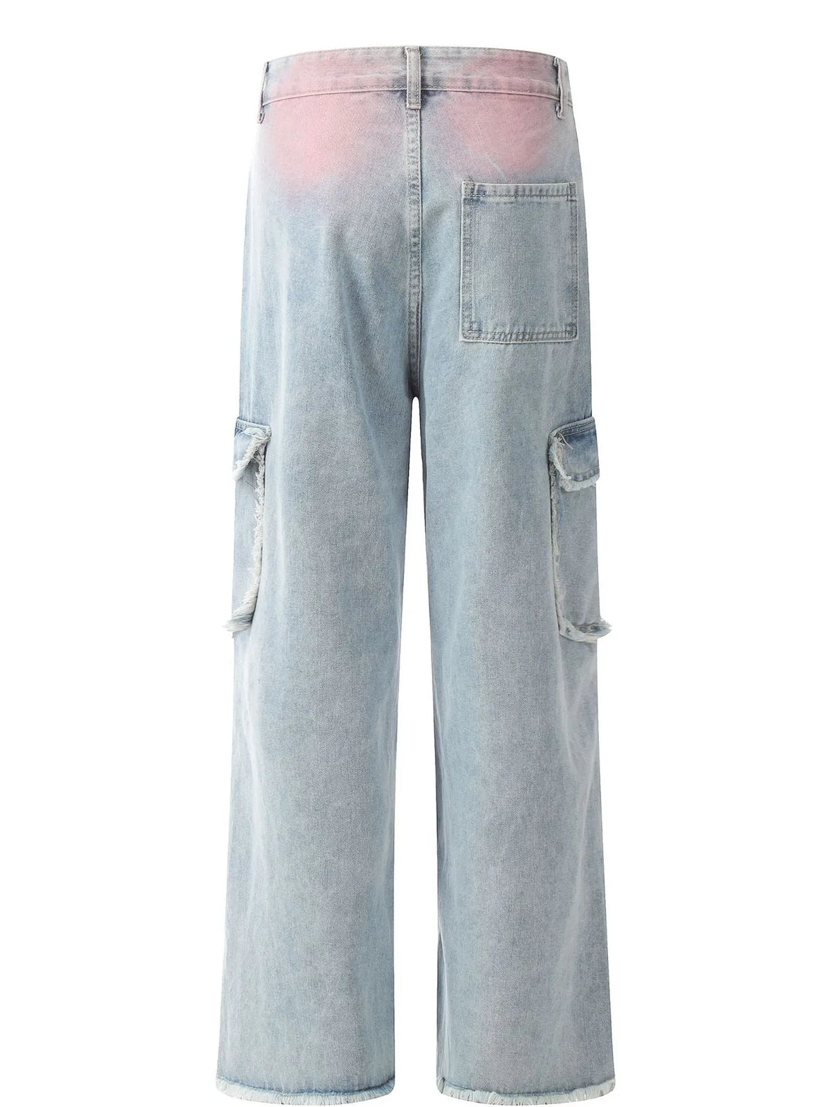 Mens Tie Dye Cargo Denim Jeans with Pockets Washed Slightly Stretchy Durable Versatile Casual Modern Streetwear Pants