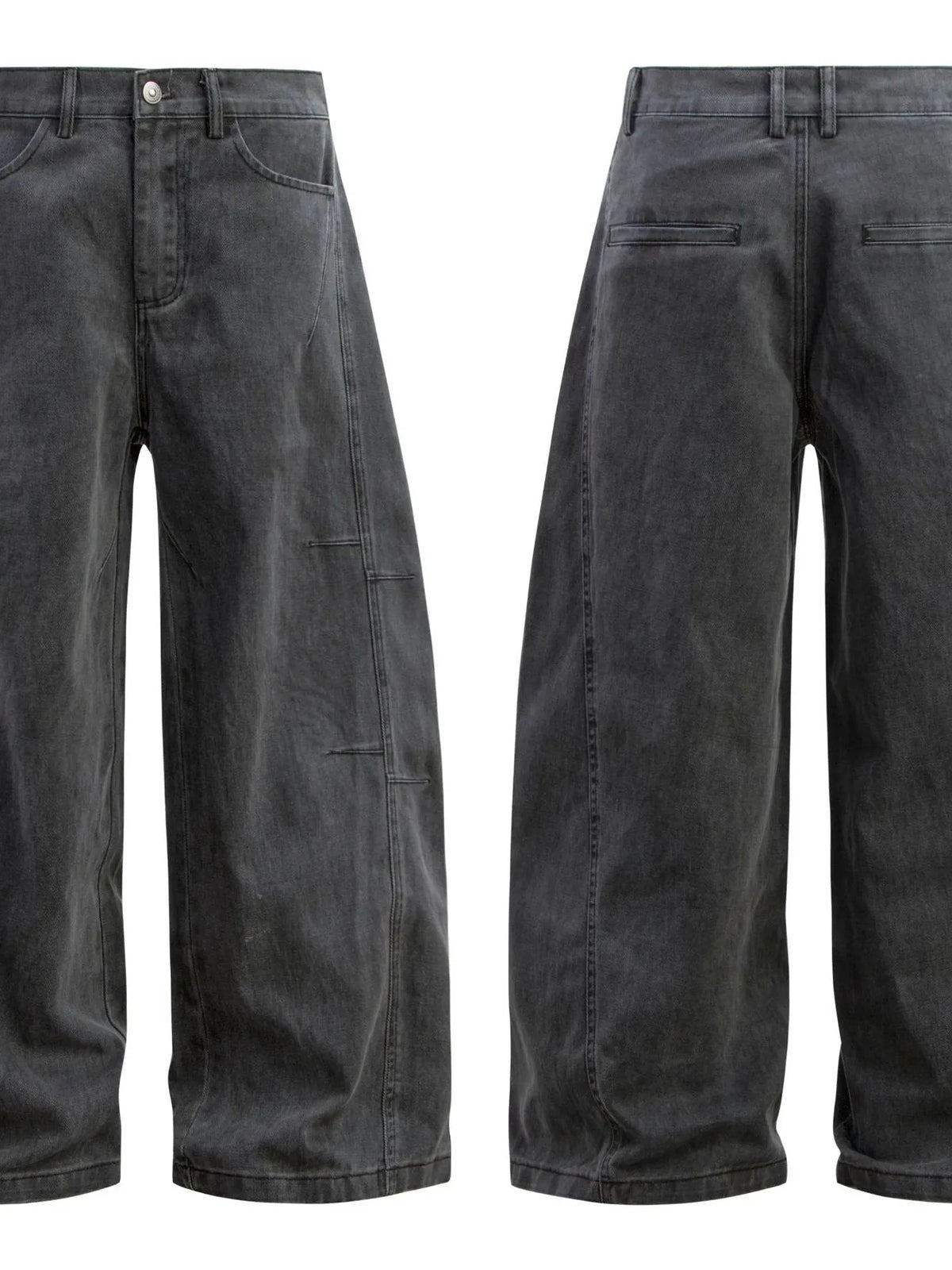Men Cargo Jeans Vintage Curved Pocketed Durable Cotton Casual Everyday Outdoor Rugged Trousers for Everyday Use