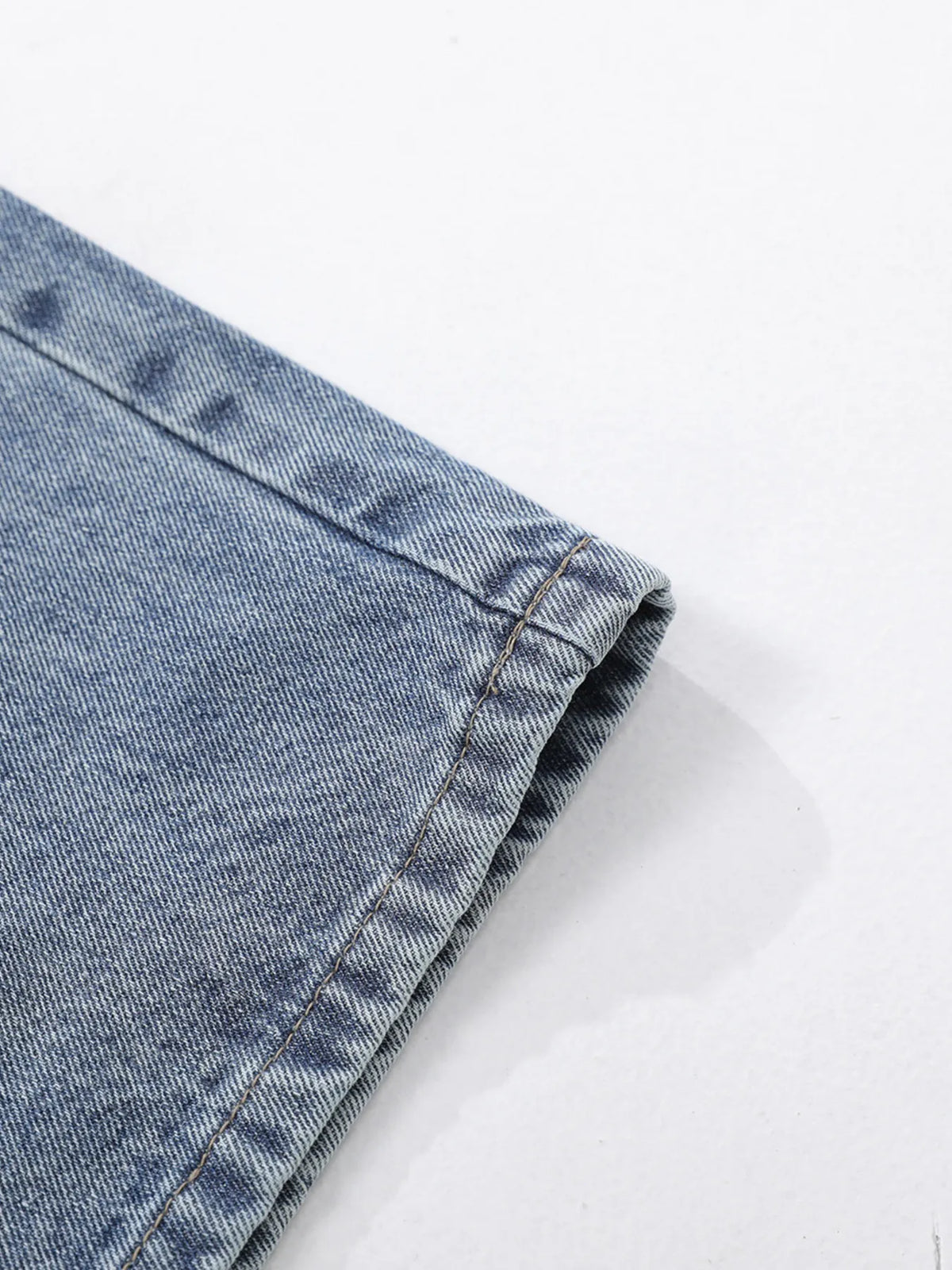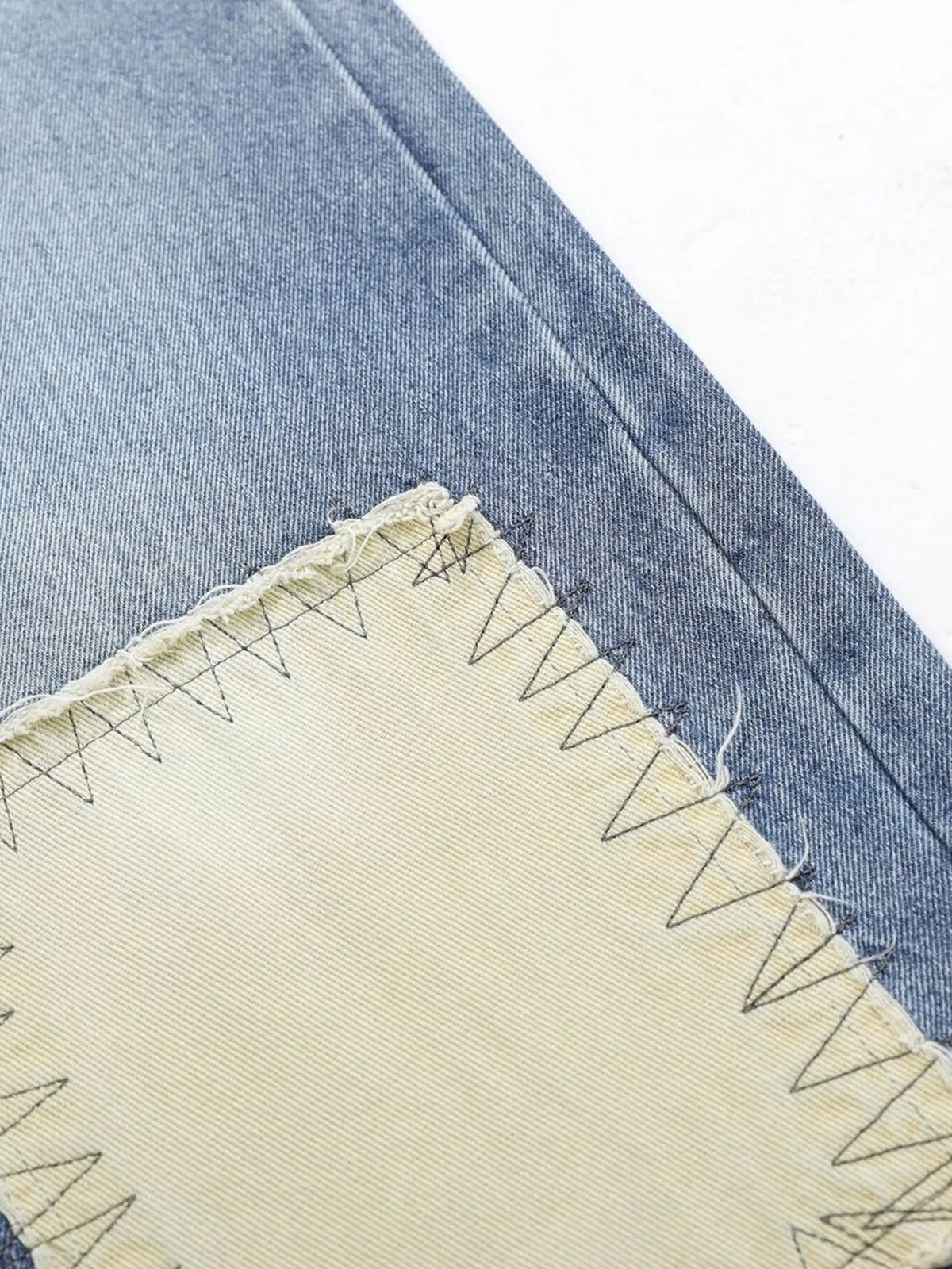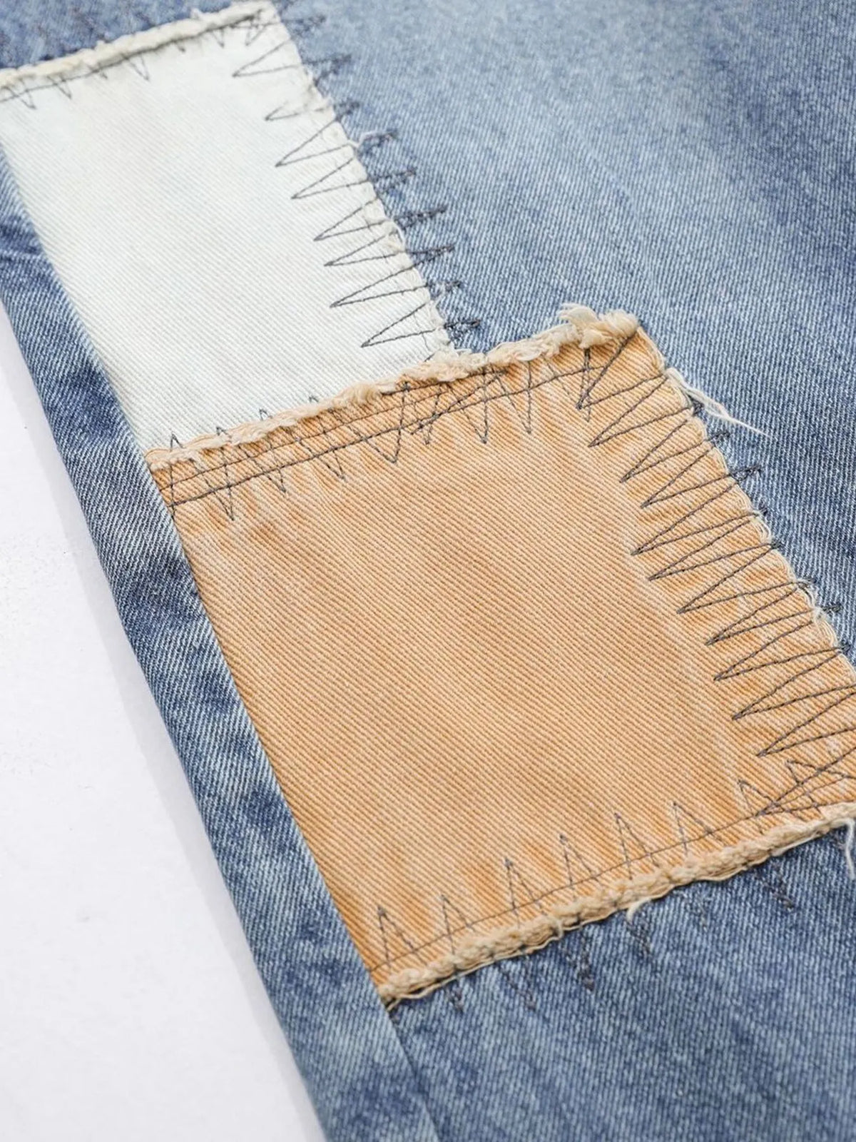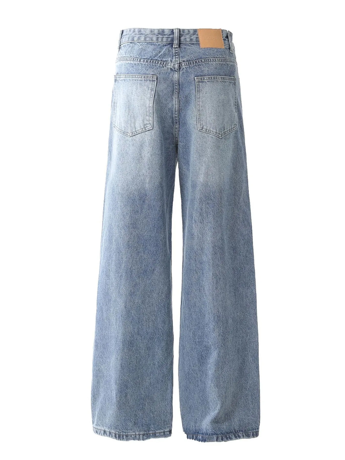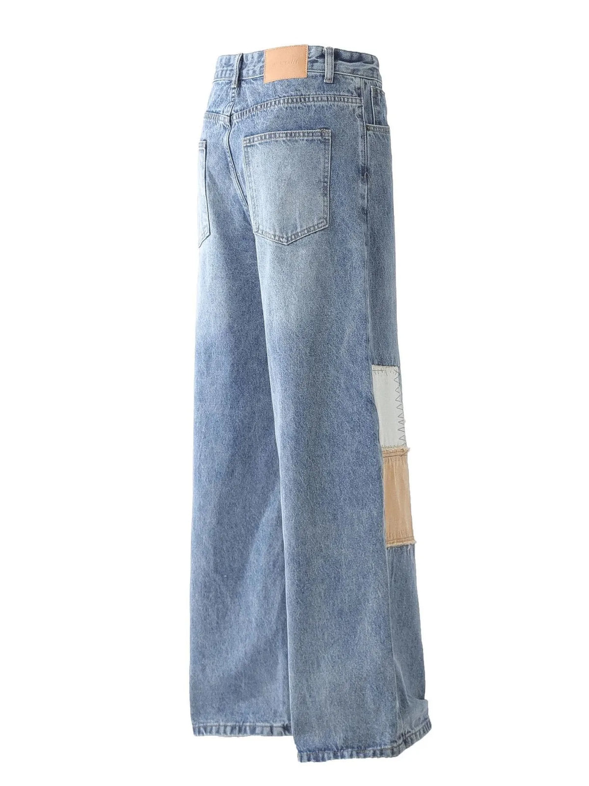 Mens Vintage Patchwork Wide Leg Jeans Pocketed Washed Loose Fit Durable Denim Pants for Casual Daily Streetwear