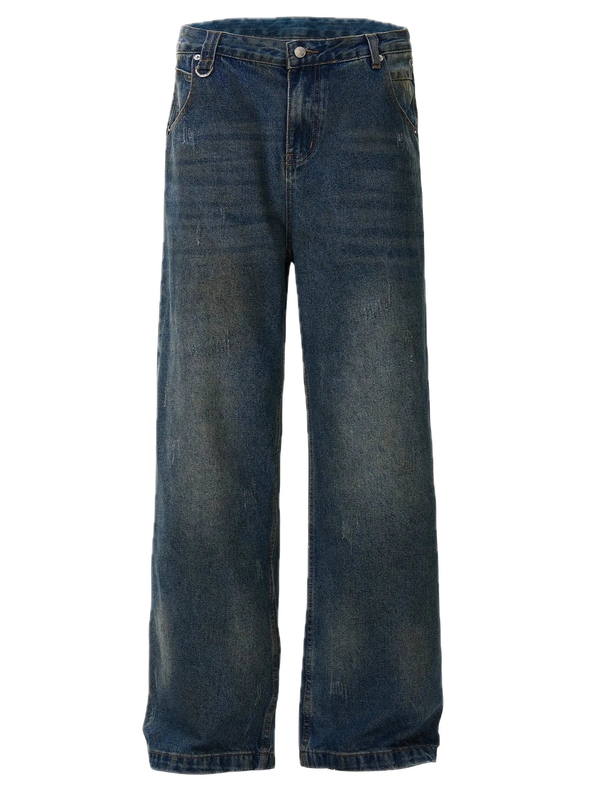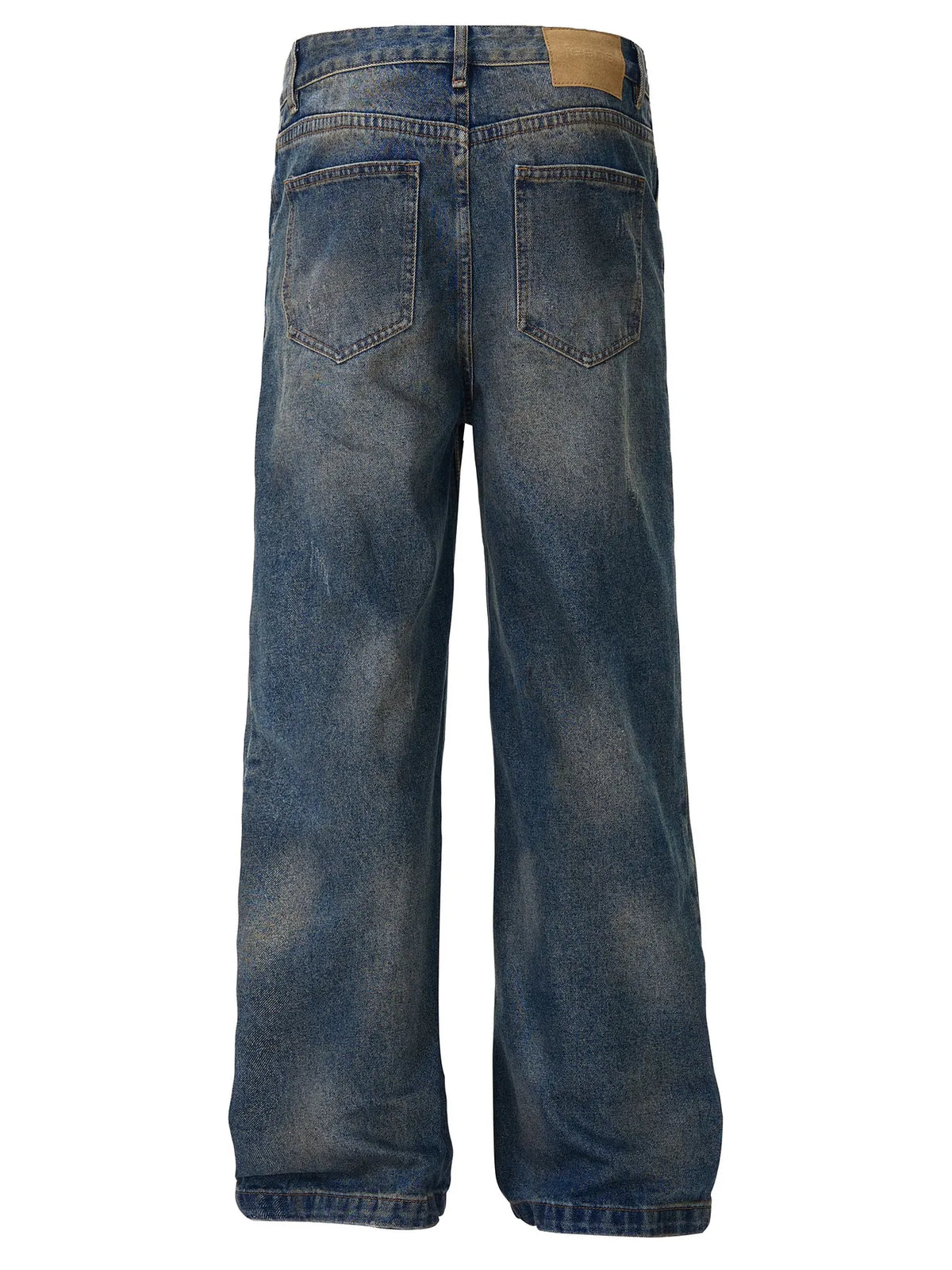 Mens Wide Leg Relaxed Fit Jeans Vintage Washed Cotton Denim Pocketed Durable Everyday Wear Versatile Classic Design