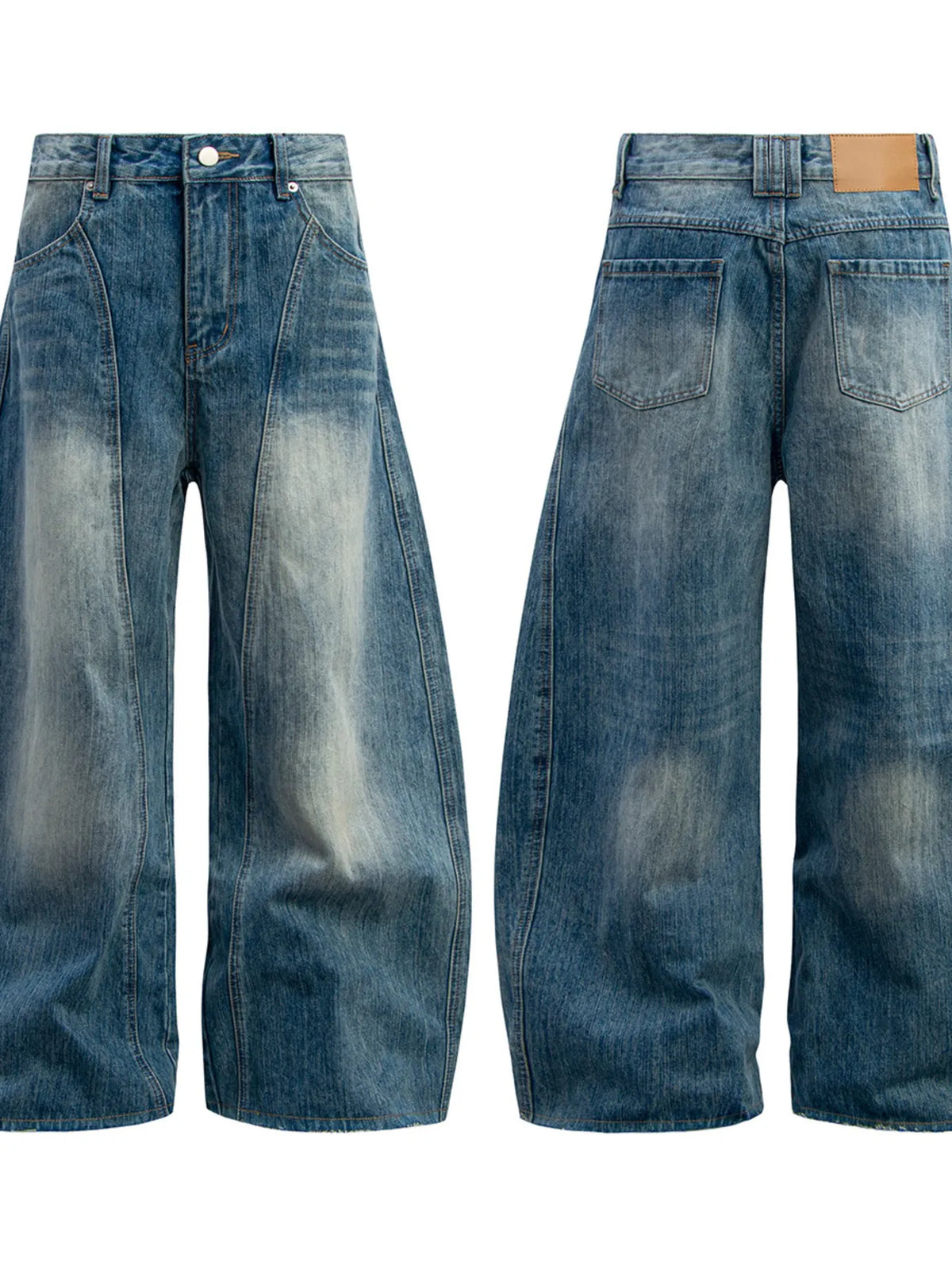 Mens Vintage Curved Jeans with Pockets Casual Fit Durable Denim Pants for Everyday Wear Slightly Stretchy Comfort