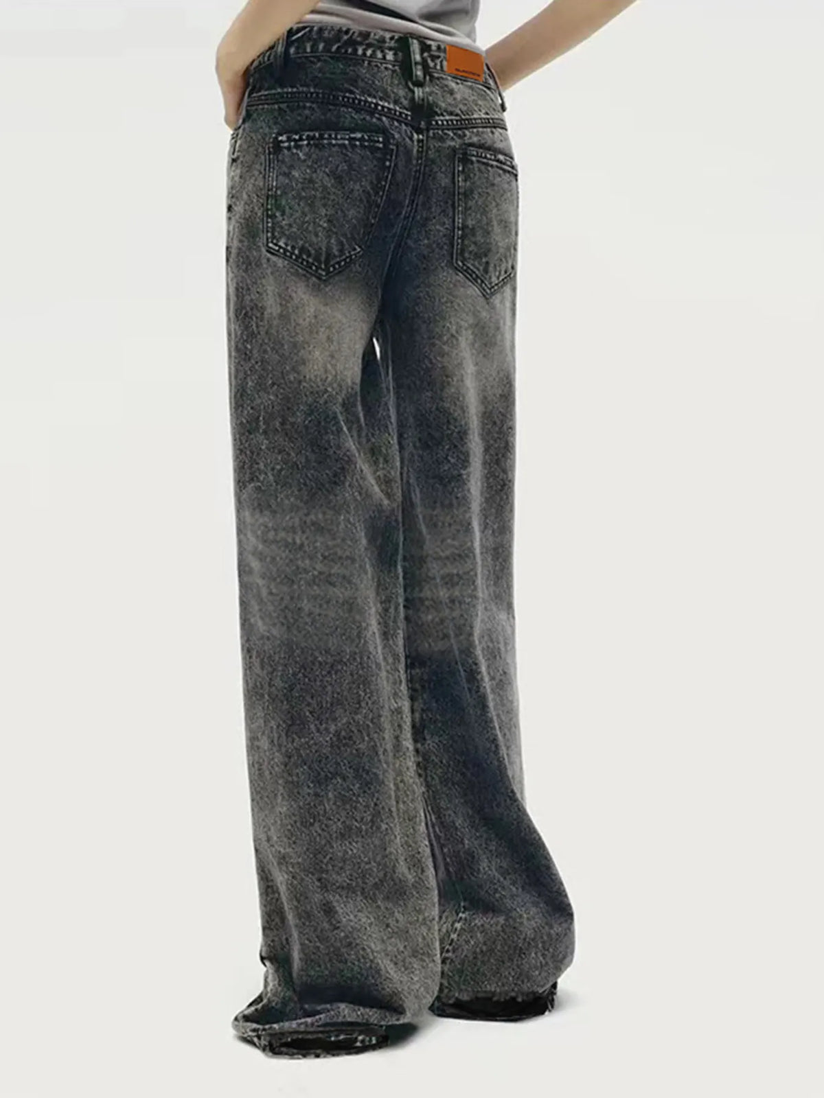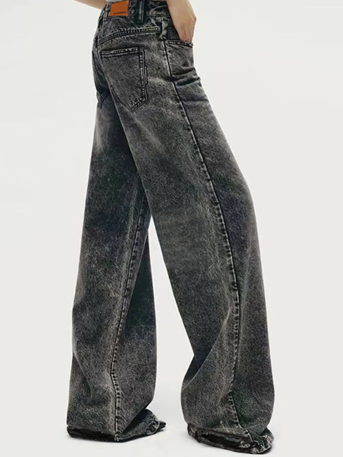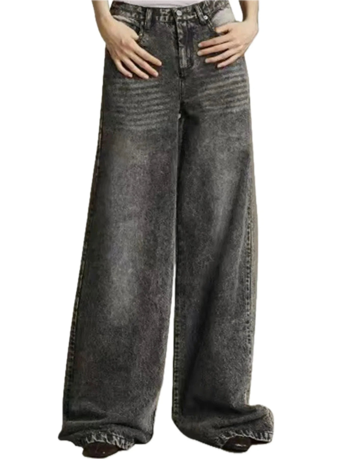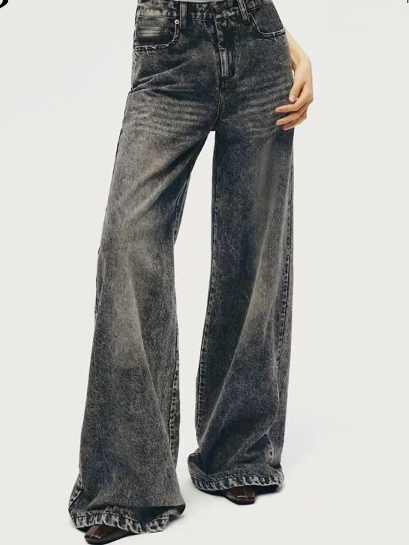 Mens Vintage Wide Leg Jeans Washed Denim Casual Relaxed Fit Everyday Trousers Durable Construction Versatile Style