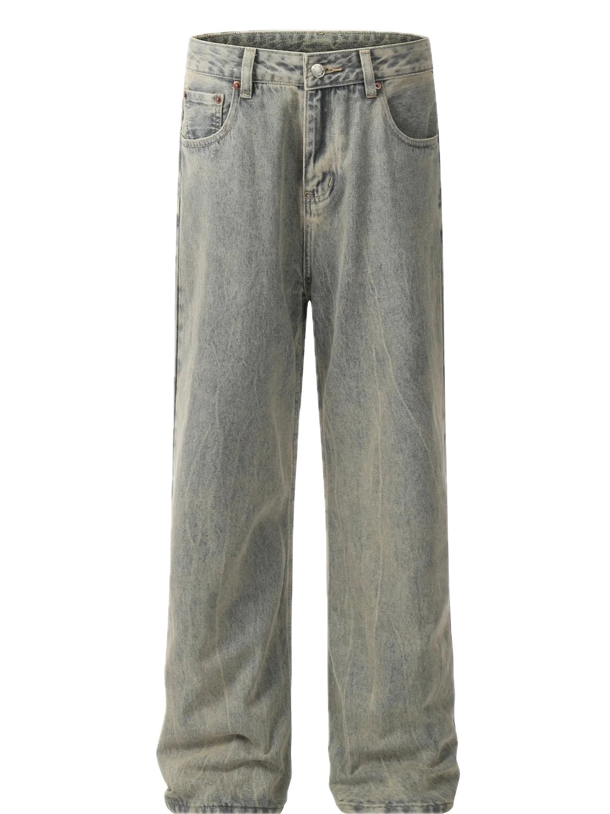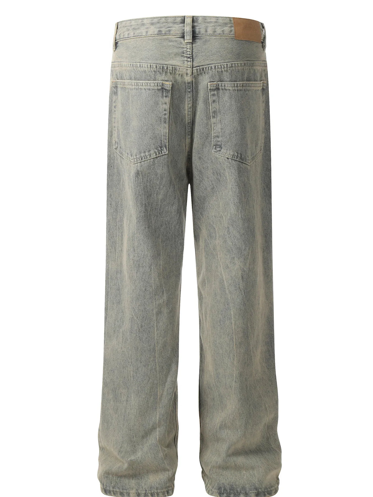 Men Relaxed Fit Washed Jeans with Stretch Denim Casual Pants Durable Everyday Wear Versatile and Comfortable Essential
