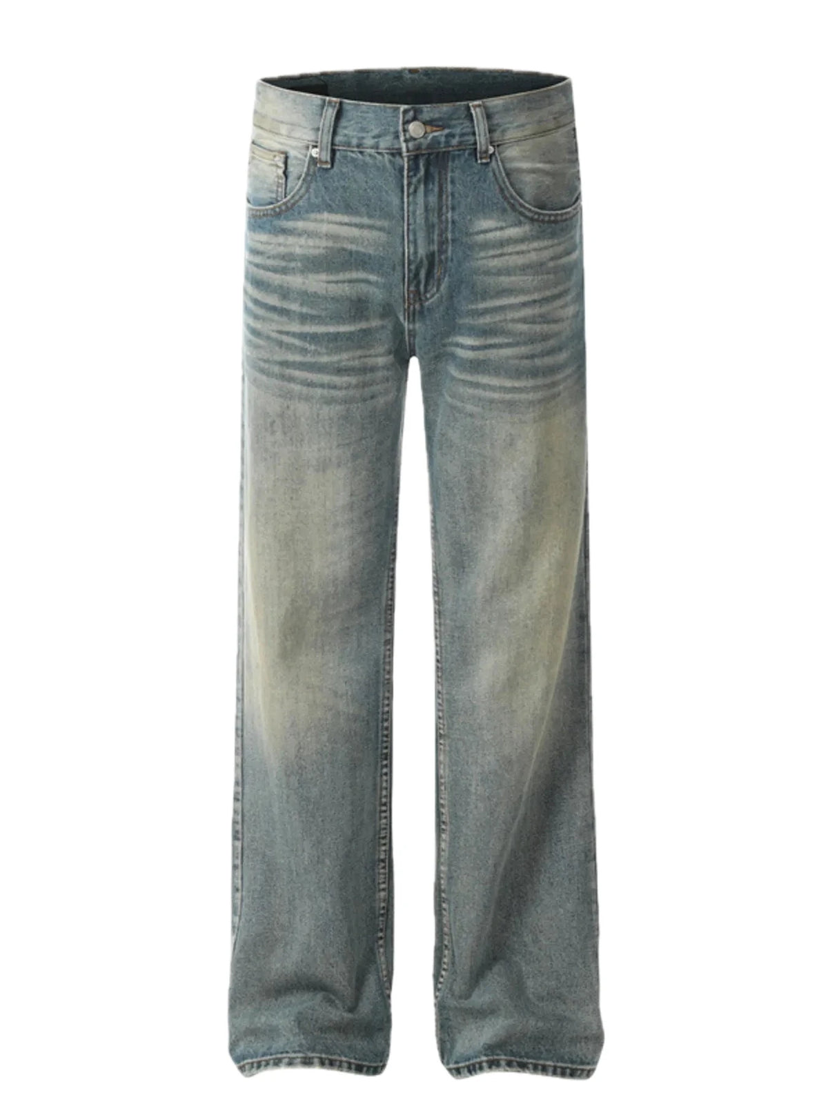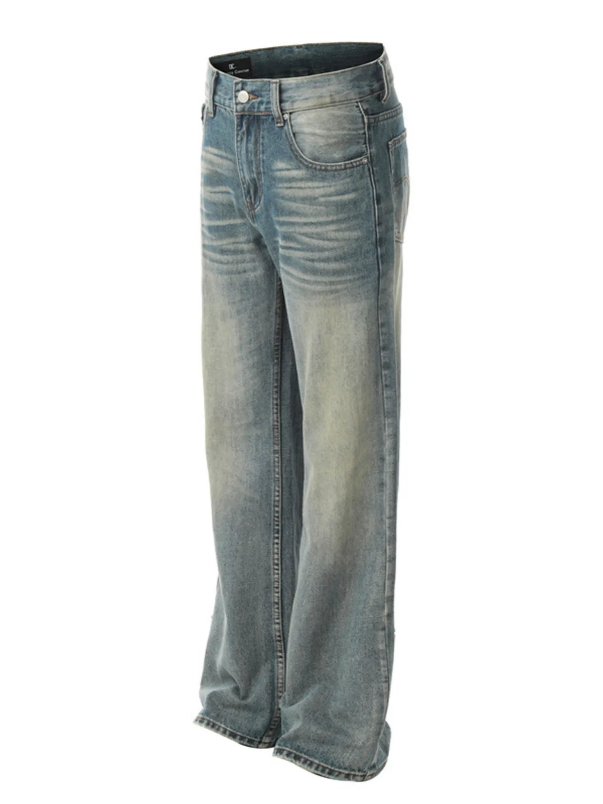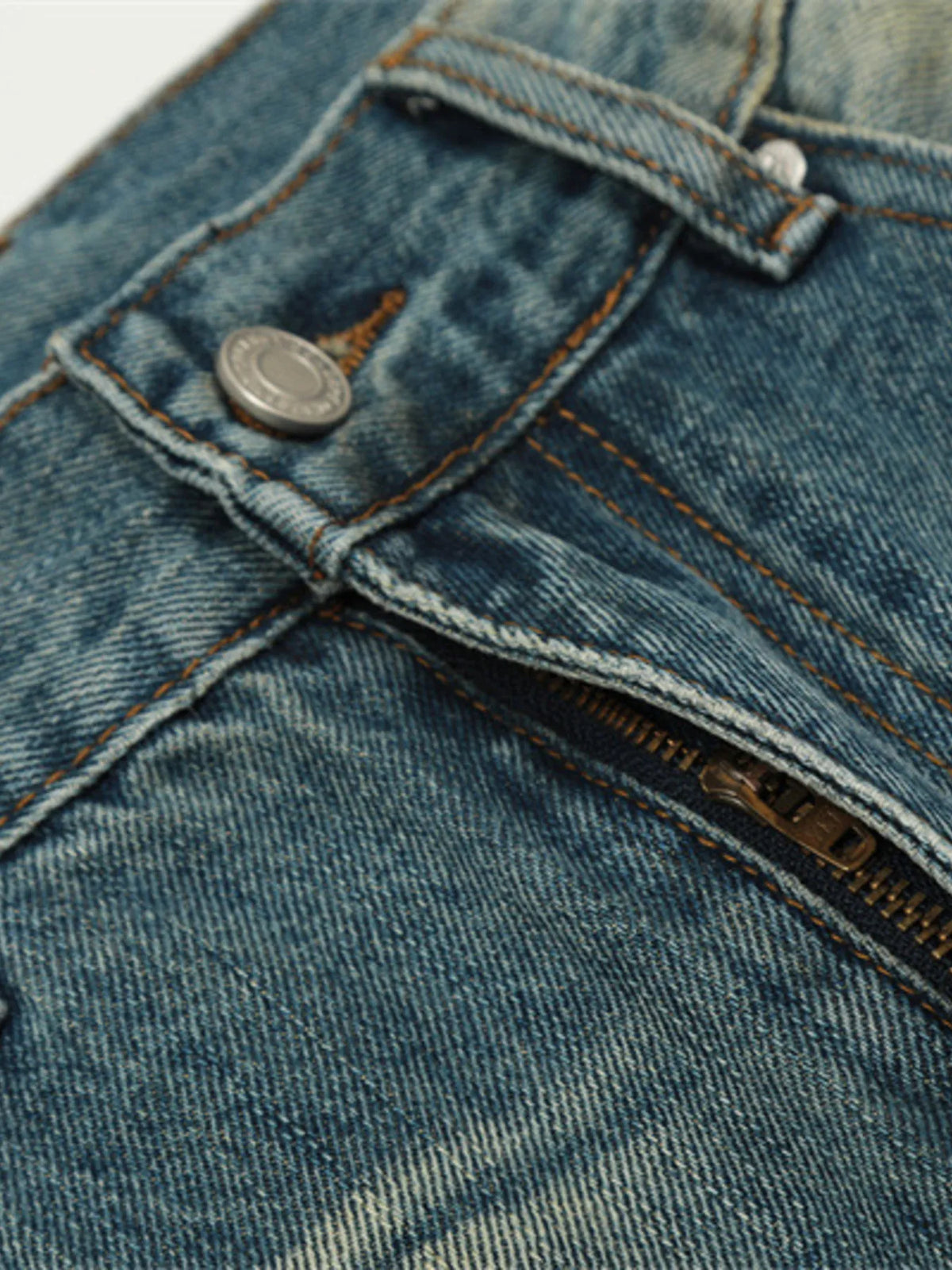 Mens Straight Leg Jeans Washed Whiskered Slightly Stretchy Durable Classic Fit Everyday Casual Denim Pants Versatile