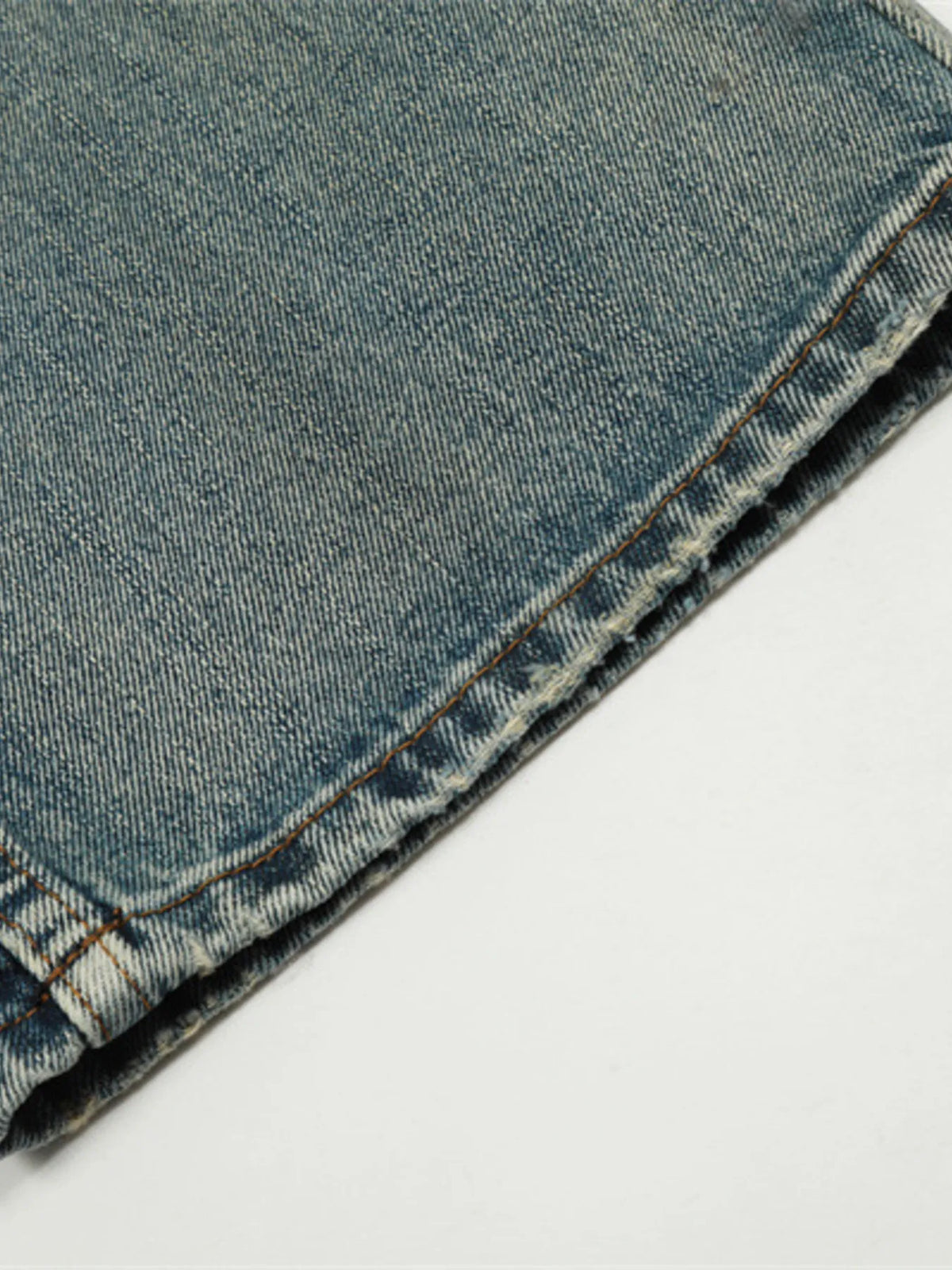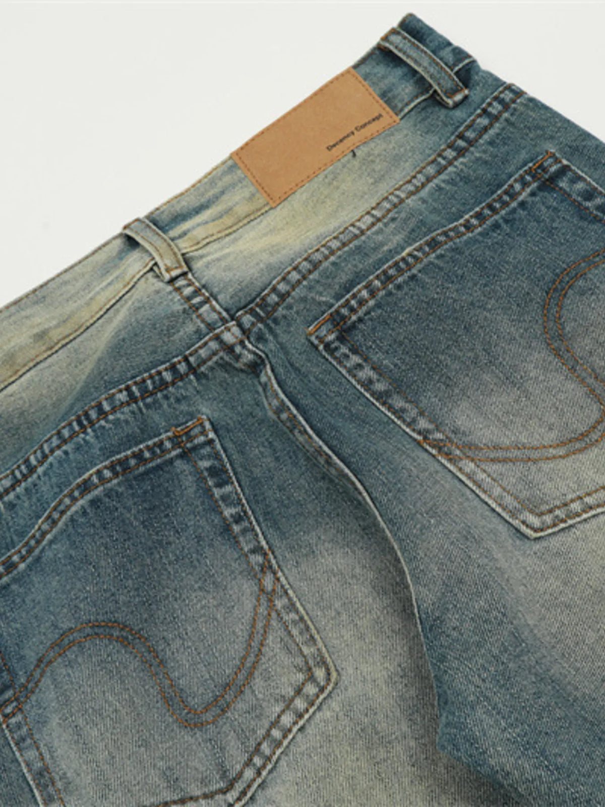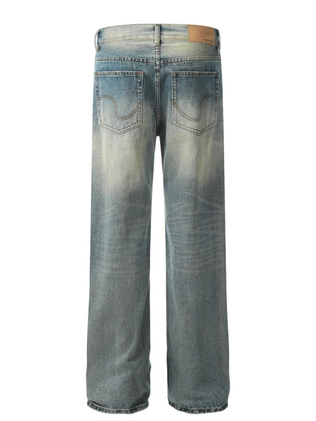 Mens Straight Leg Jeans Washed Whiskered Slightly Stretchy Durable Classic Fit Everyday Casual Denim Pants Versatile