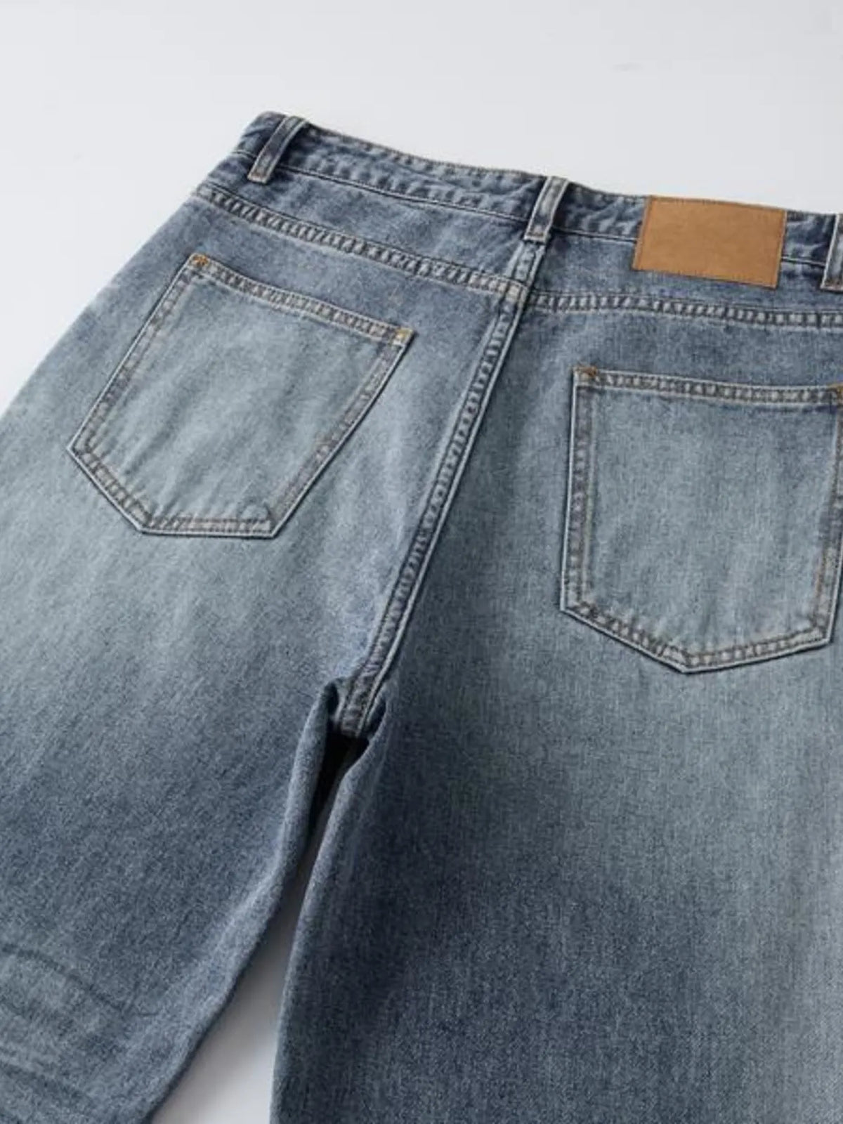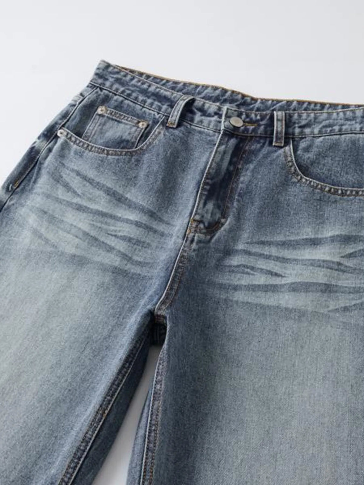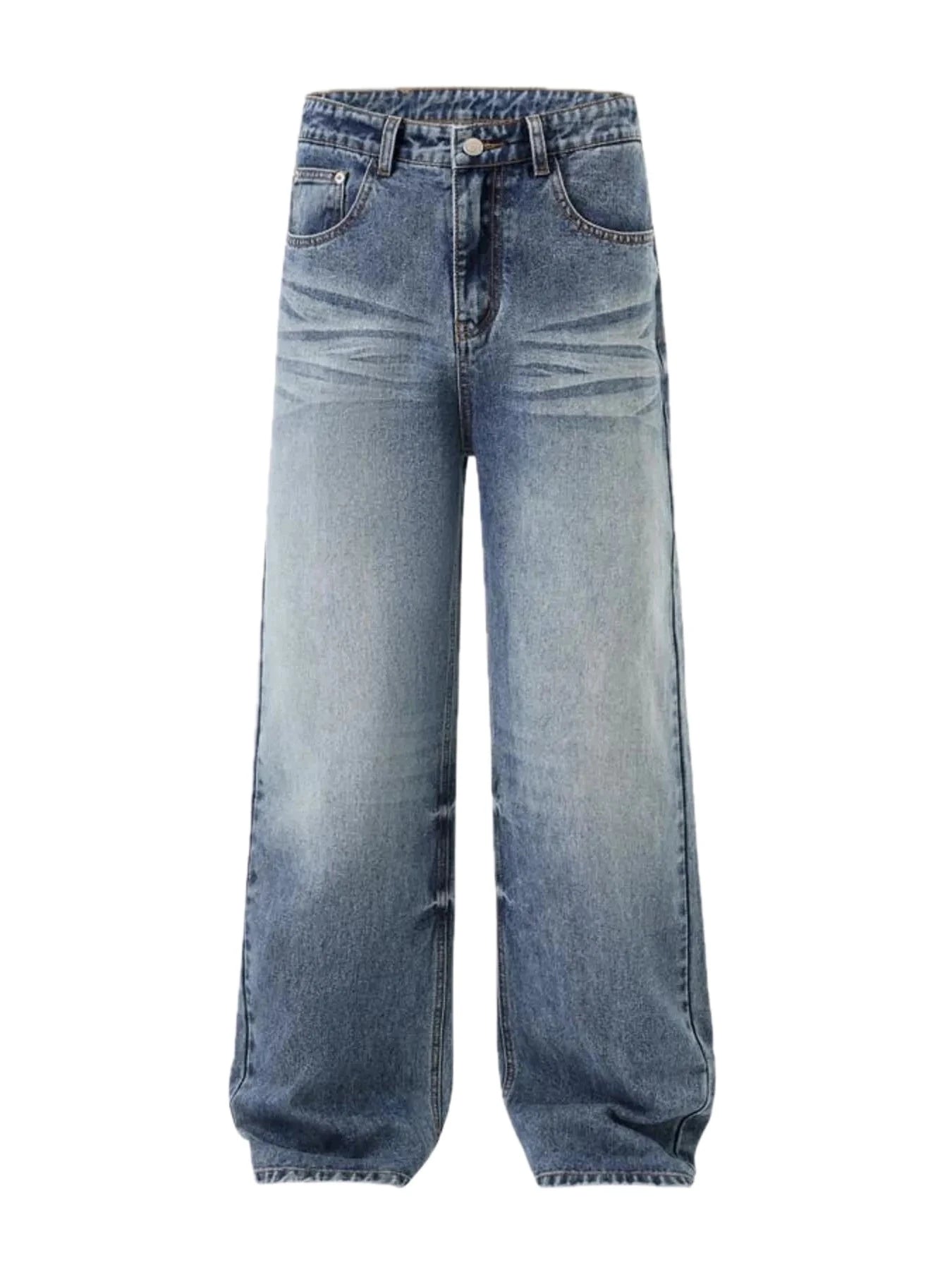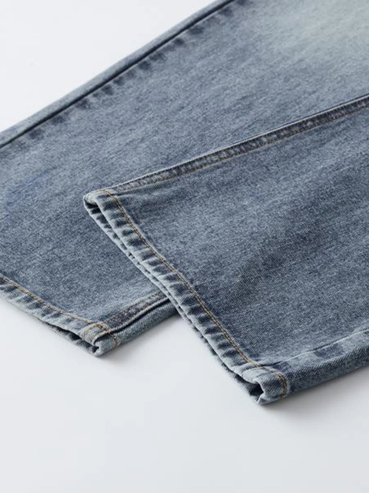 Men Wide Leg High Rise Jeans with Zipper Closure Denim Pants for Casual Wear Everyday Slightly Stretchy Versatile Fit