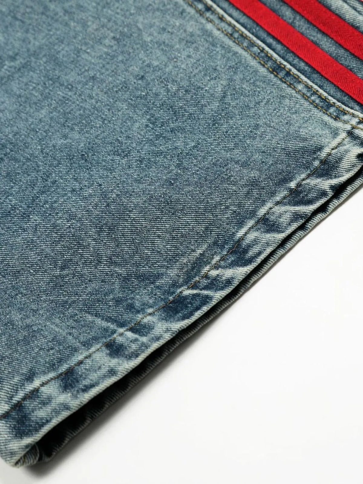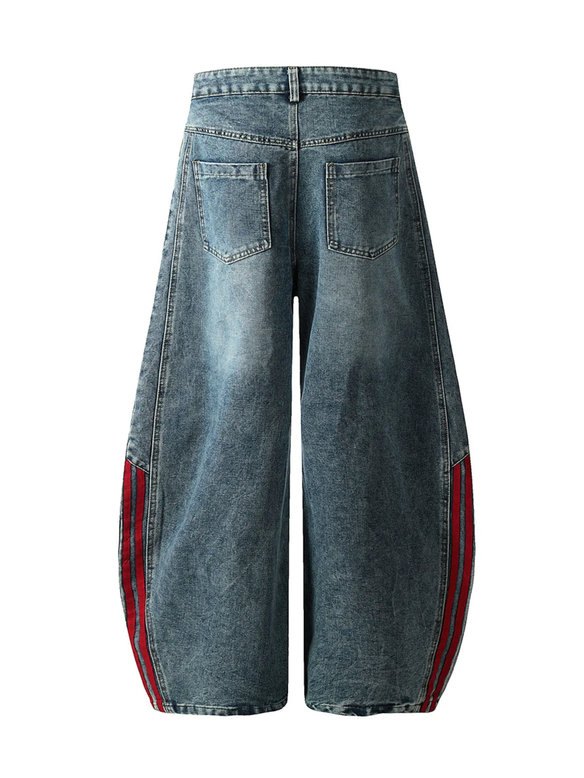 Mens Washed Curved Oversized Rigid Denim Jeans with Side Stripe Detail Durable Everyday Wear Versatile Casual Essential
