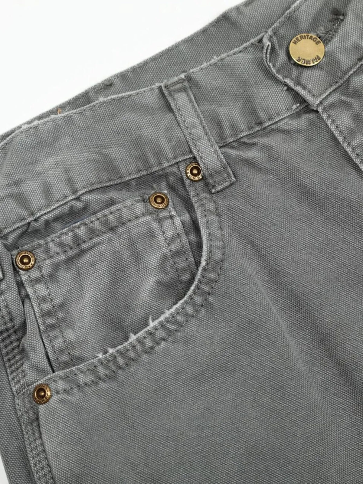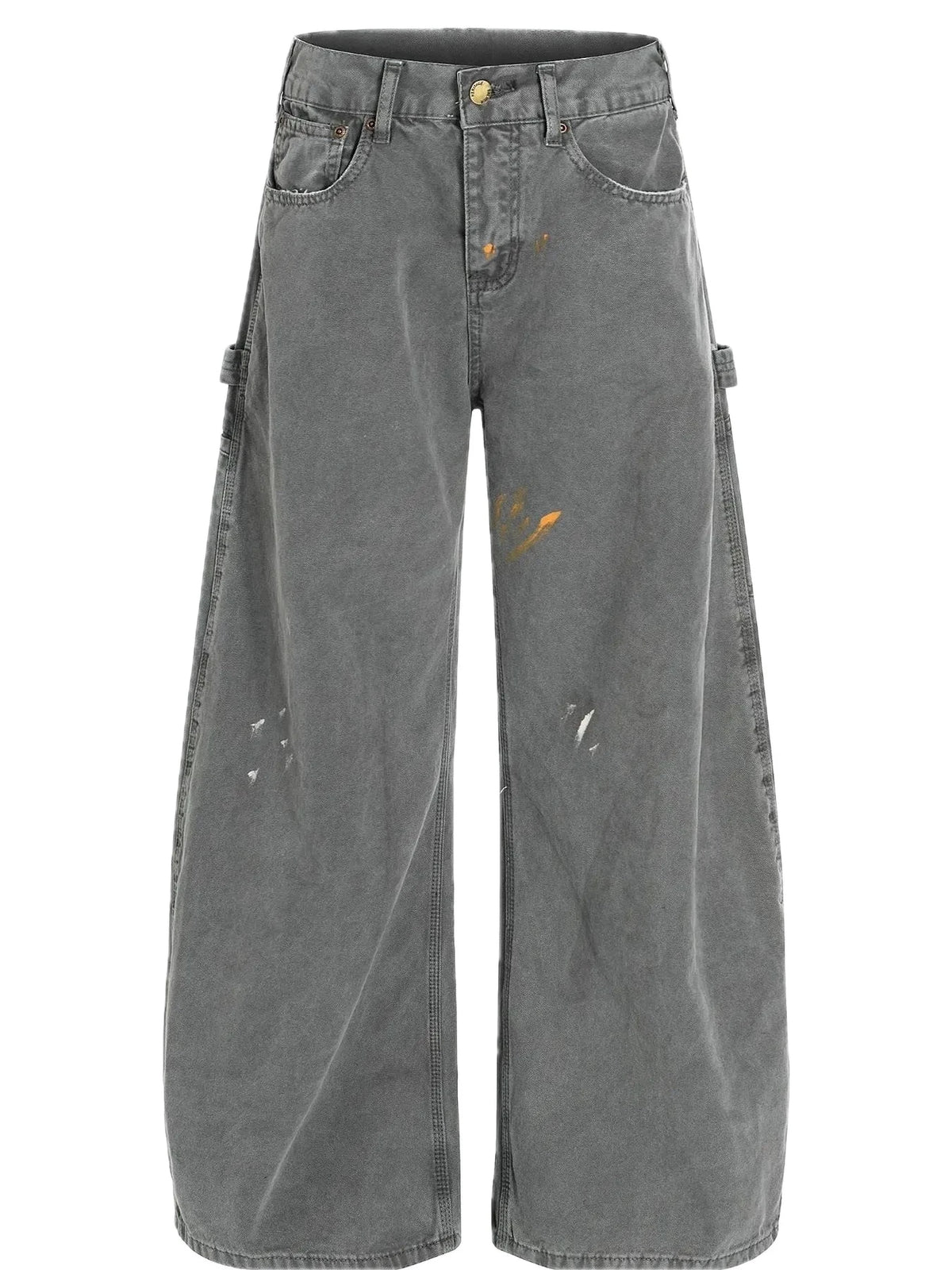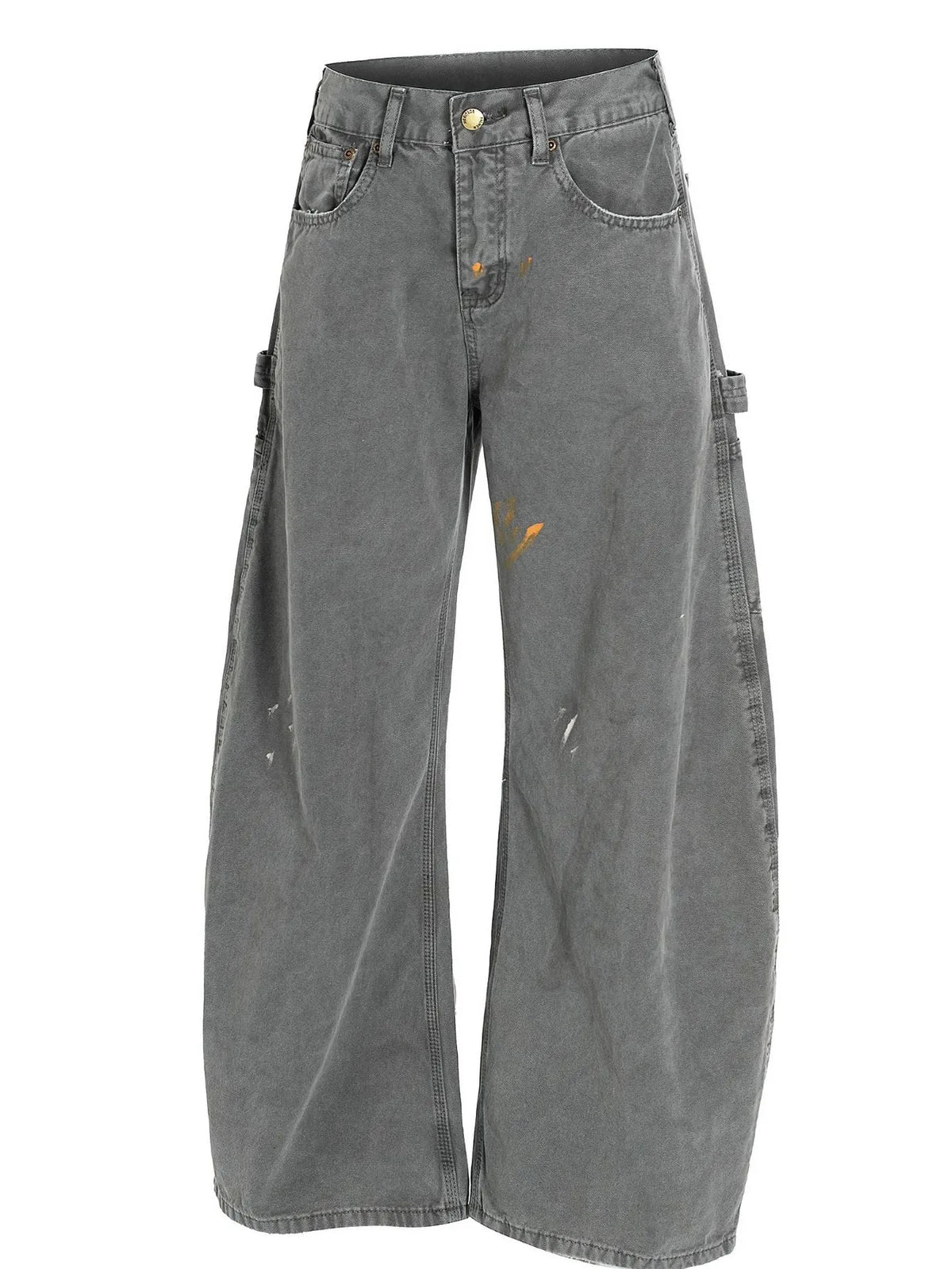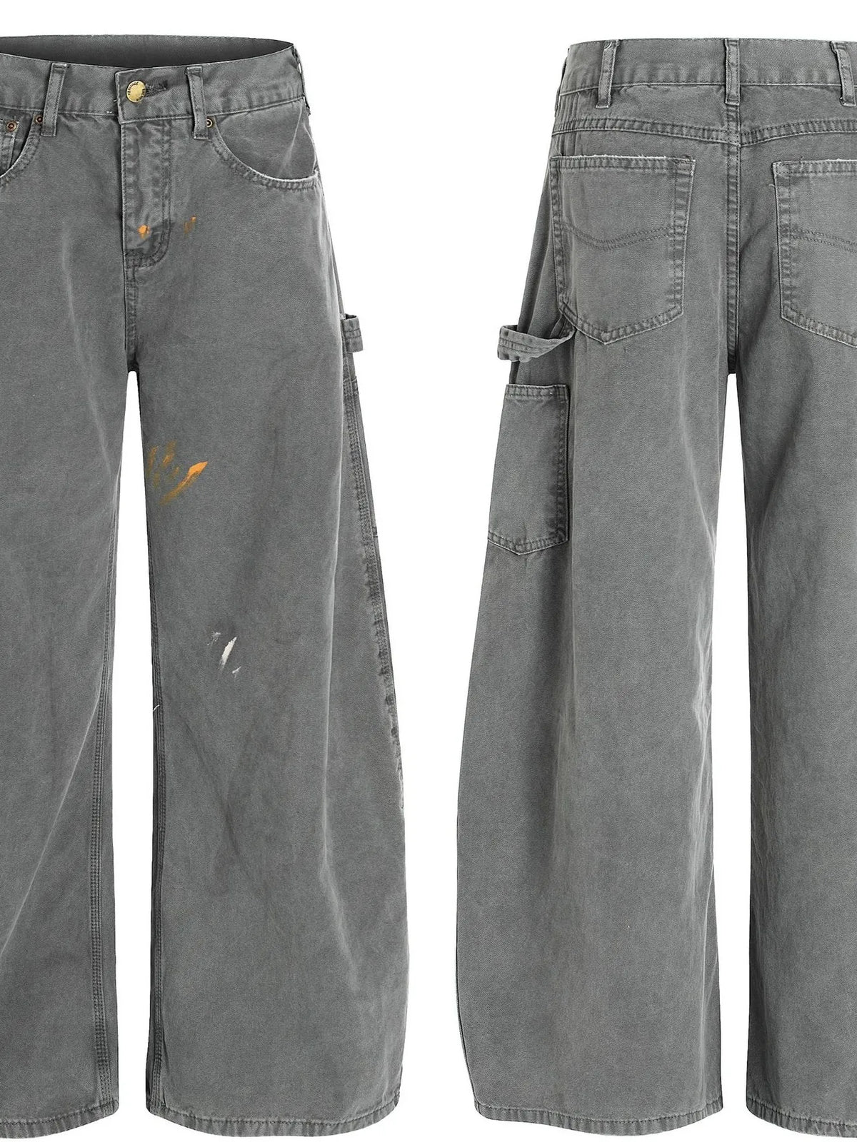 Mens Washed Distressed Curved Jeans with Oversized Pockets Durable Versatile Denim Pants for Casual Everyday Wear