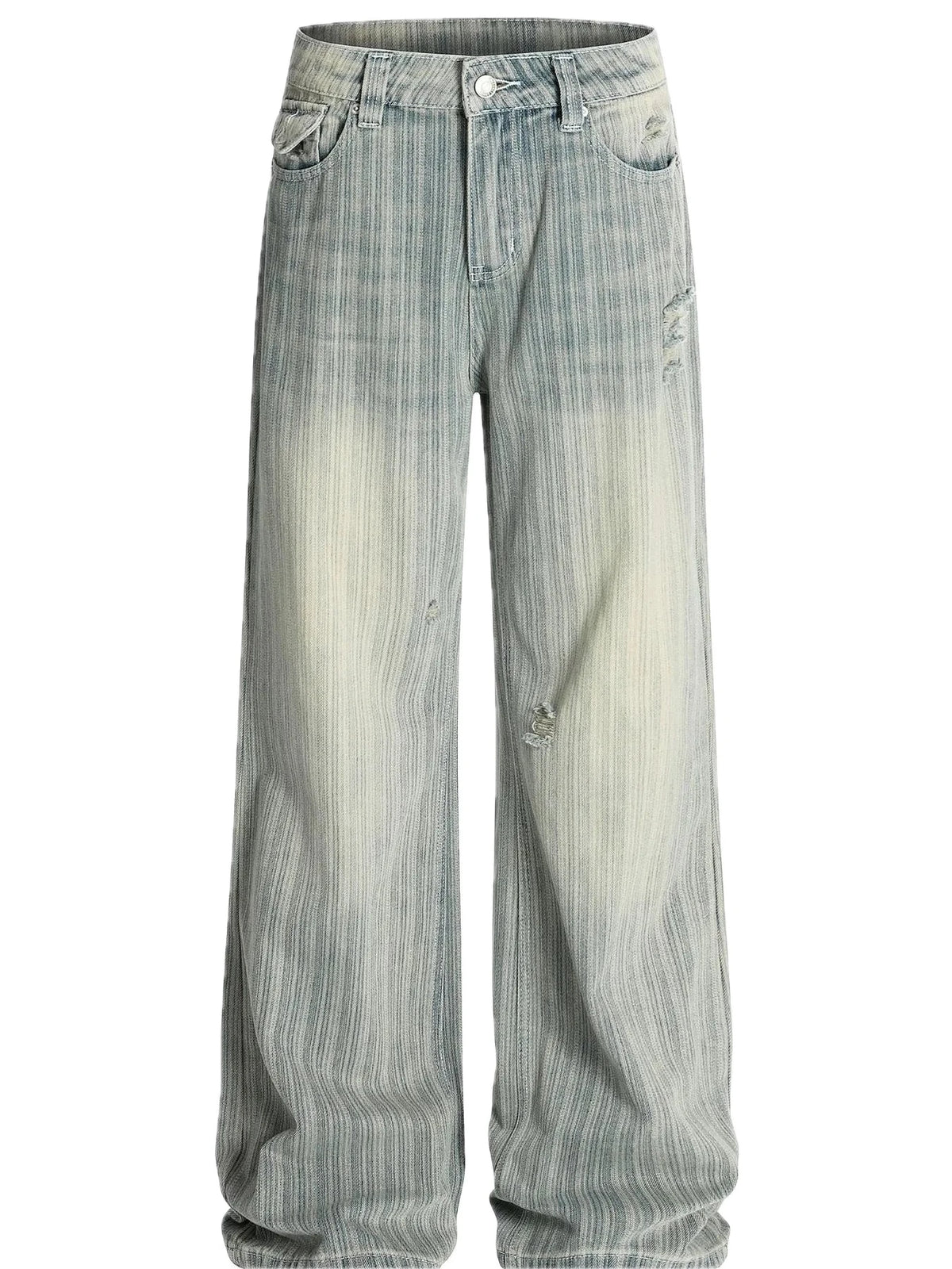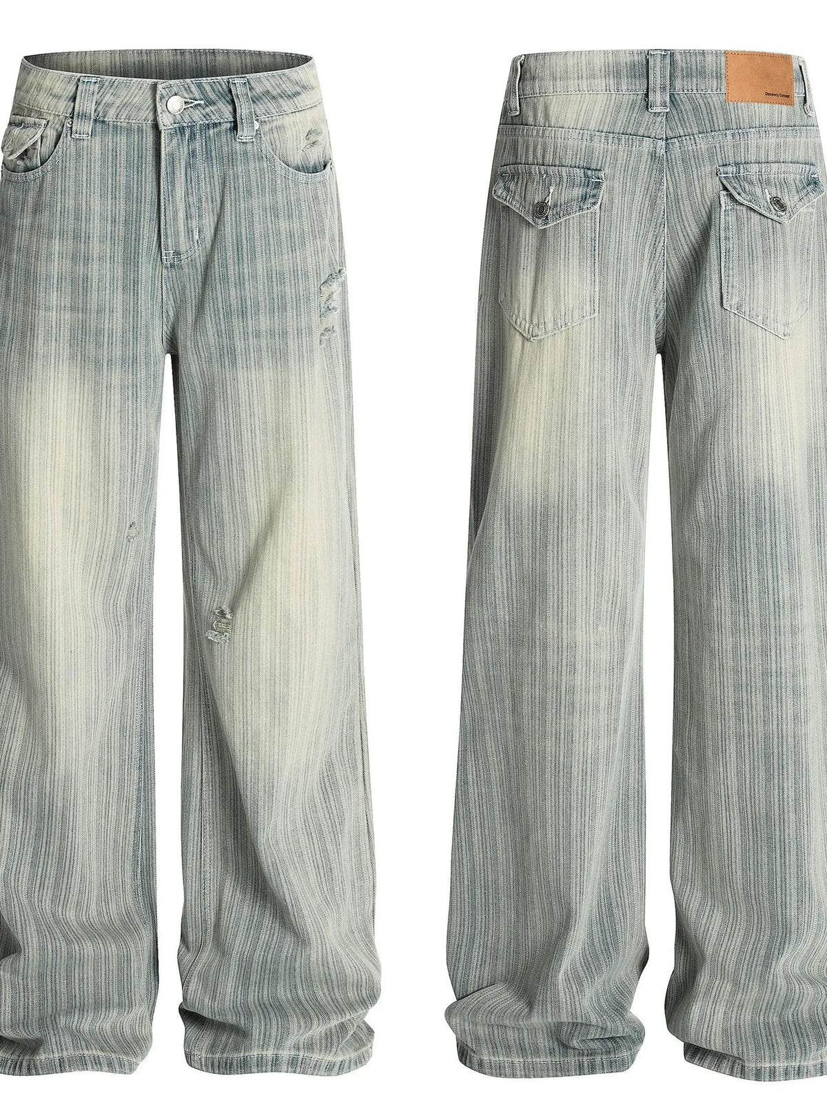 Mens Washed Pinstripe Wide Leg Jeans Oversized Pocketed Baggy Denim Pants for Casual Wear Slightly Stretchy Comfortable
