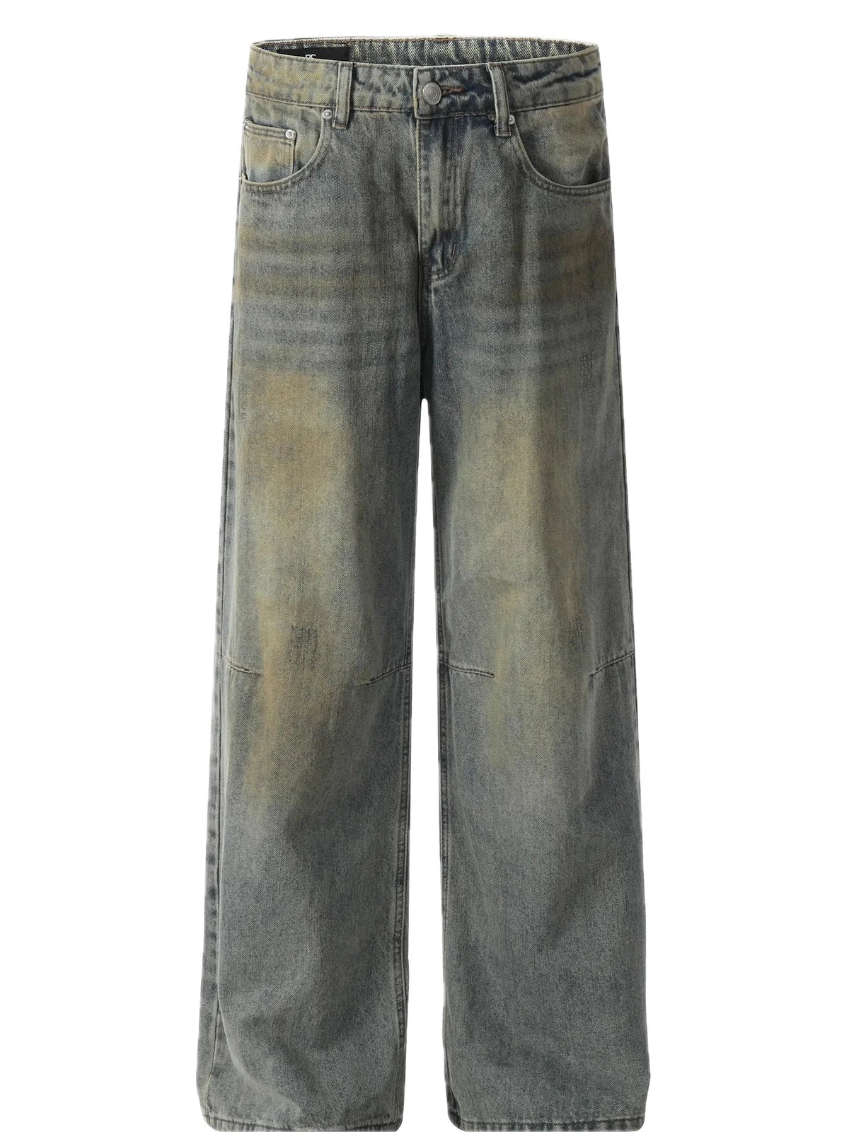 Mens washed relaxed fit denim jeans with cat whisker design slightly stretchy cotton blend durable everyday casual wear