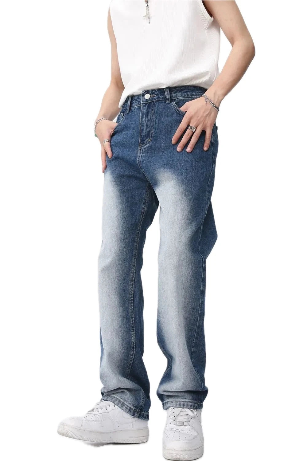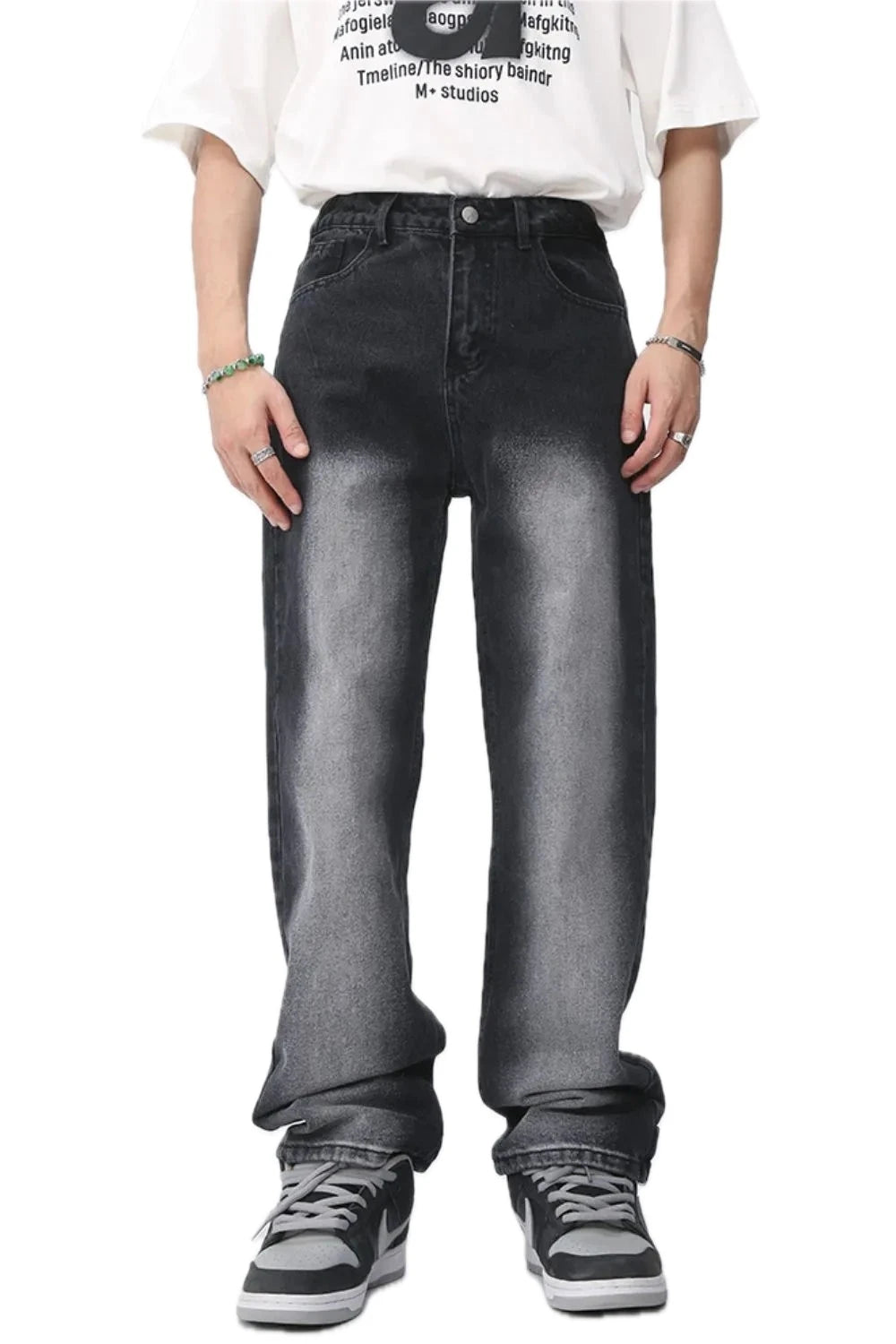 Mens Washed Straight Leg Jeans with Classic Fit Durable Everyday Denim Pants for Casual Wear and Versatile Outfits