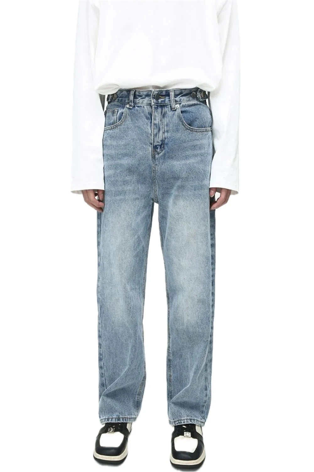 Mens Washed Straight Leg Jeans Non Stretch Durable Denim Pants for Casual Everyday Wear Classic Fit Versatile Apparel