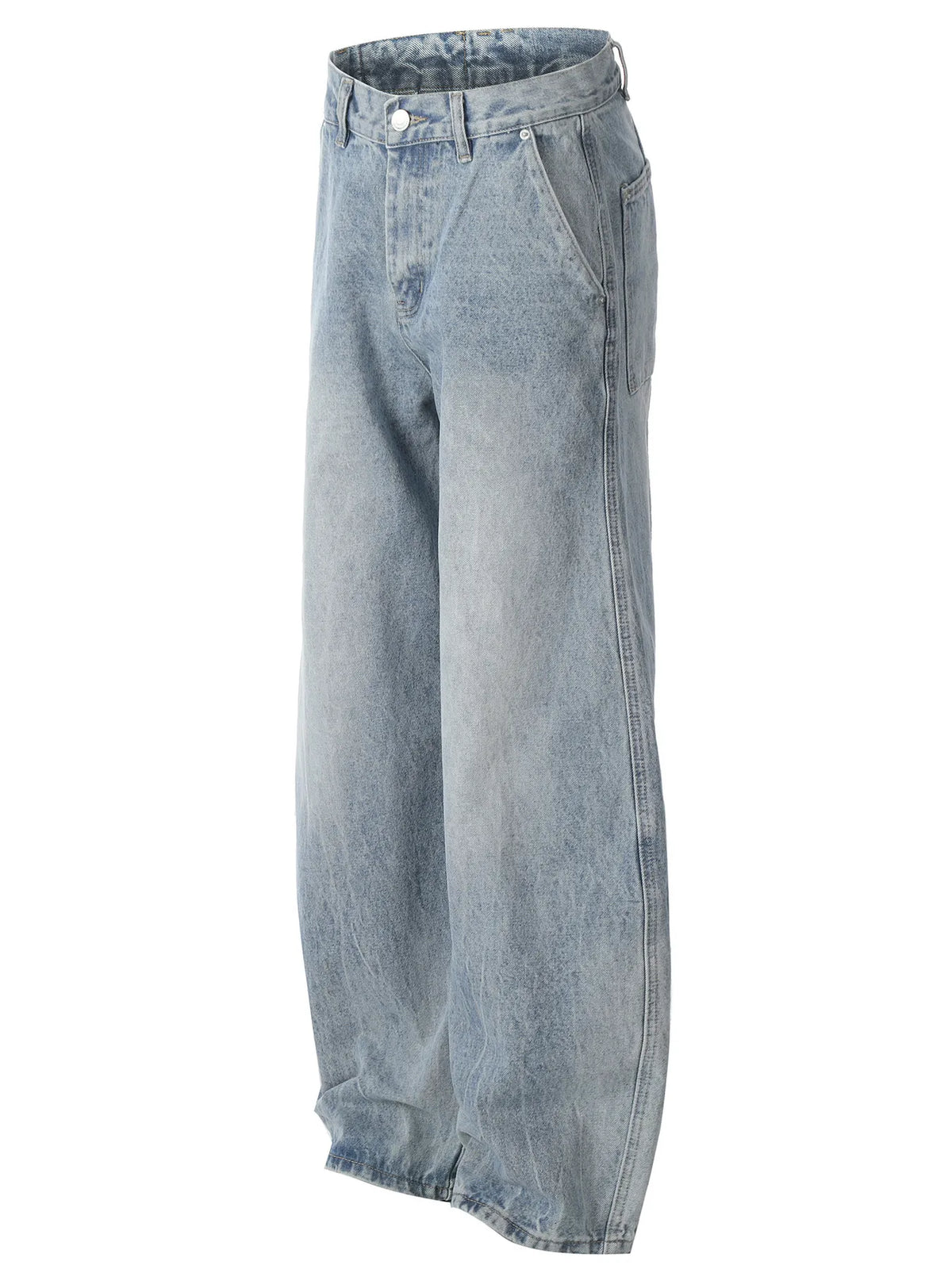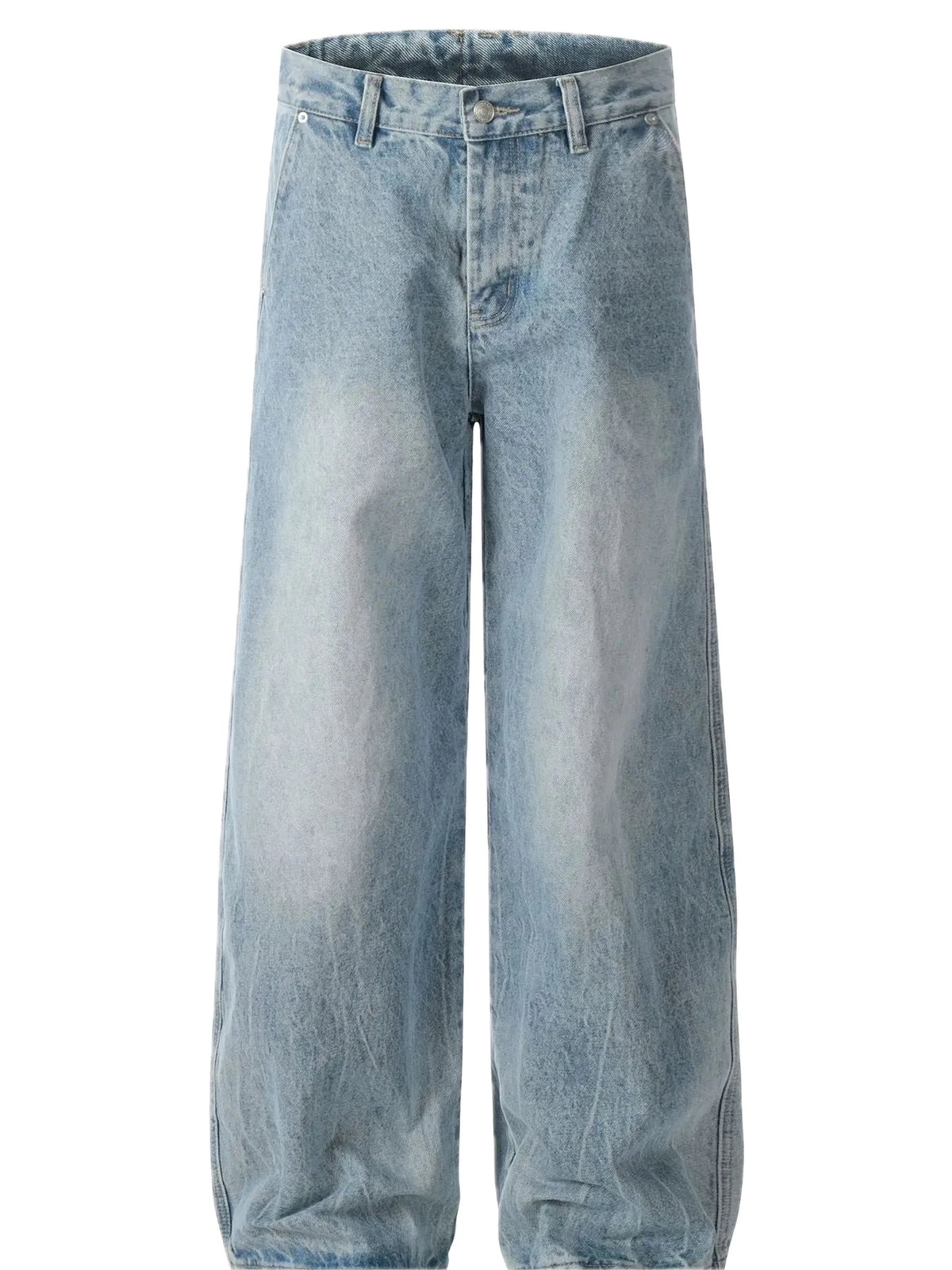 Mens Wide Leg Baggy Jeans Washed Denim Relaxed Fit Casual Everyday Trousers Durable Construction Streetwear All Day